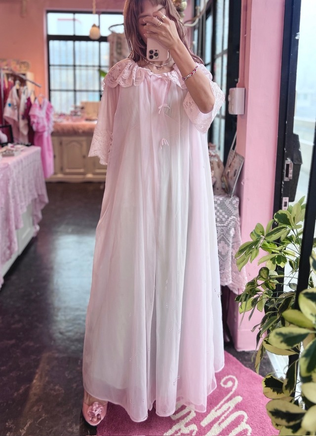 大きめなレース襟がドリーミーなランジェリーガウン。 襟がスナップボタンで留めるタイプになります。 生地が二重になっていてフワッと広がります♡ サイズ表記:38 肩幅:40cm 身幅:70cm 袖丈:35cm 着丈:126cm 素材表記:100%Nylon ※平置き実寸サイズです。 手作業による採寸の為、若干の誤差が生じる場合がございます。 【コンディション】 目立つような汚れやほつれなどはございませんが、1点もののヴィンテージ商品の為細かい汚れ、キズなどがある場合もございますので、ご了承くださいませ。 注意事項 *送料は商品ごとに設定しておりますが、見込みと異なる場合がございます。不足分は当方の負担となりますが、超過の差額分は返金致しかねますので、ご了承の程宜しくお願い致します。 *当店で取り扱っております、Vintage,used品のコンディションチェックは十分注意を払っておりますが、Vintage特有の汚れやキズ、ヨレ、匂いなどある場合もございます。 *Vintageの特性をご理解頂いた上でのご購入をお願い致します。 *ご不明点がございましたら、ご購入前にメールフォームにて、お問い合わせ下さいますようお願いいたします。 *ご注文後の内容変更、キャンセルは一切お受けできません。掲載内容(サイズ・画像のカラー)と実際の商品との若干のズレに関しましても返品対応しかねます。 *銀行振込、コンビニ決済は、期日内にお支払いいただきますようお願い致します。