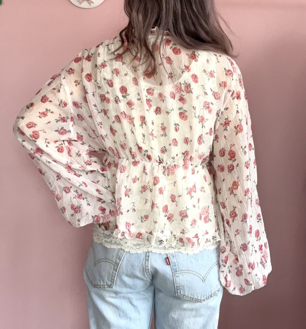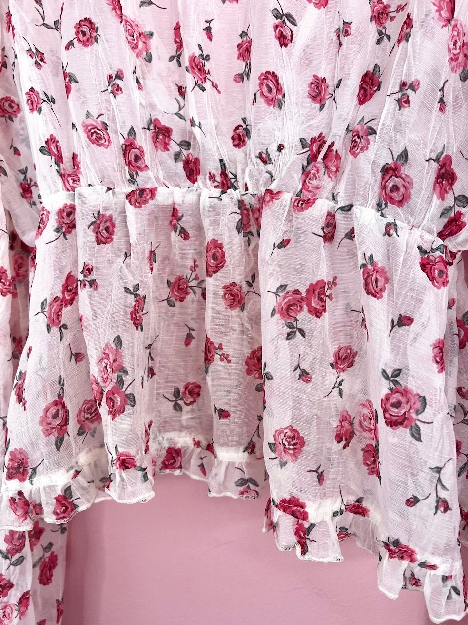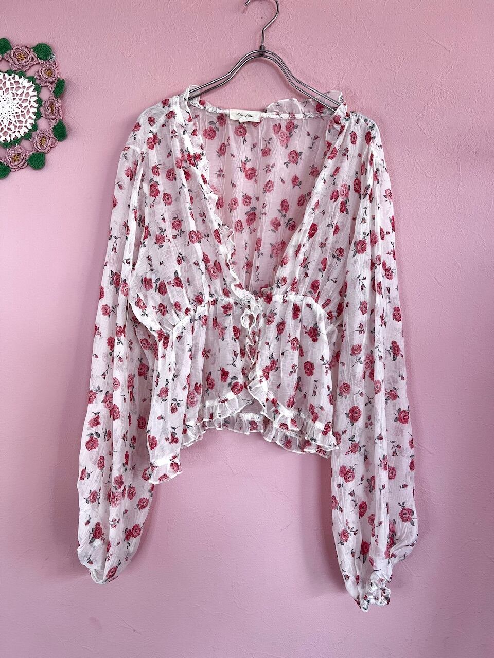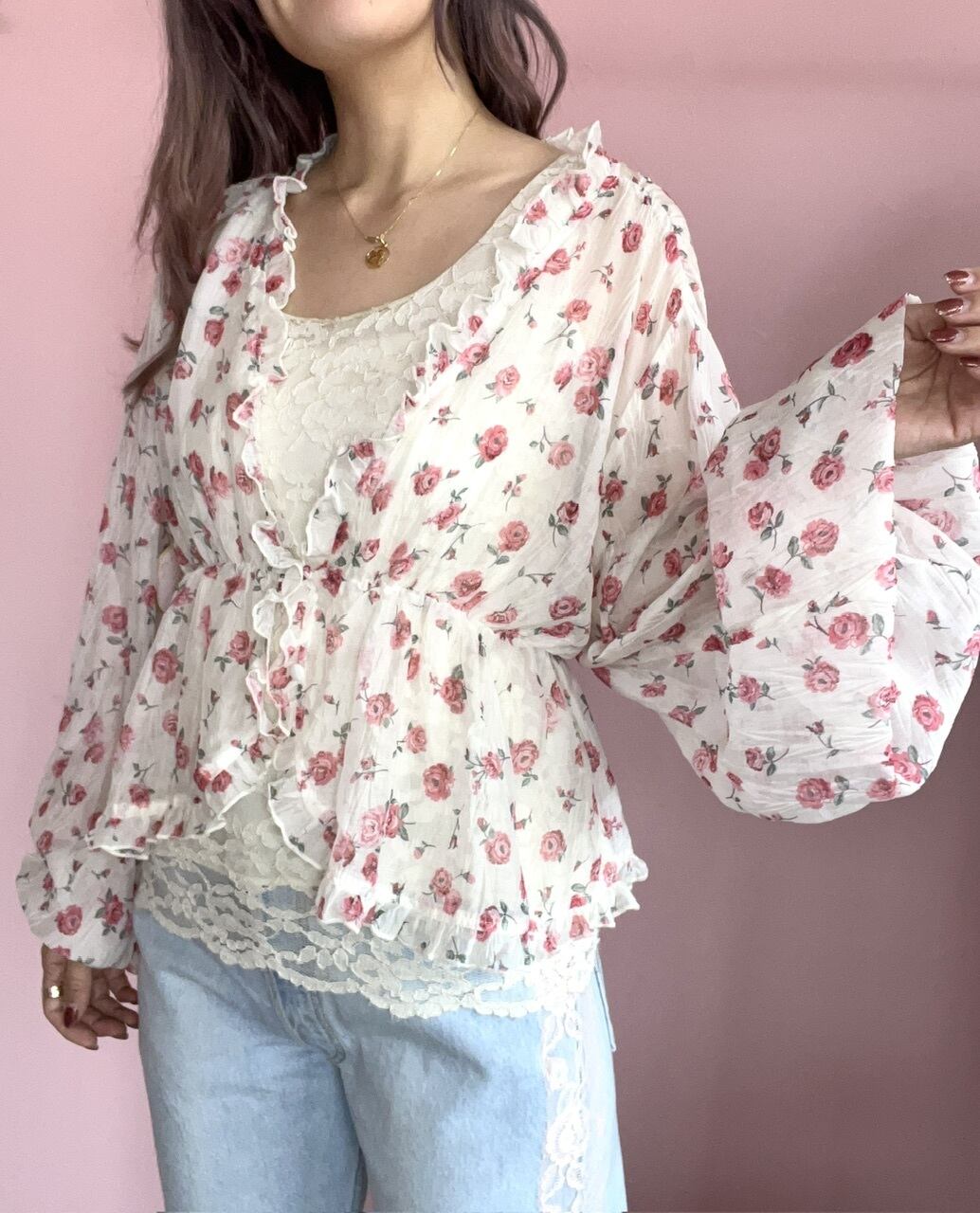 袖がふわっとしたデザインが素敵なシースルートップス。ウエストがゴムになっていて綺麗な形です♡