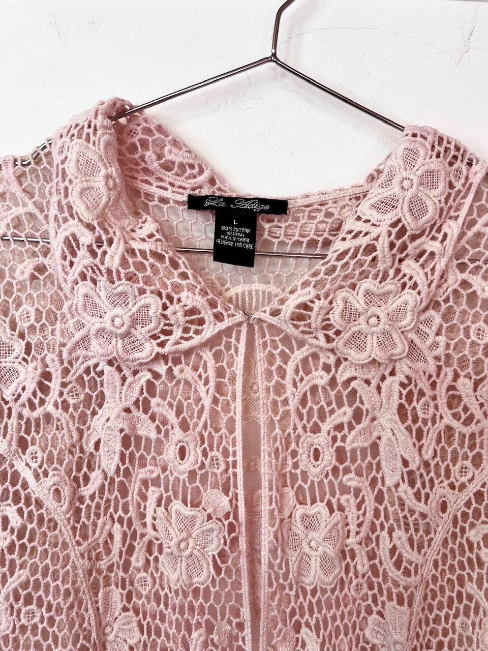 後ろにお花模様のレースが施されている、襟付きの羽織りです♡