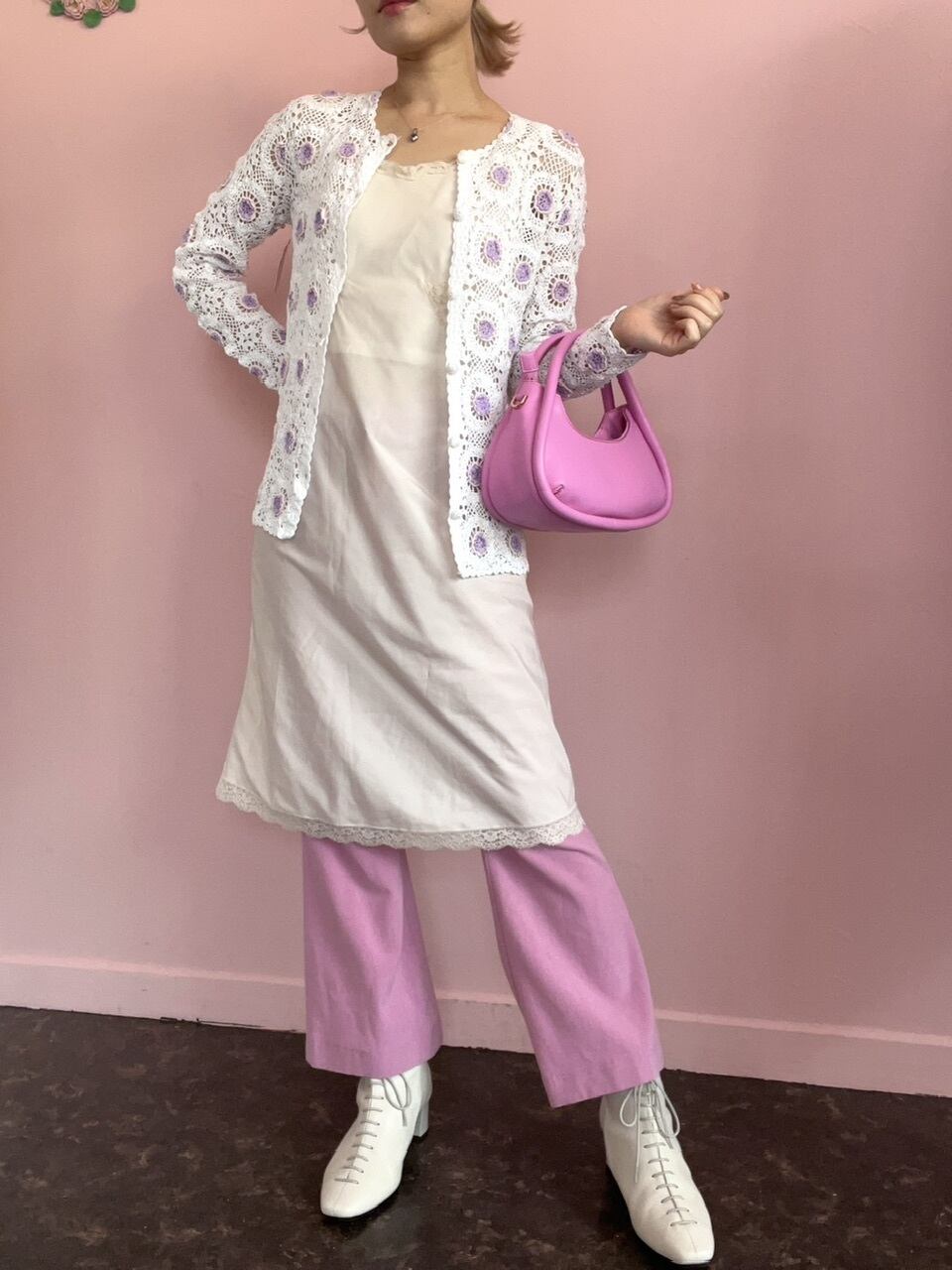 ヴィンテージのハンドメイドが美しい上海クロシェッ編みカーディガン♡