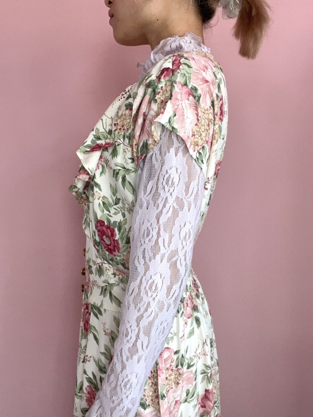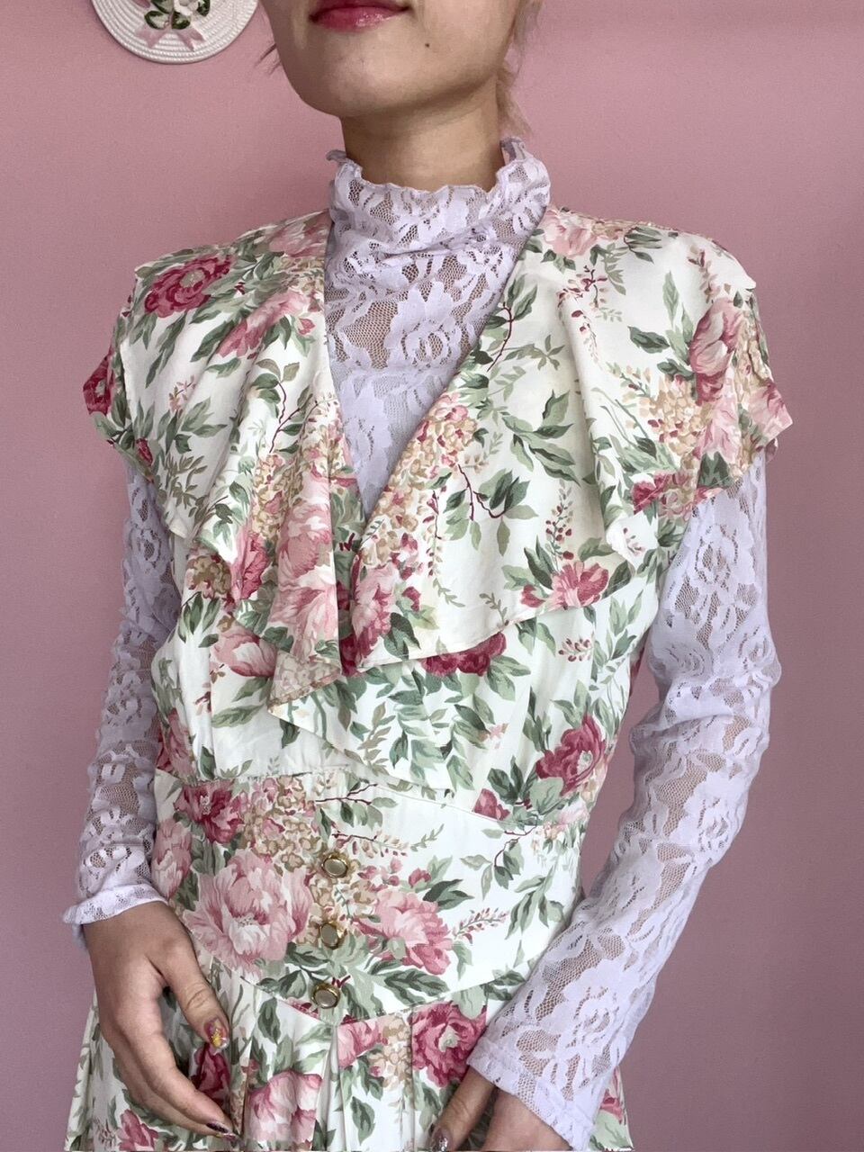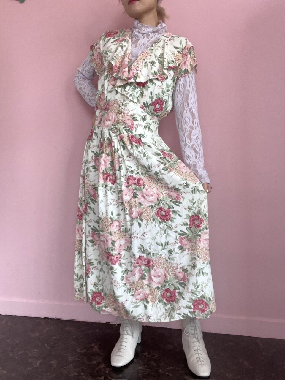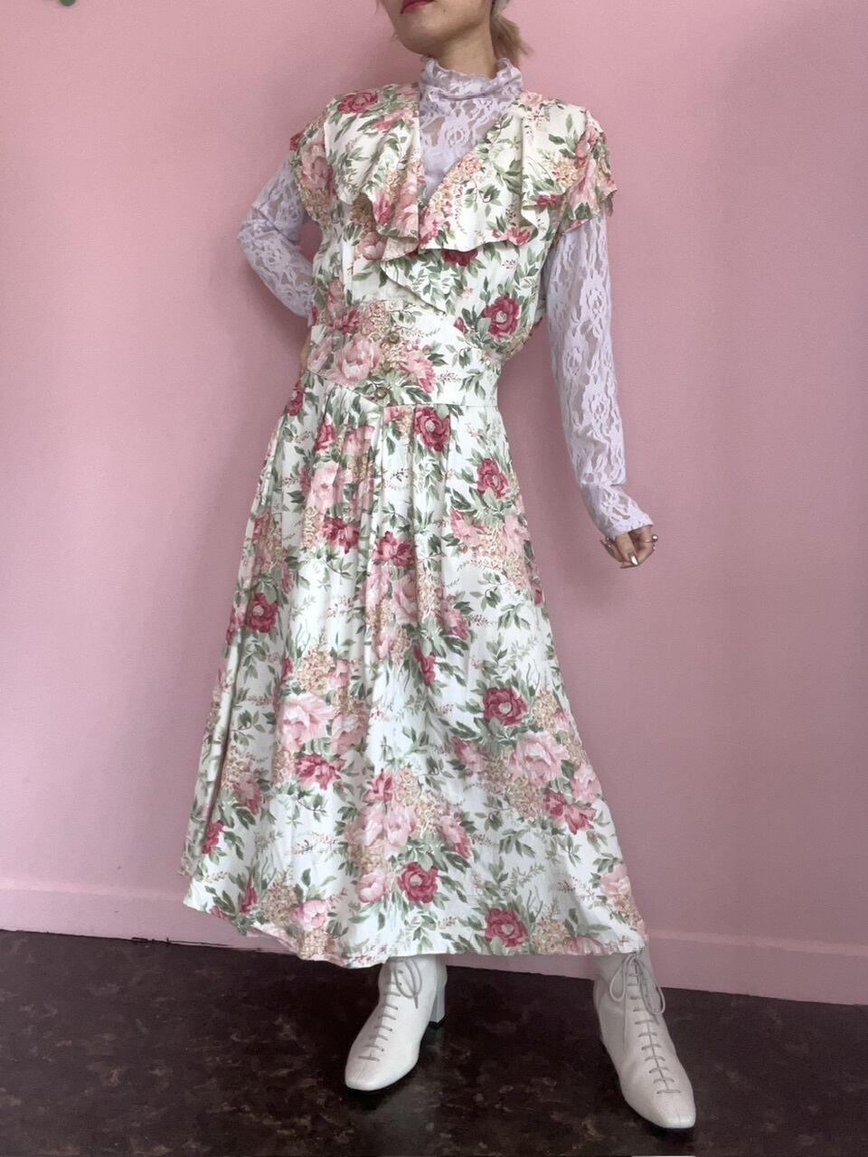 V字に開いたデザインに、首元のフリルが可愛いワンピース♡
