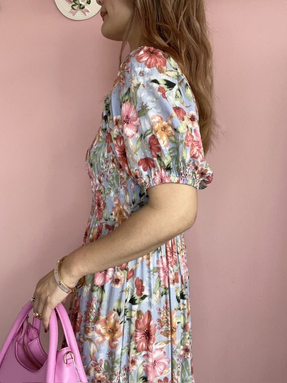 ギャザーが女性らしいワンピースです。