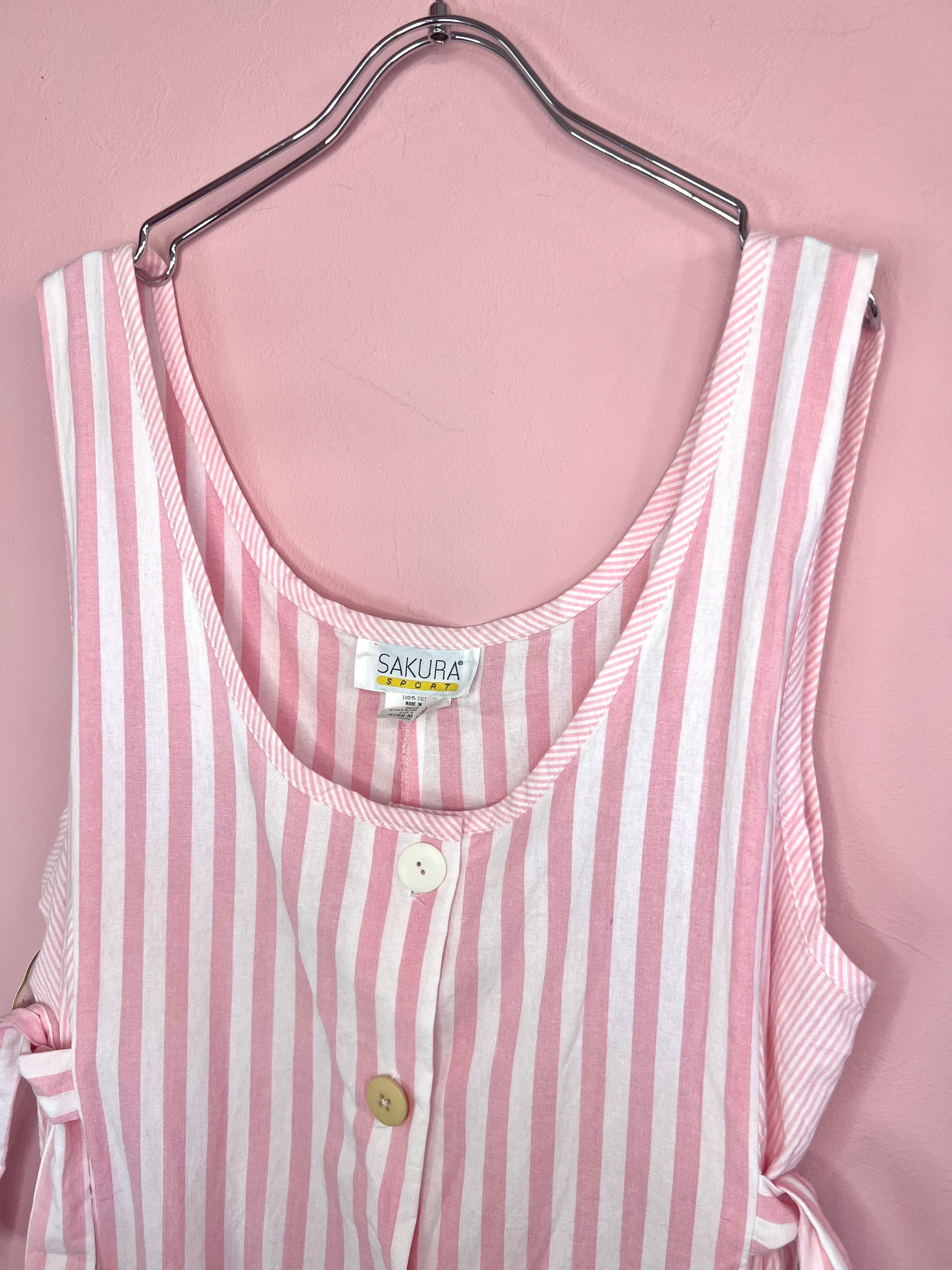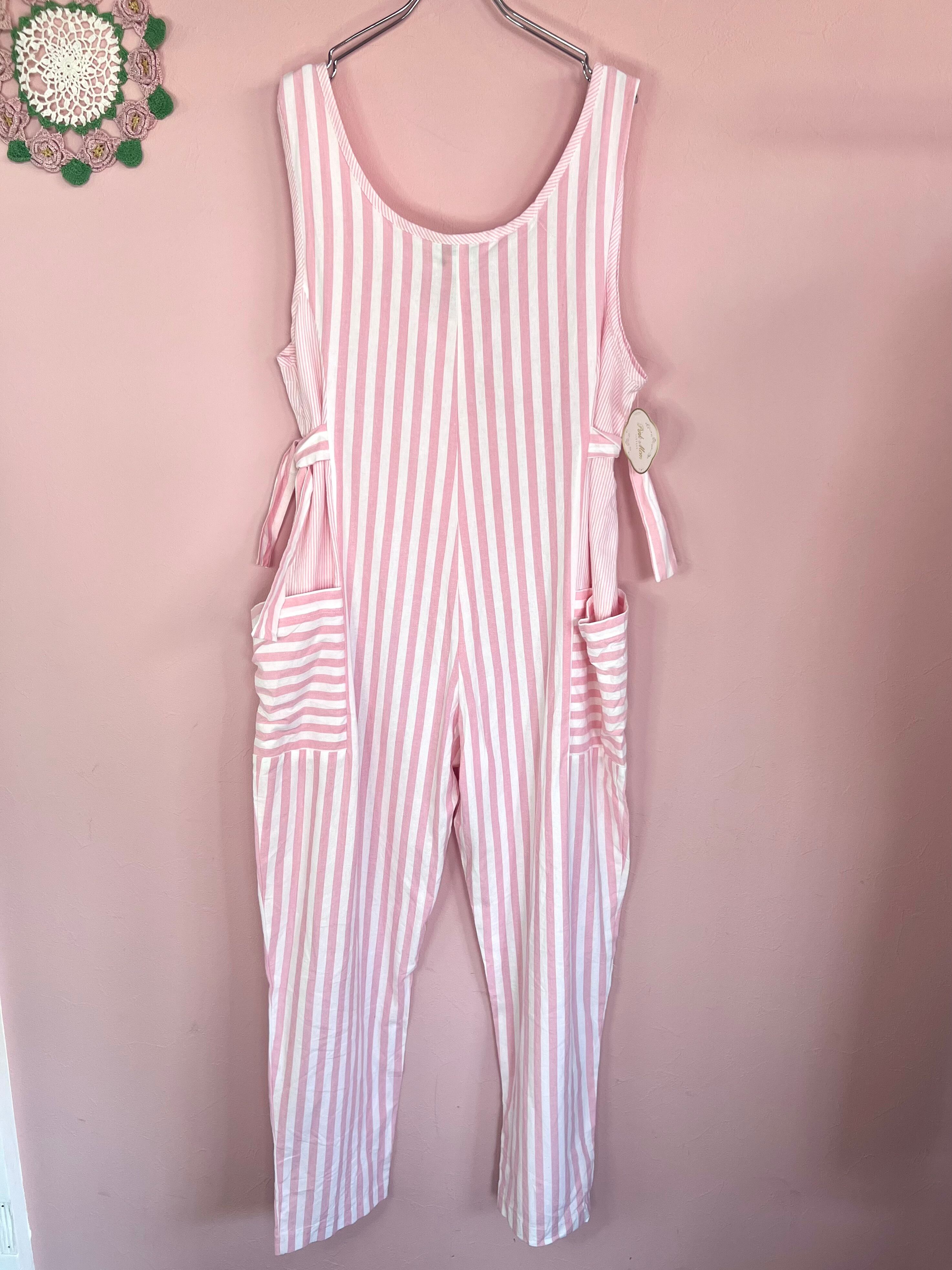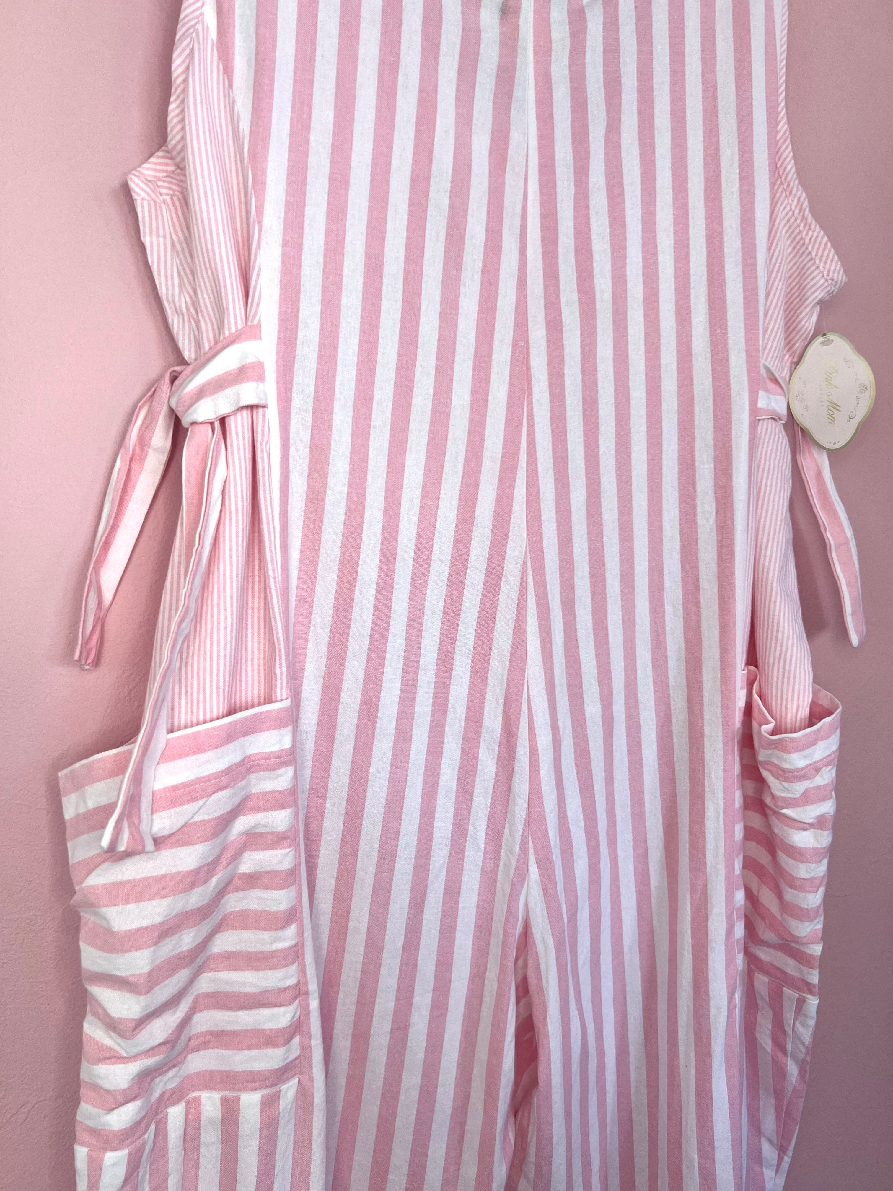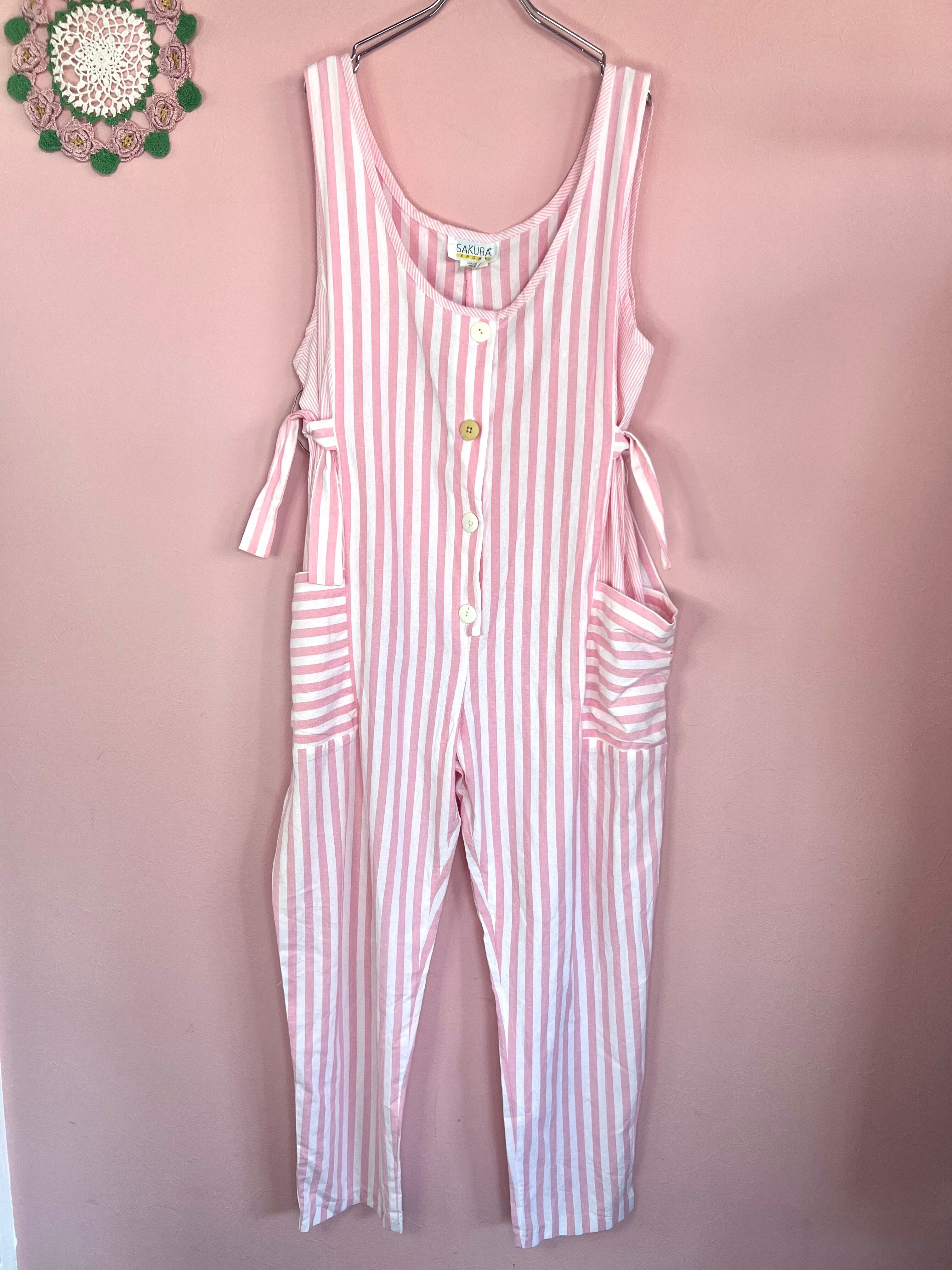 ピンクストライプがオシャレなオールインワンです。サイドが結べるデザインもかわいい♡