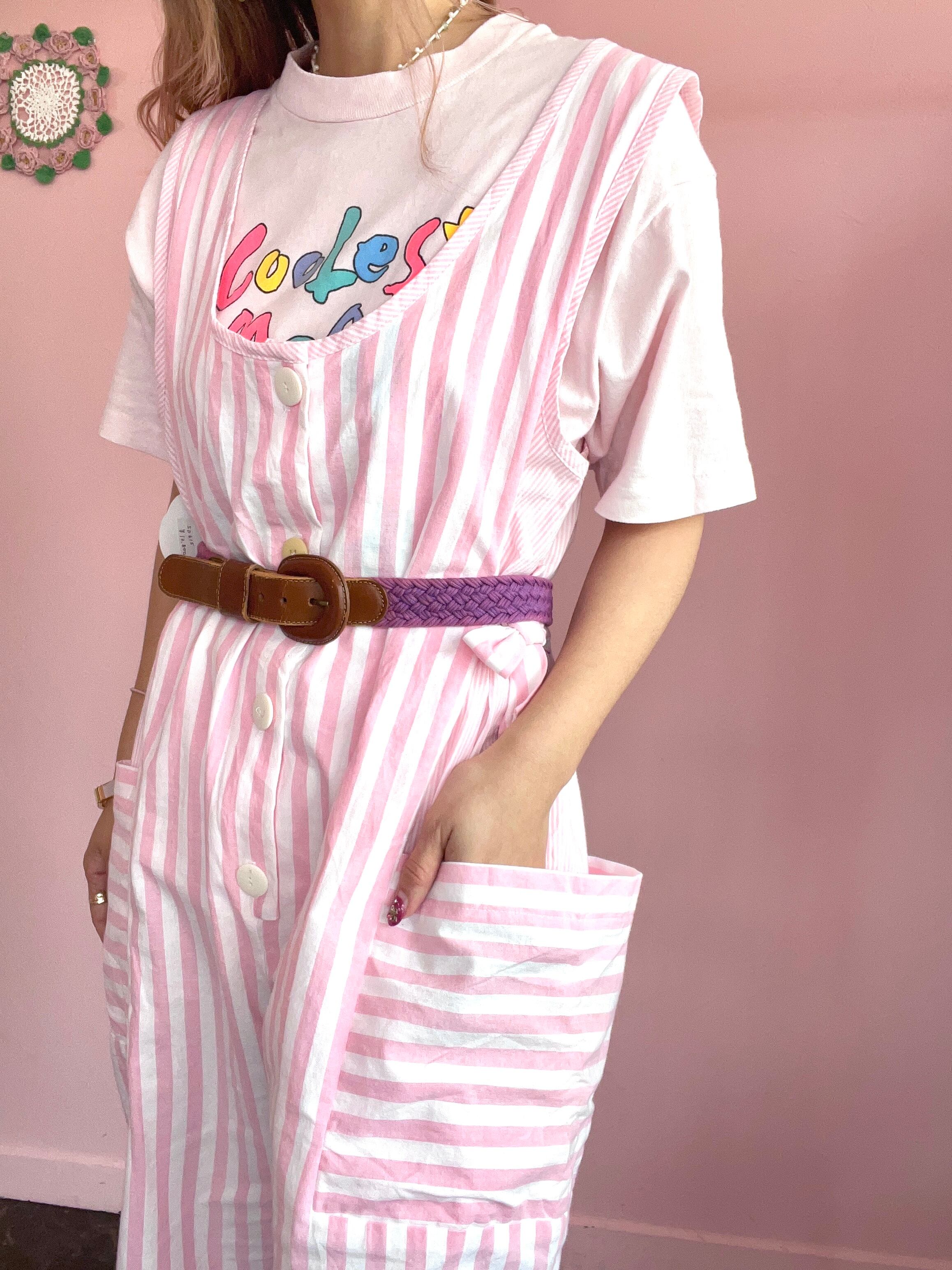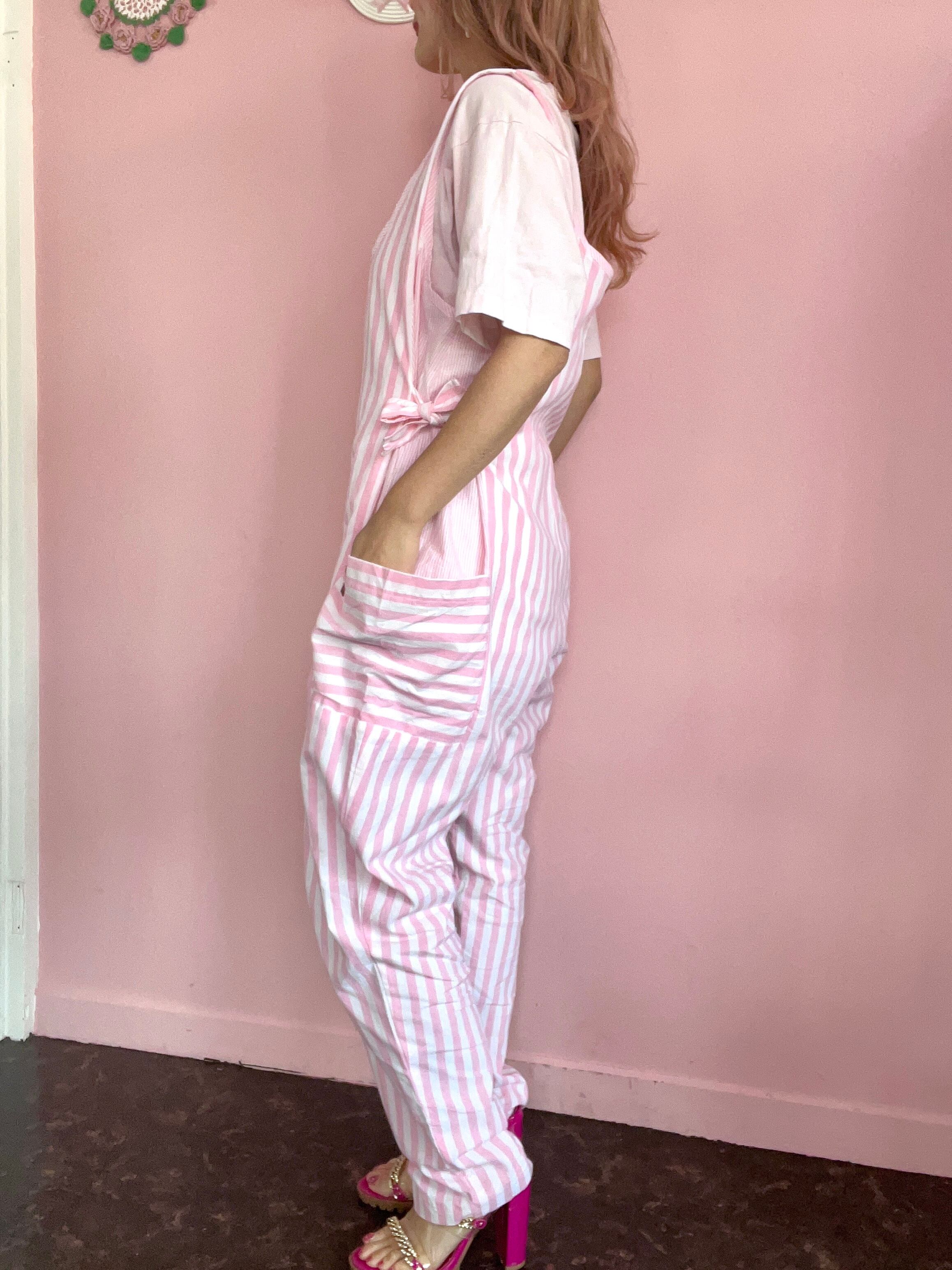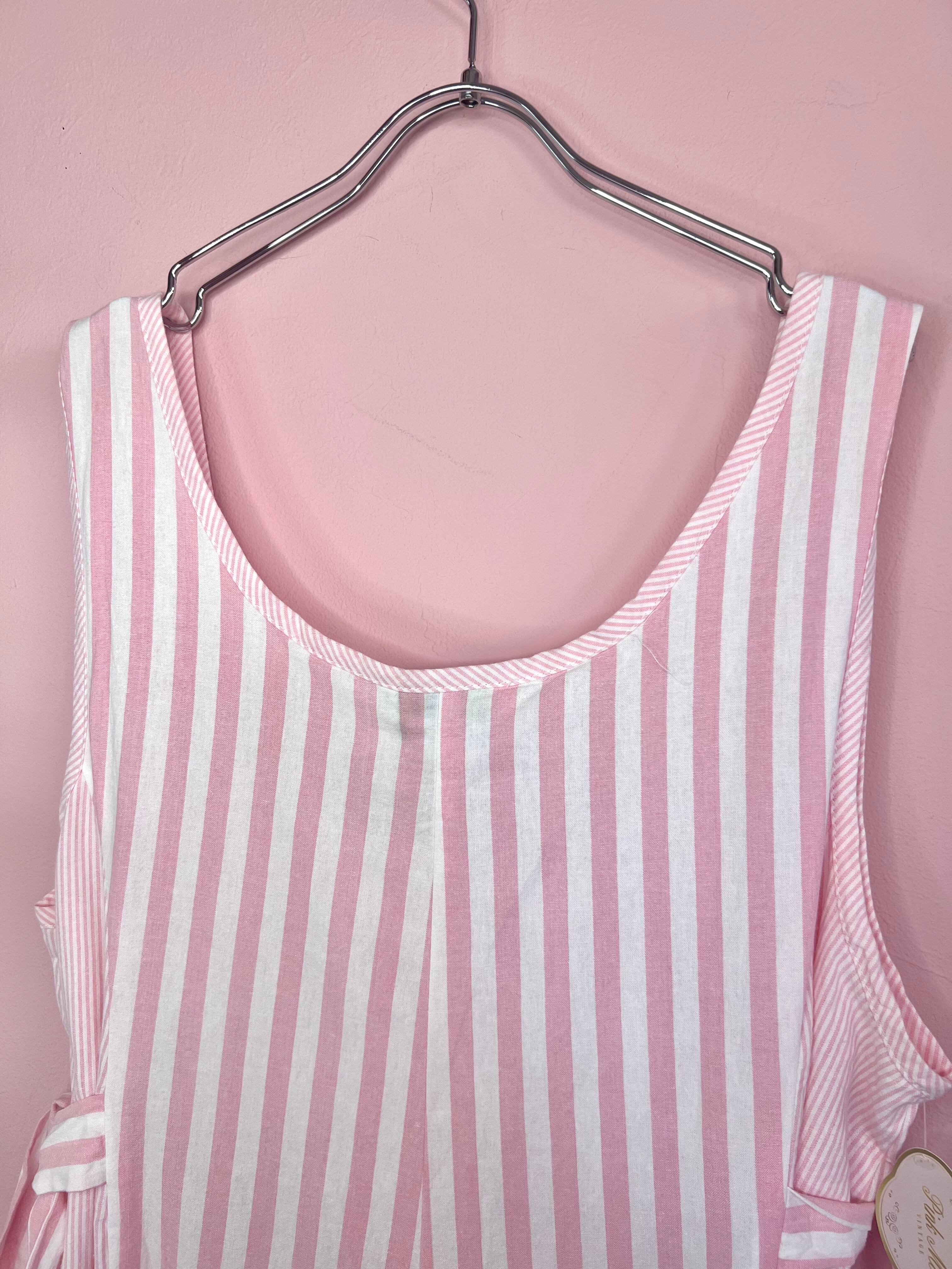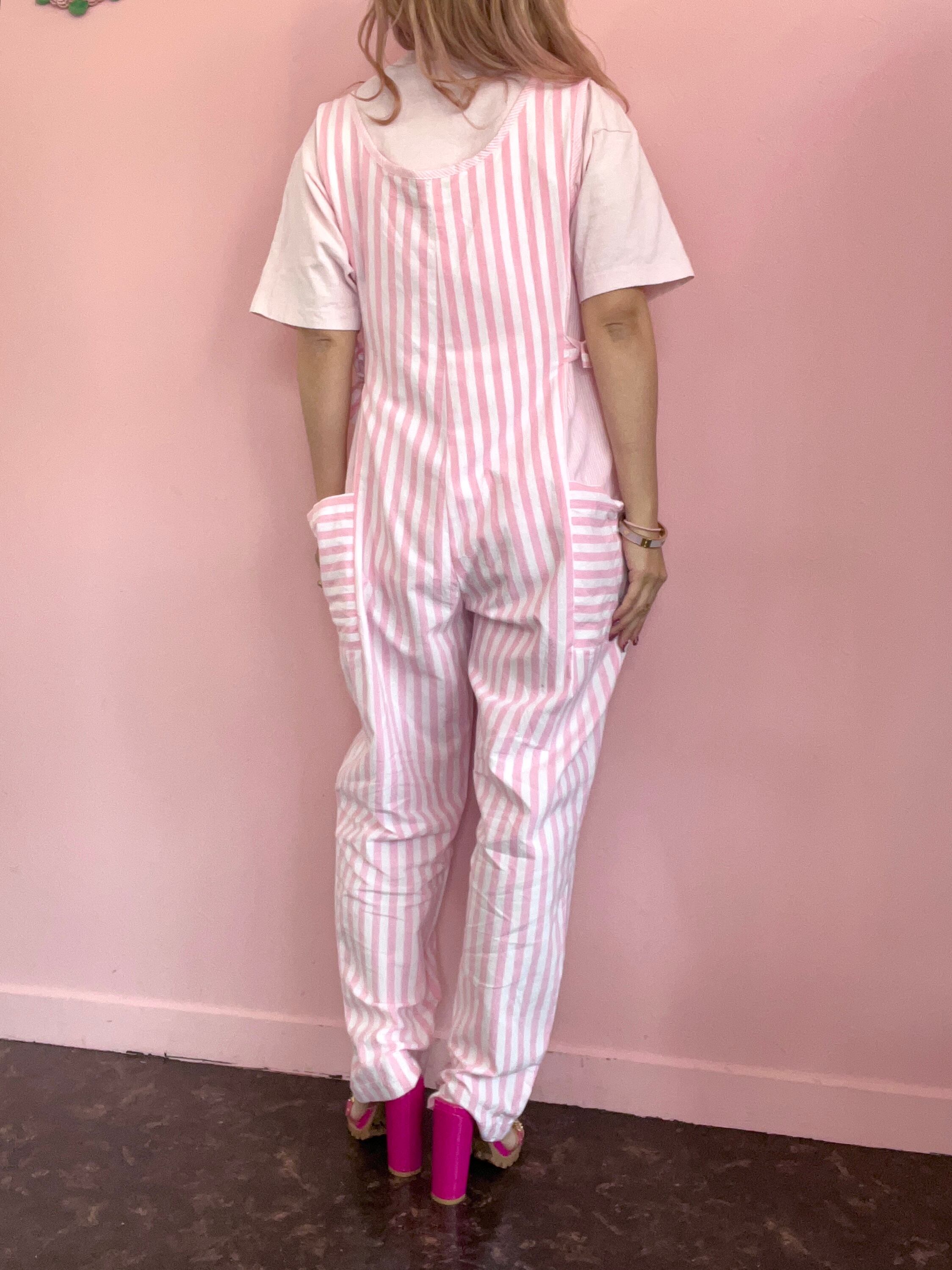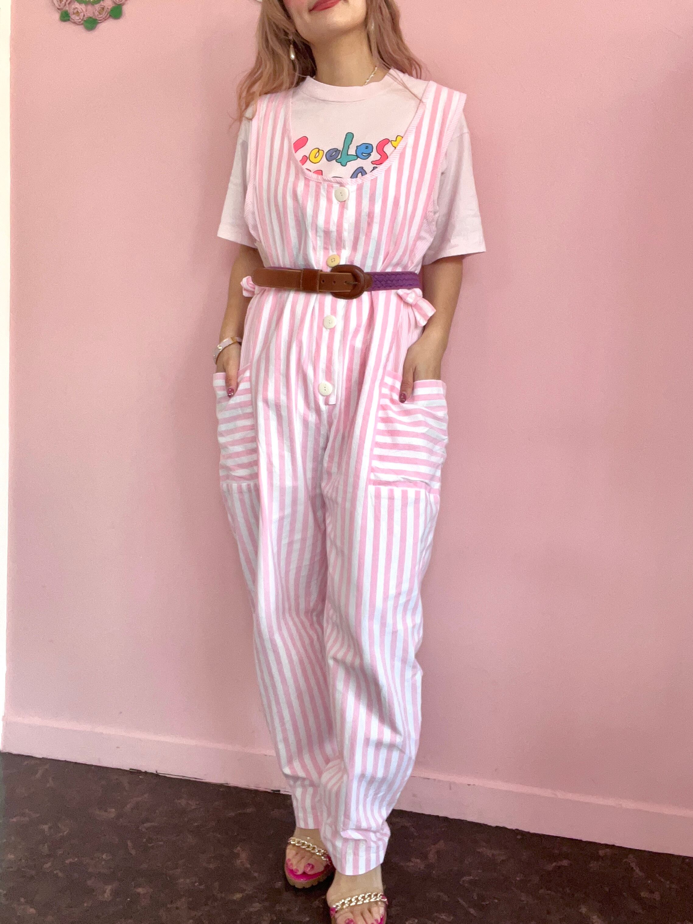 ピンクストライプがオシャレなオールインワンです。サイドが結べるデザインもかわいい♡