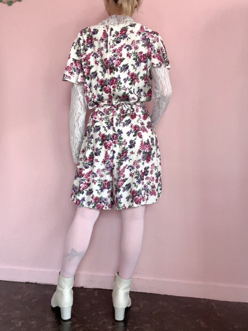 ふんわりとした袖と、襟のレースが可愛いハーフパンツのオールインワン♡