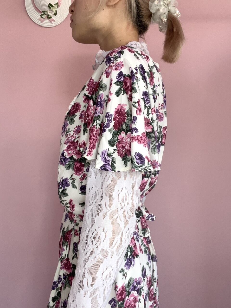 ウエストにリボンが付いていて後ろで調節していただけます。
