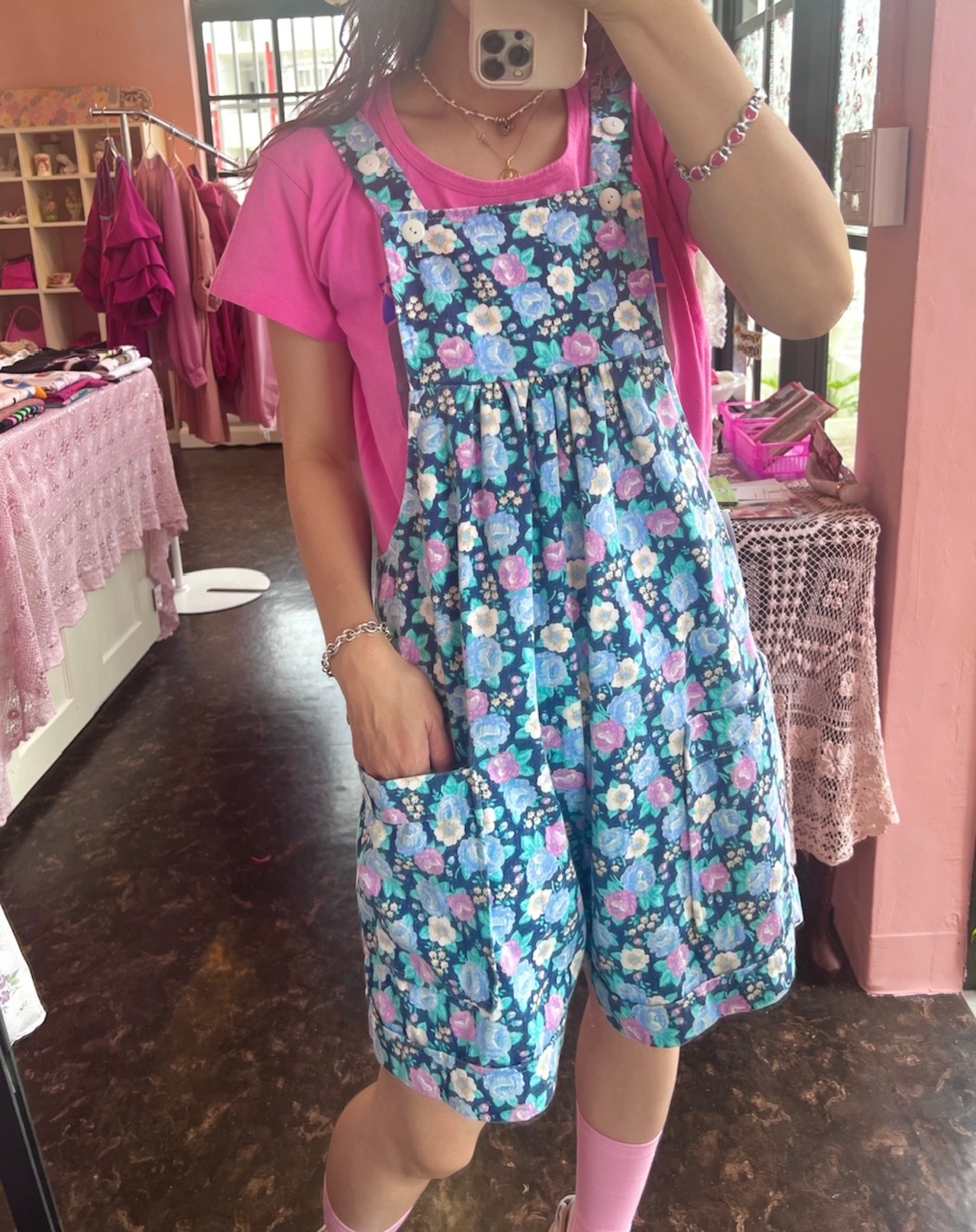 胸当ての部分が小さめで可愛いらしいショートパンツのオーバーオール♡