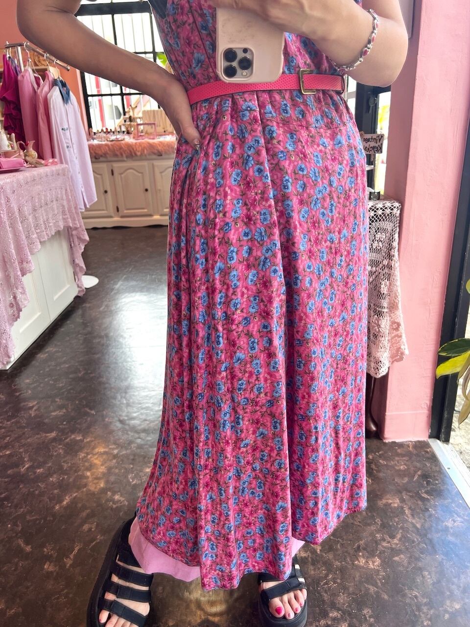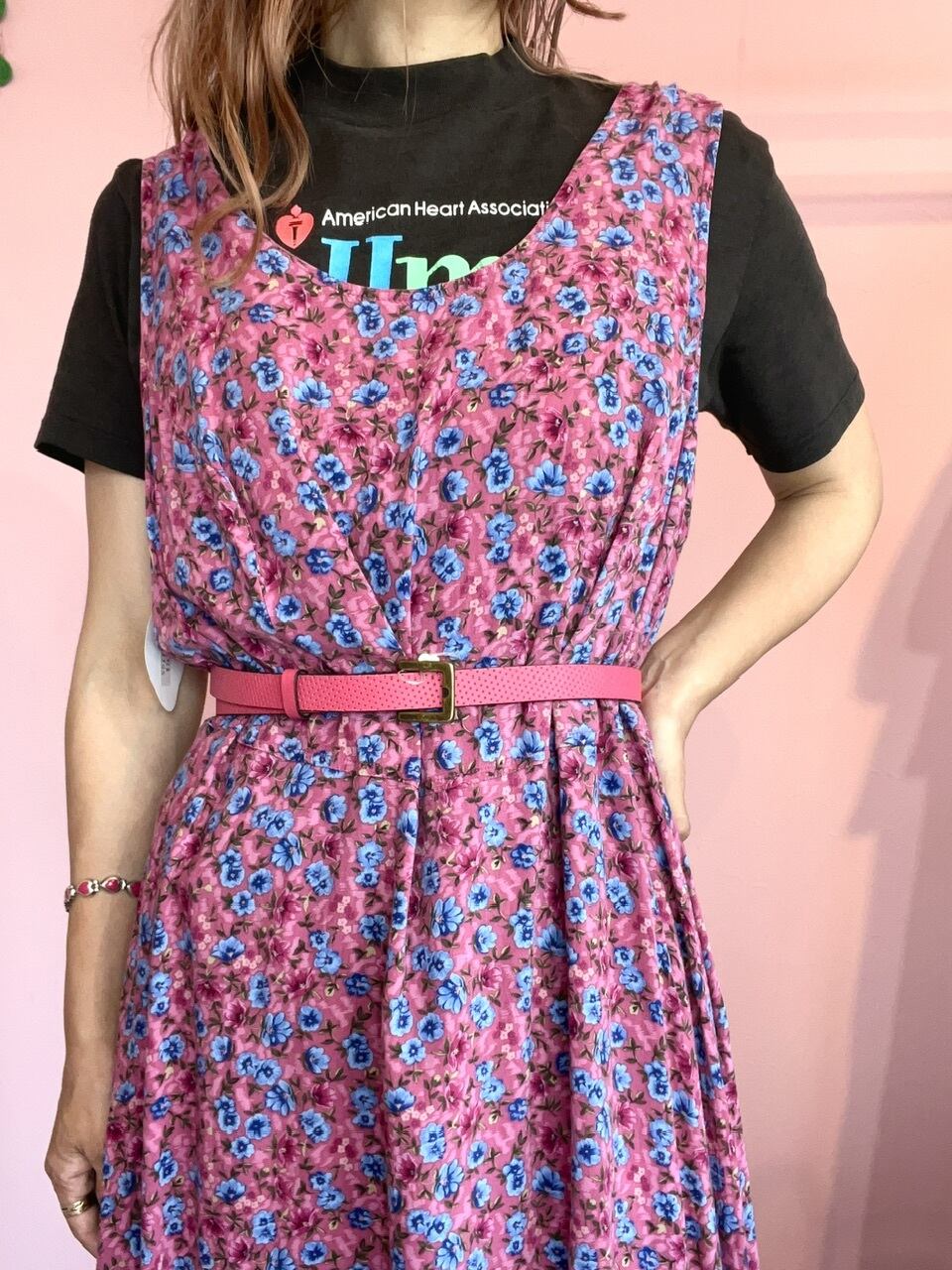 …pink rayon flower dress…