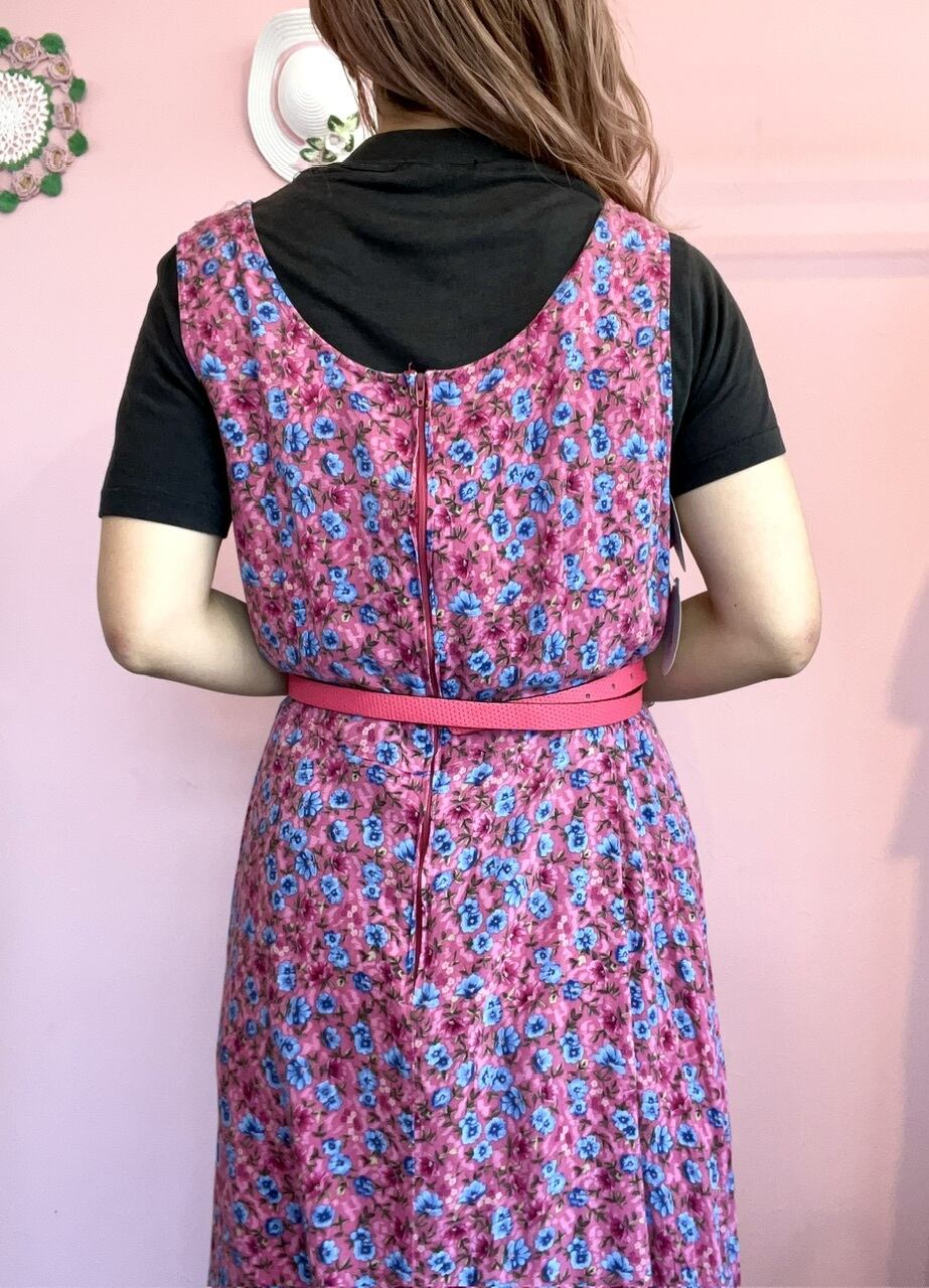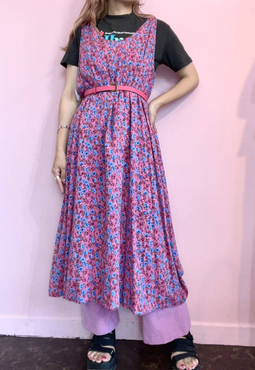 ピンク地にブルーのお花が可愛いらしい花柄ワンピース♡