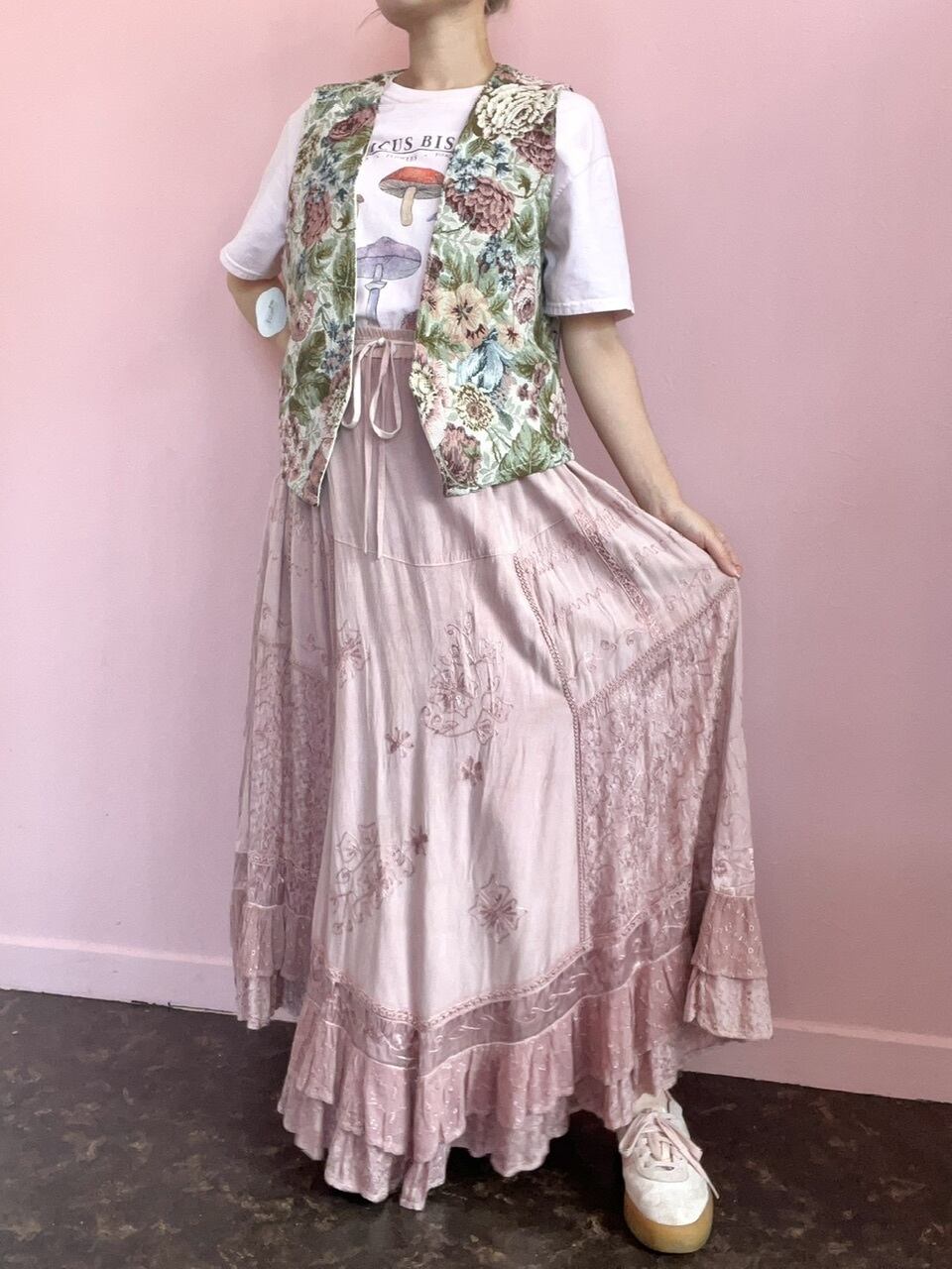 同じ色味の刺繍が入っていて、コーディネートもしやすいです♡