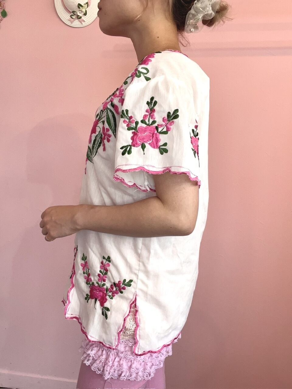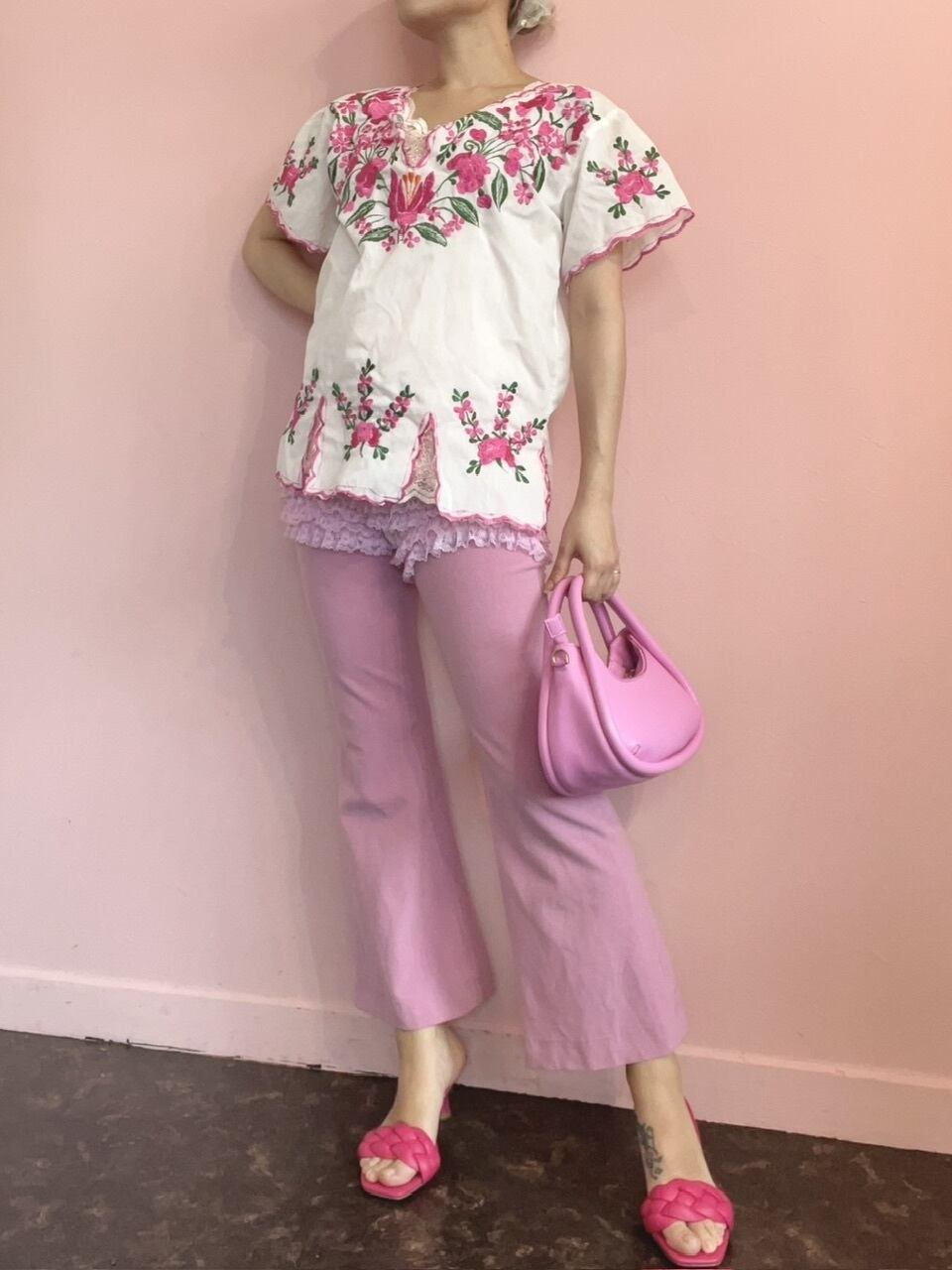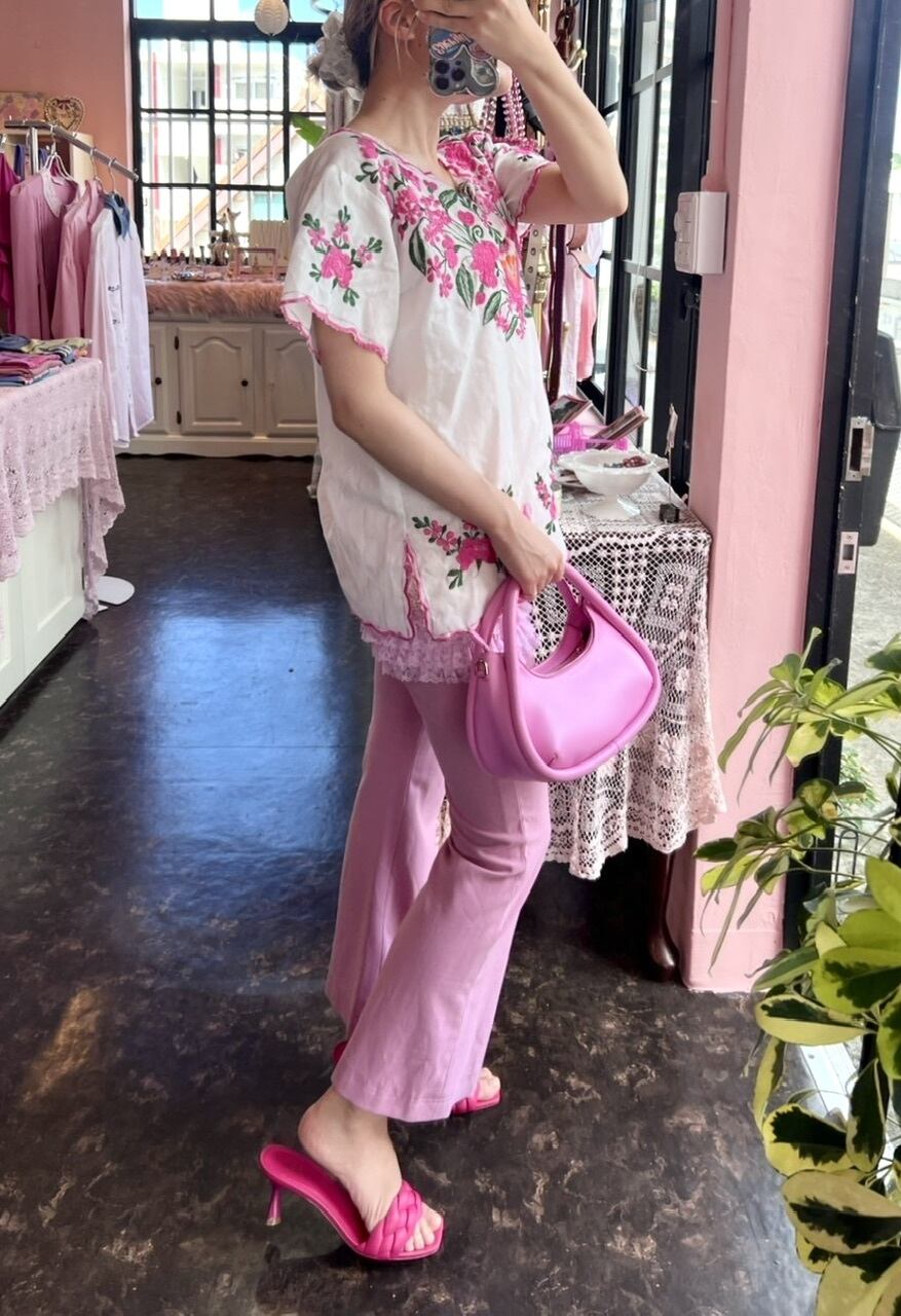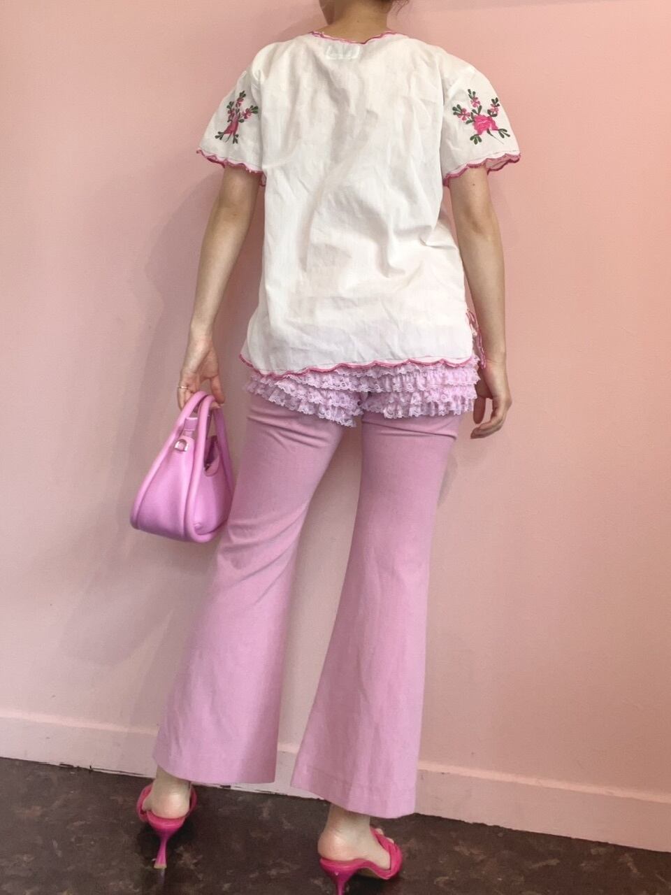 ピンクの刺繍が華やかで、デニムなどと合わせても可愛いです♡