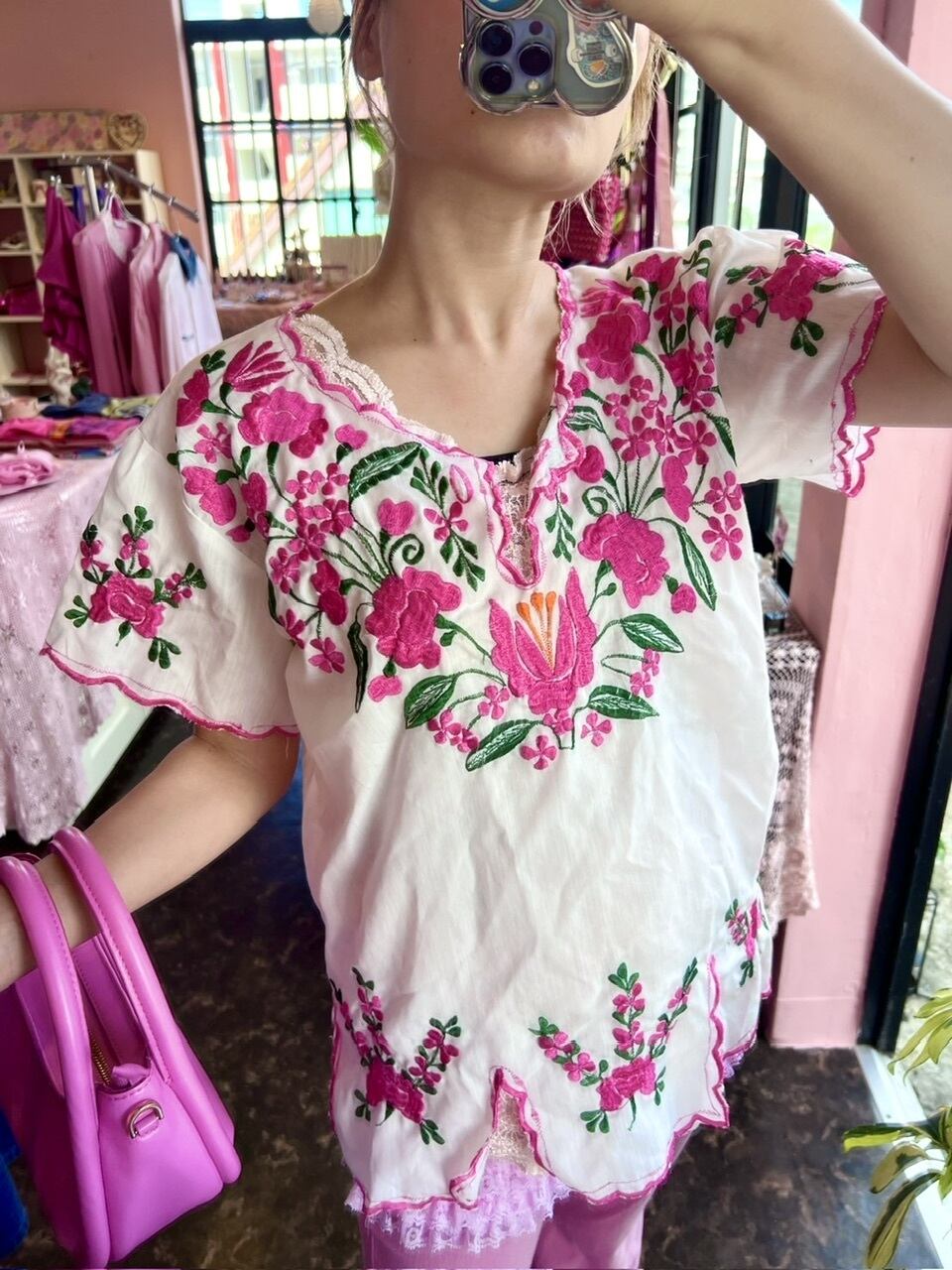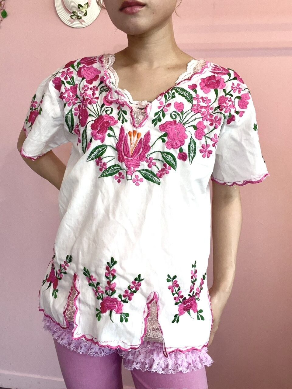 裾のヒラヒラが珍しいメキシコ刺繍トップス♡