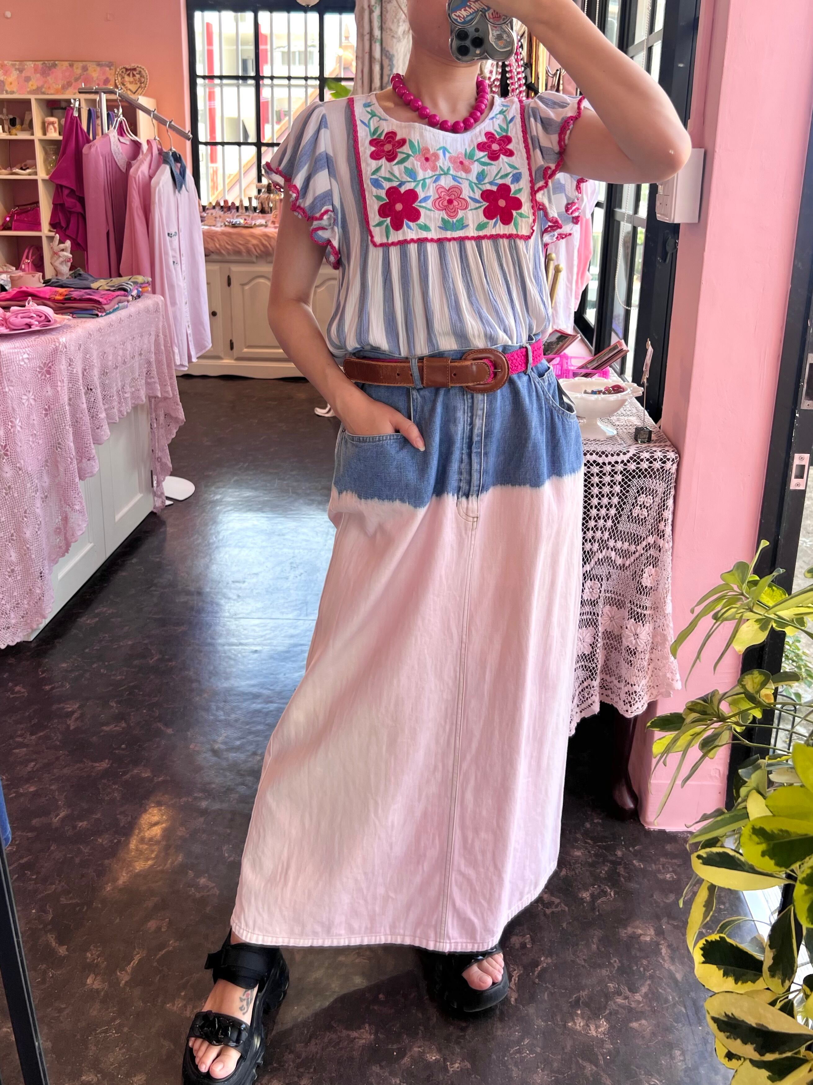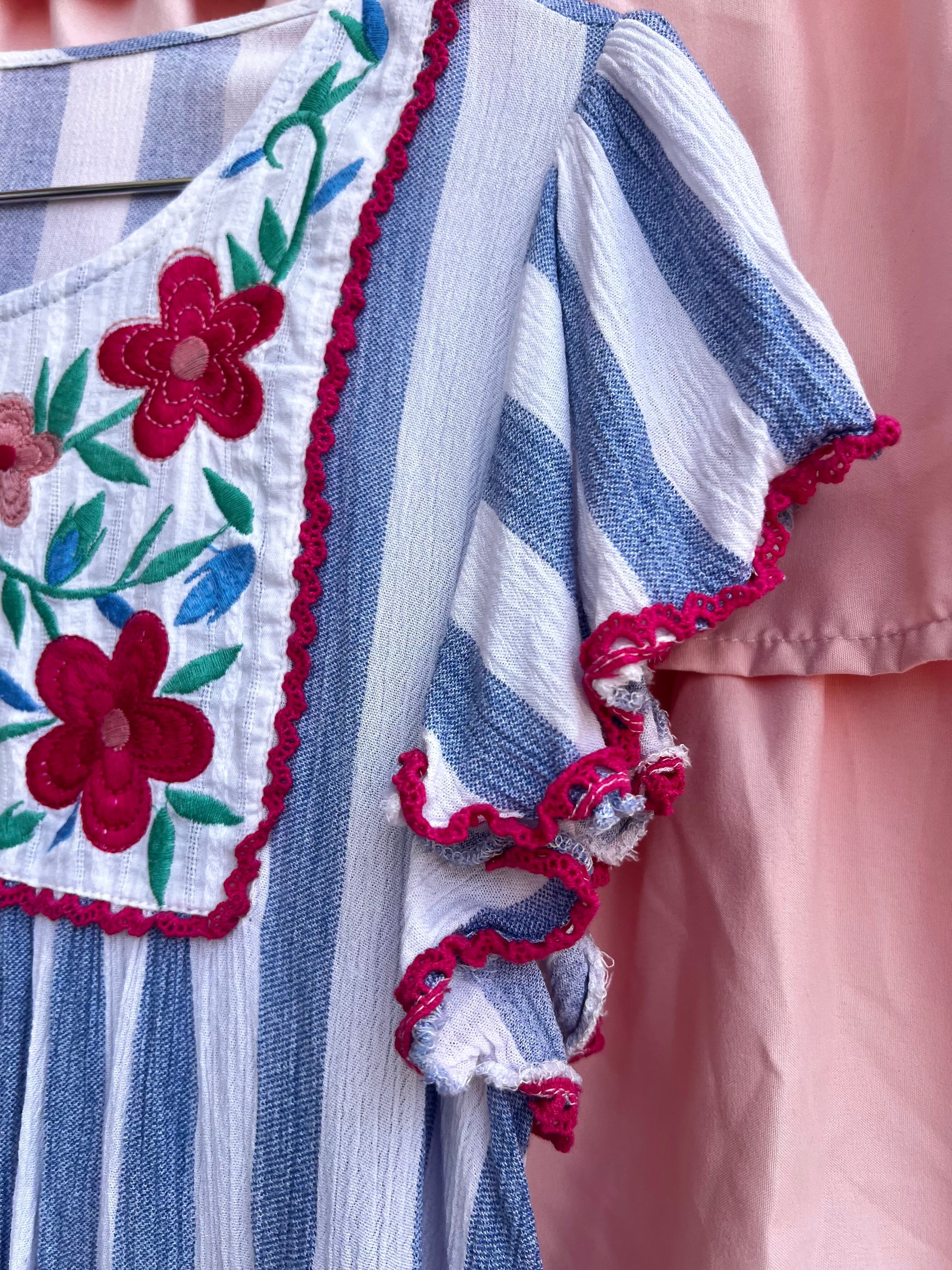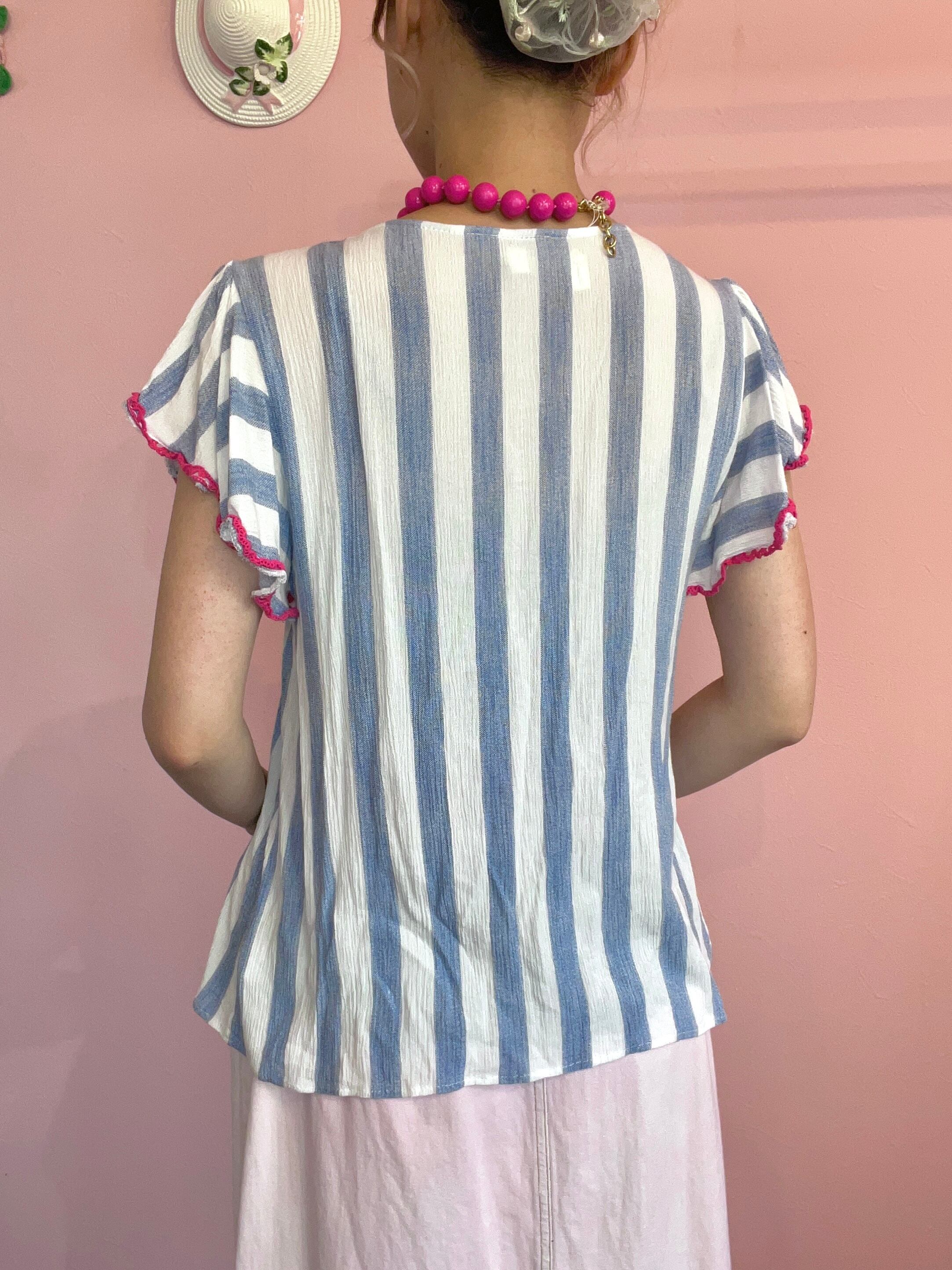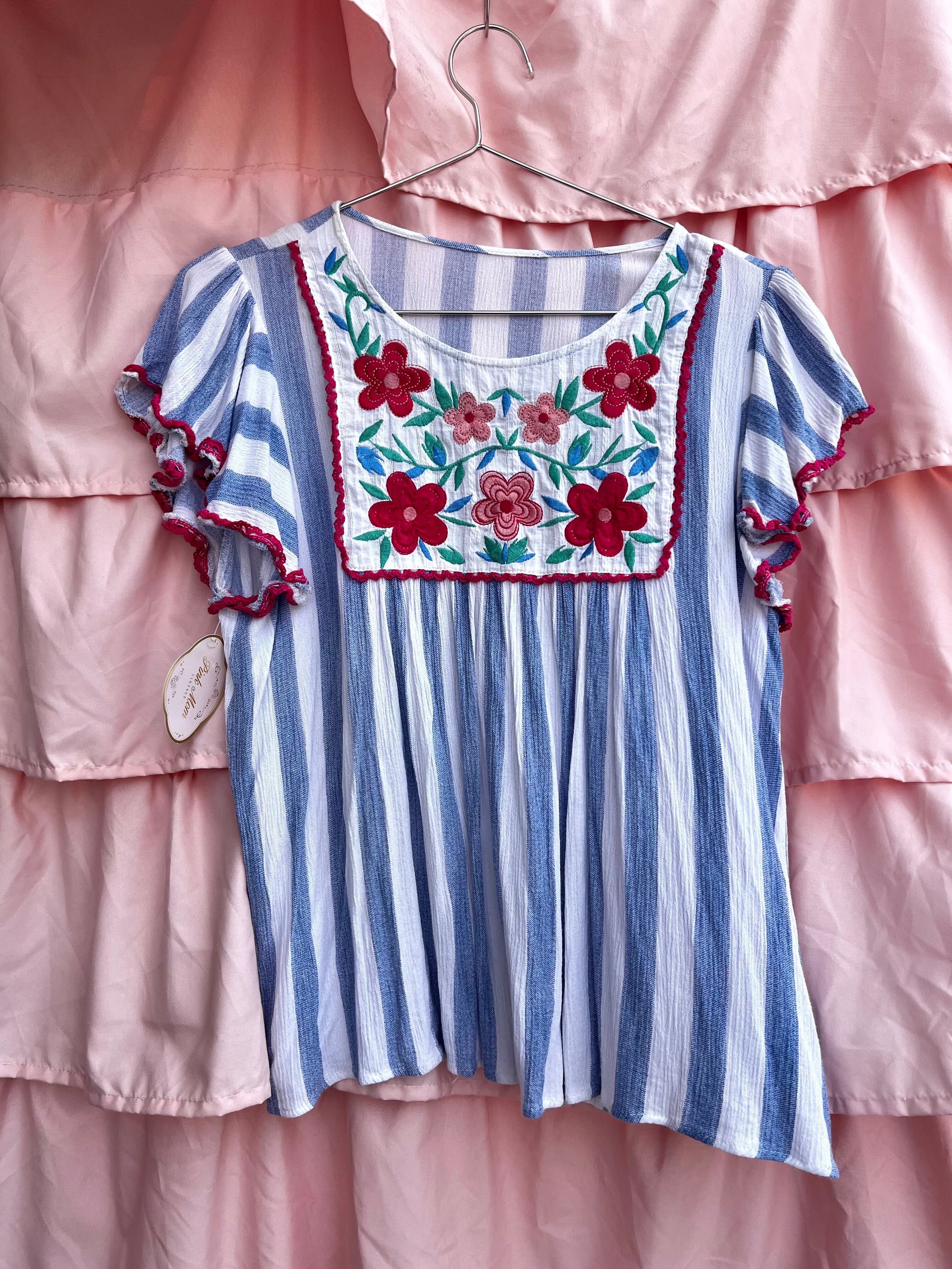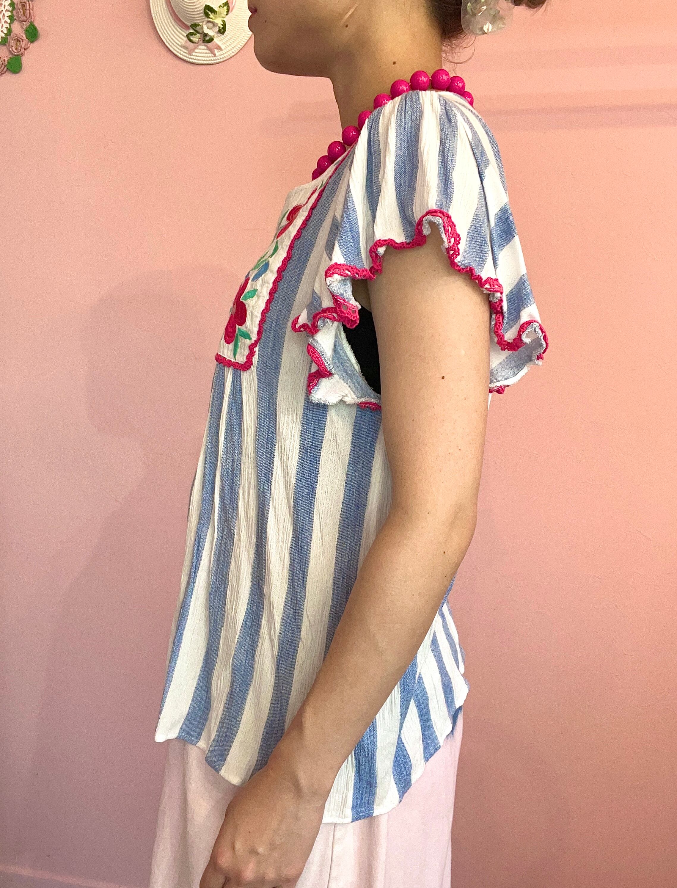 ストライプ柄にお花の刺繍が施されたトップス♡