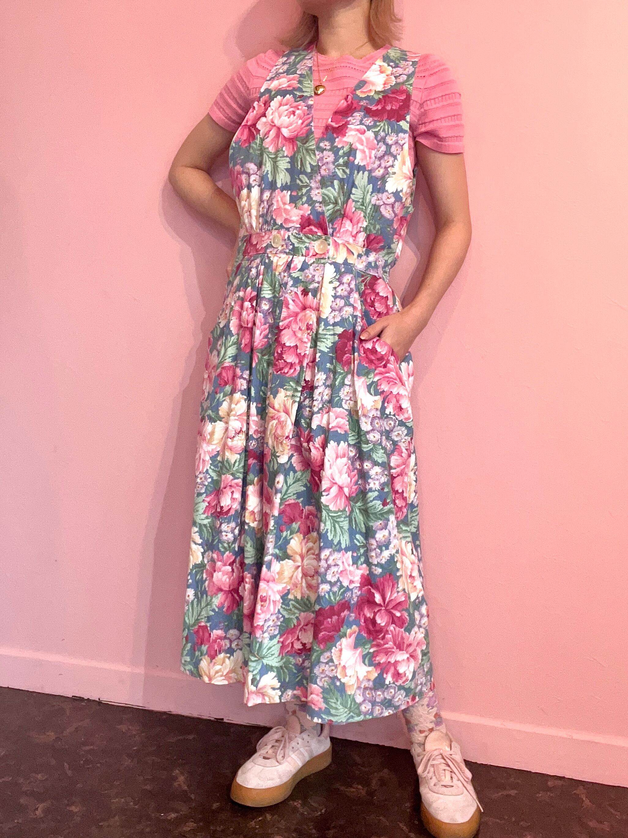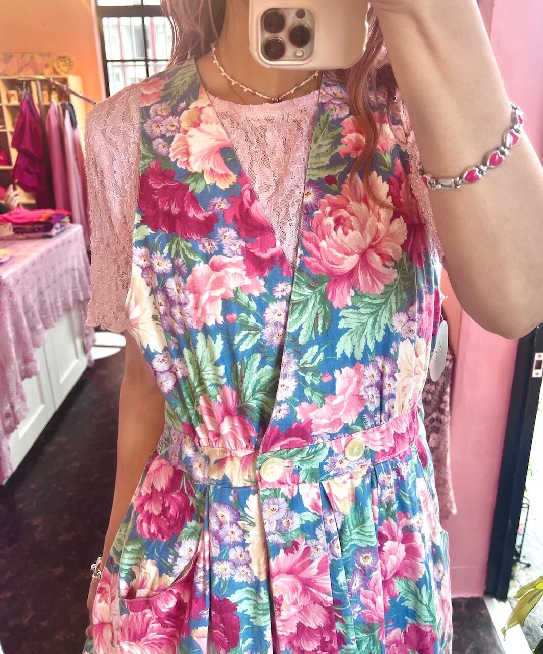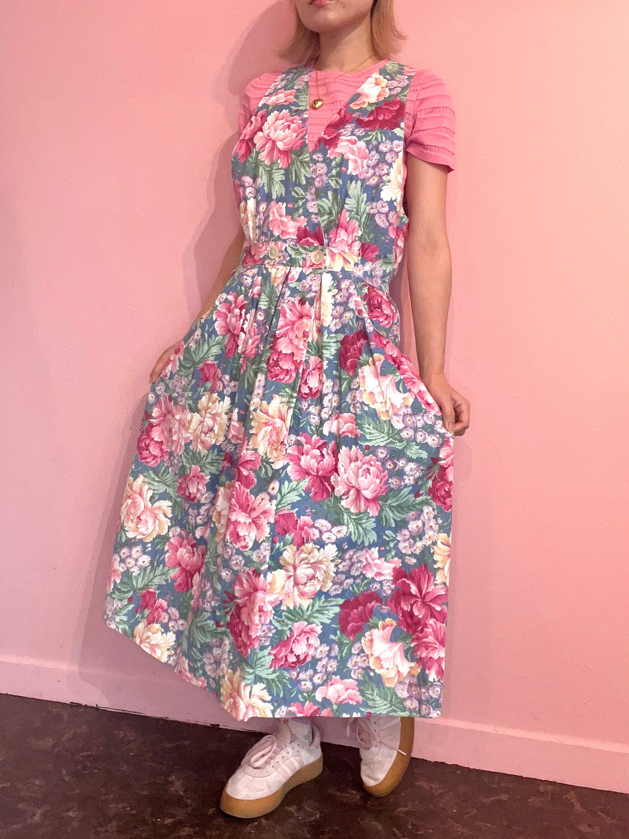 大きめな花柄とレトロな色味が可愛いらしいワンピース♡