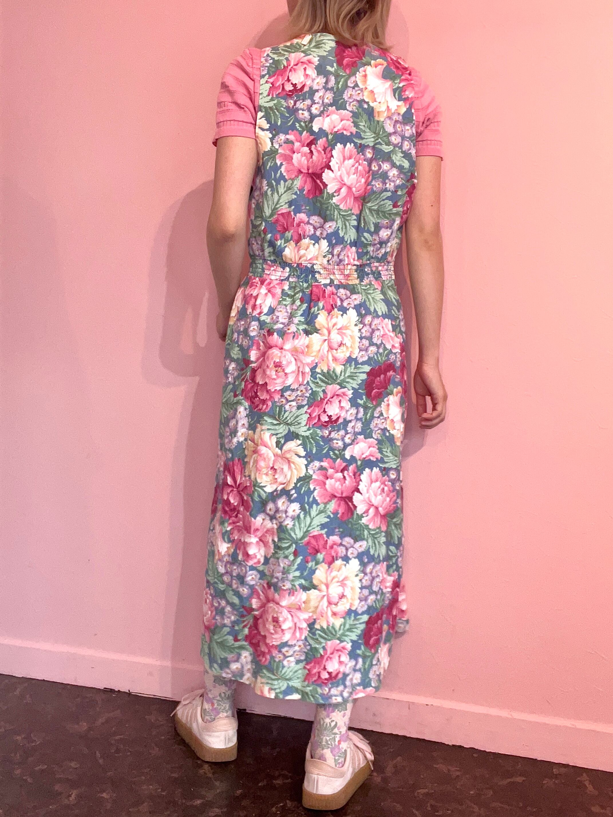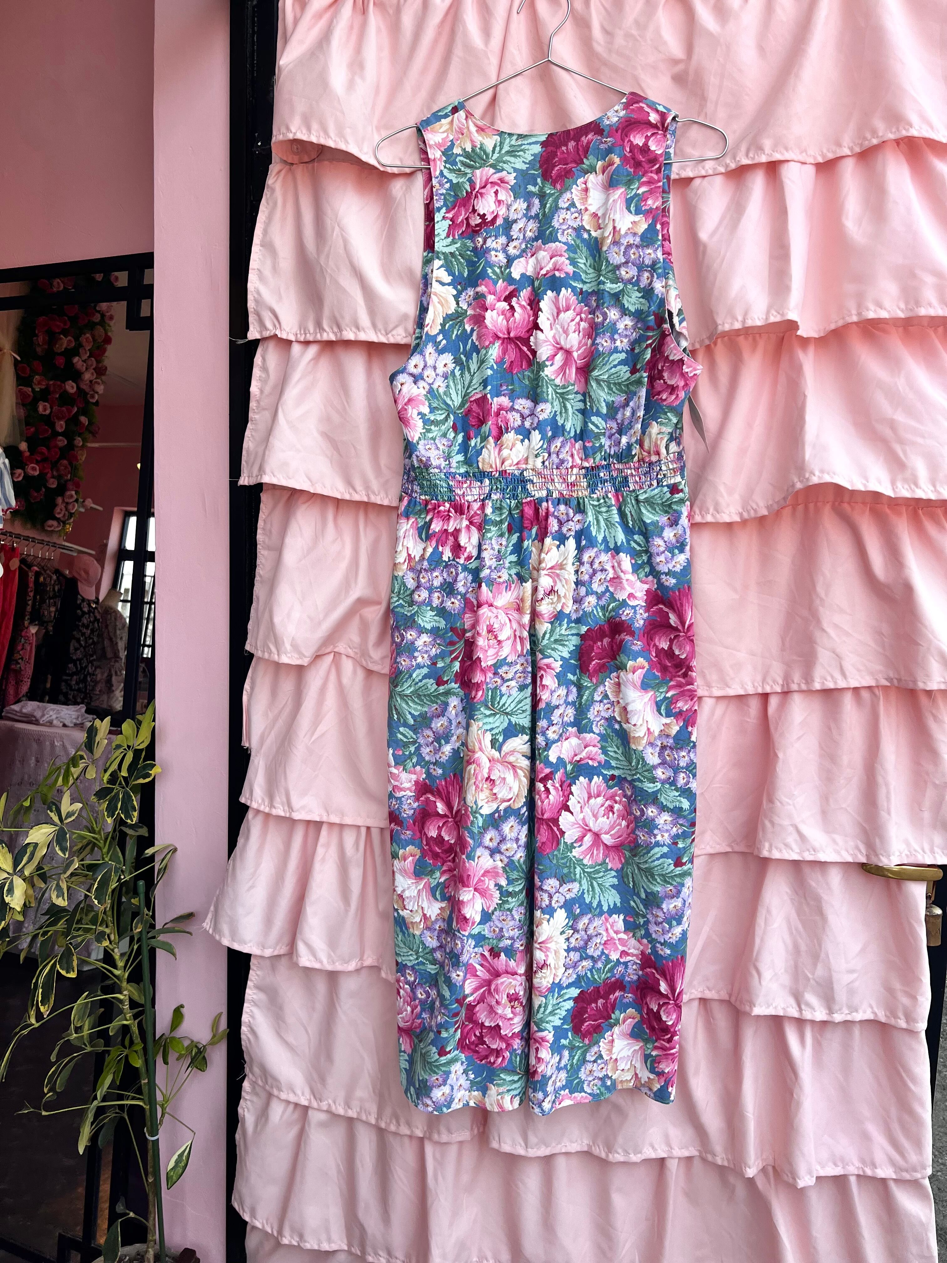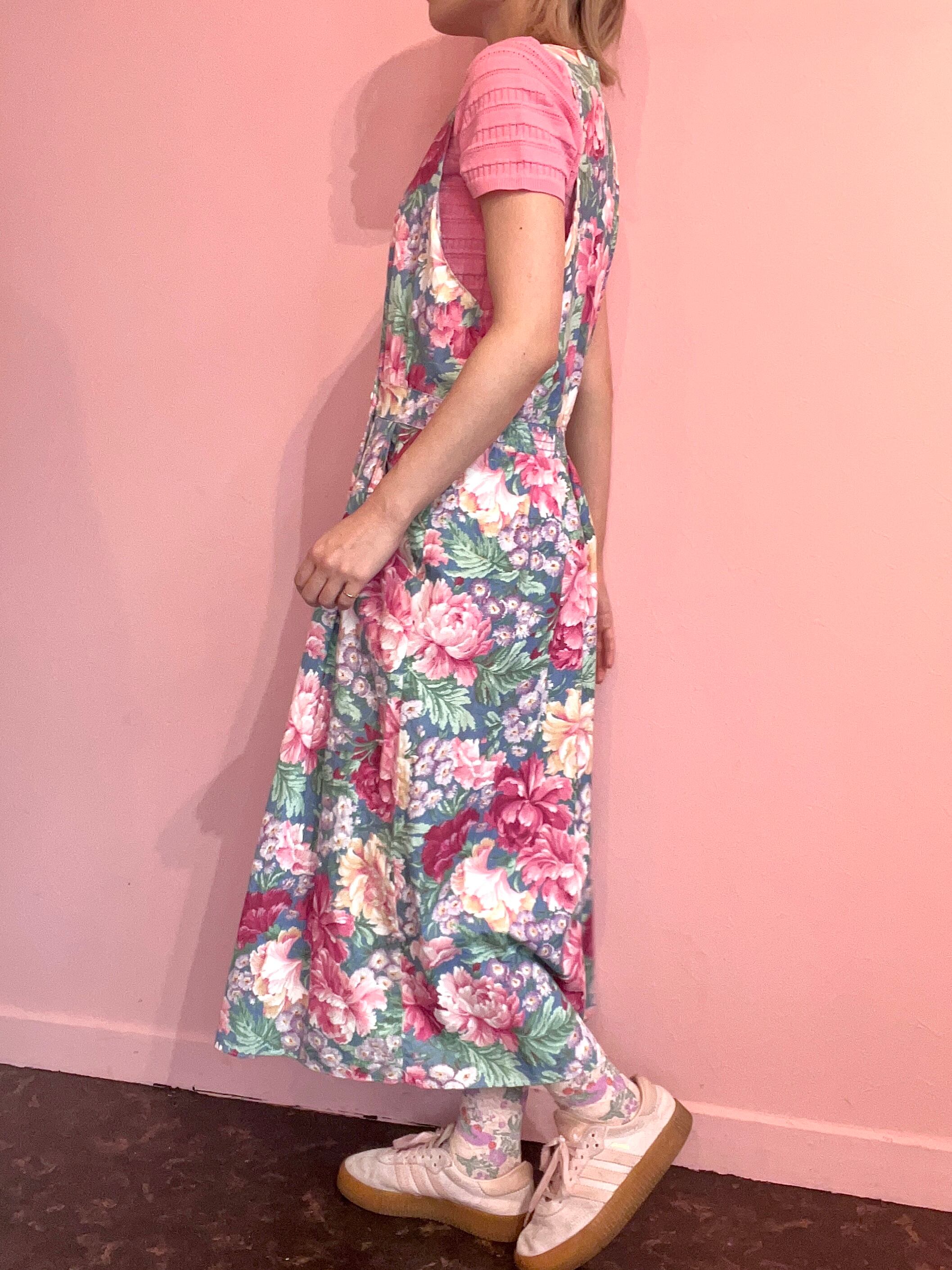 大きめな花柄とレトロな色味が可愛いらしいワンピース♡