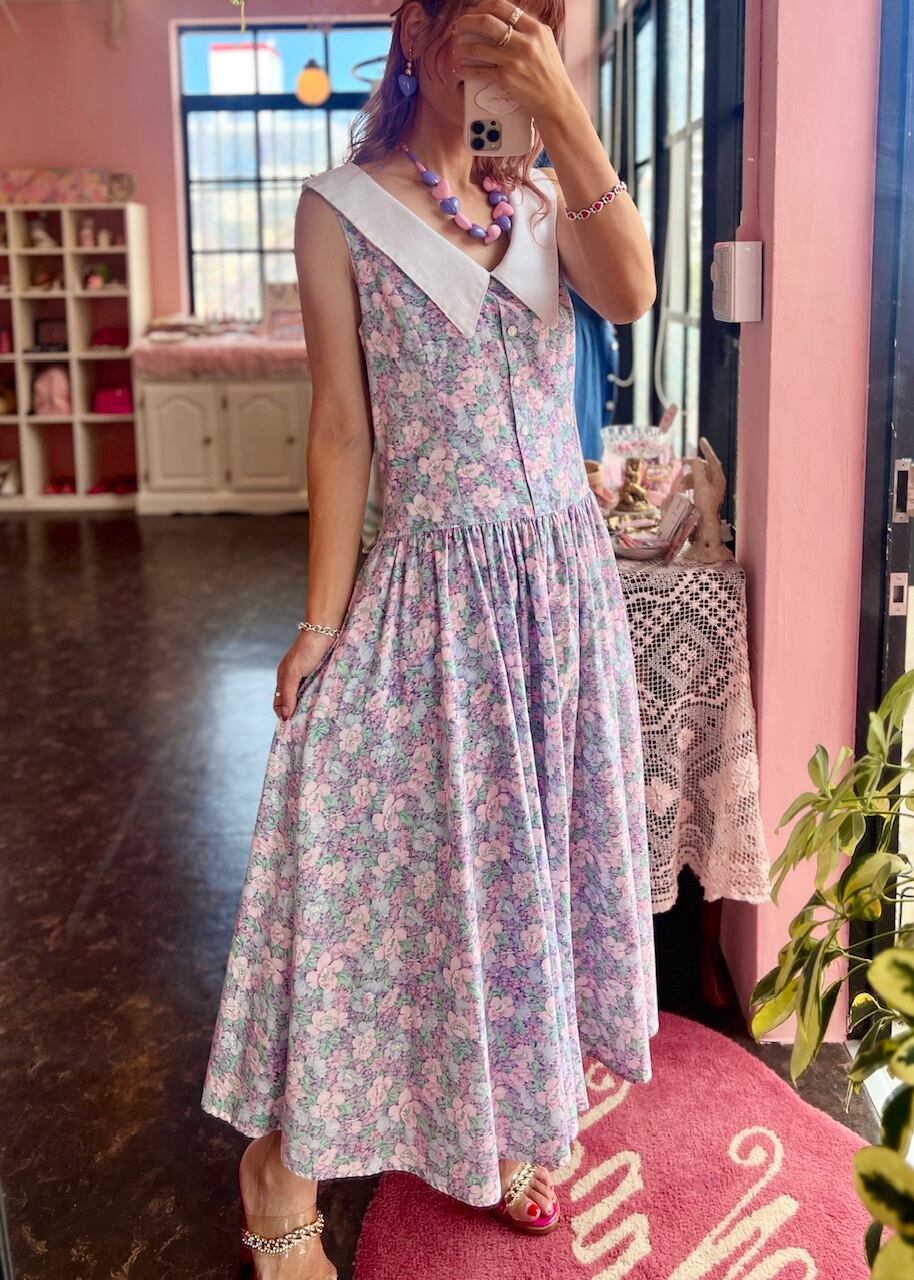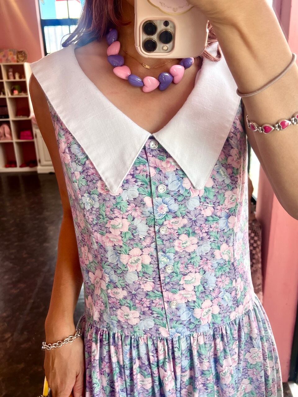 大きめな襟がワンポイントになる花柄ワンピース♡