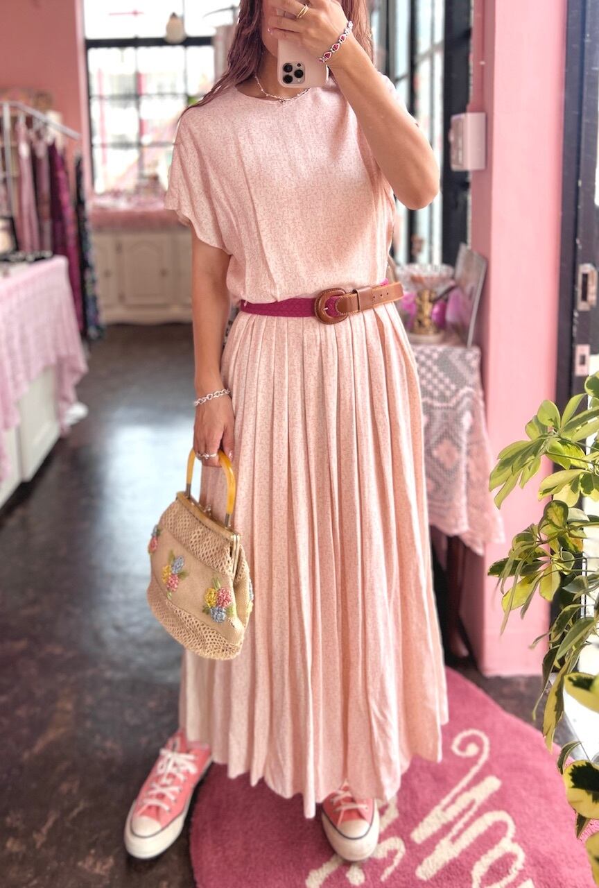 後ろボタンとプリーツの形が可愛いレーヨンワンピース♡
