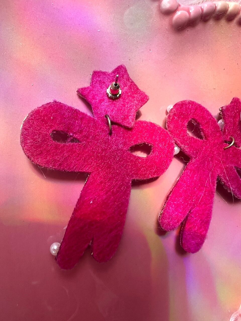 フェルトにビーズがふんだんに施されたハンドメイドピアス。