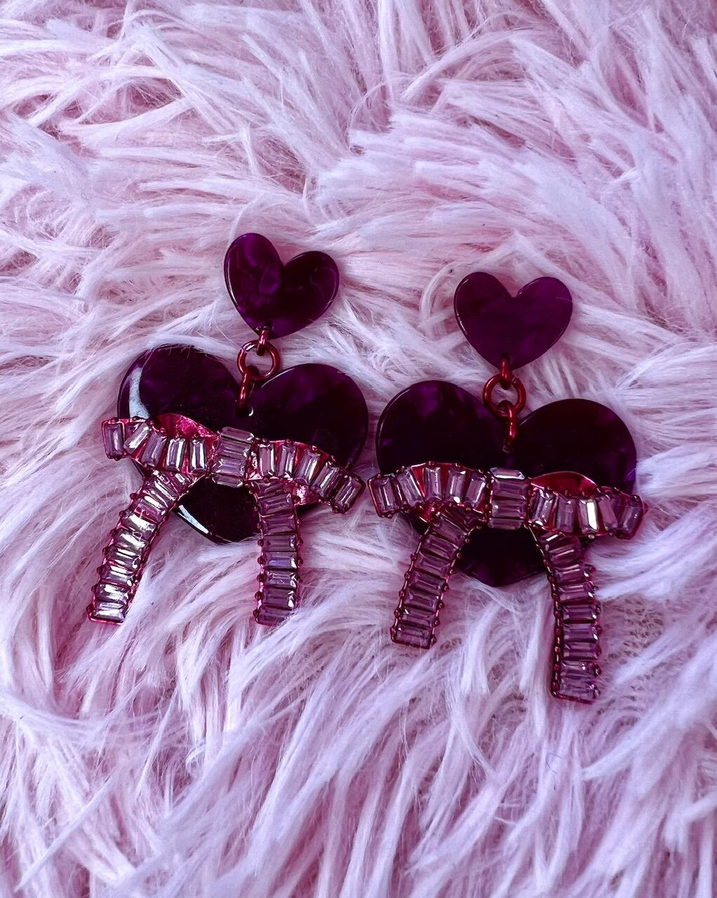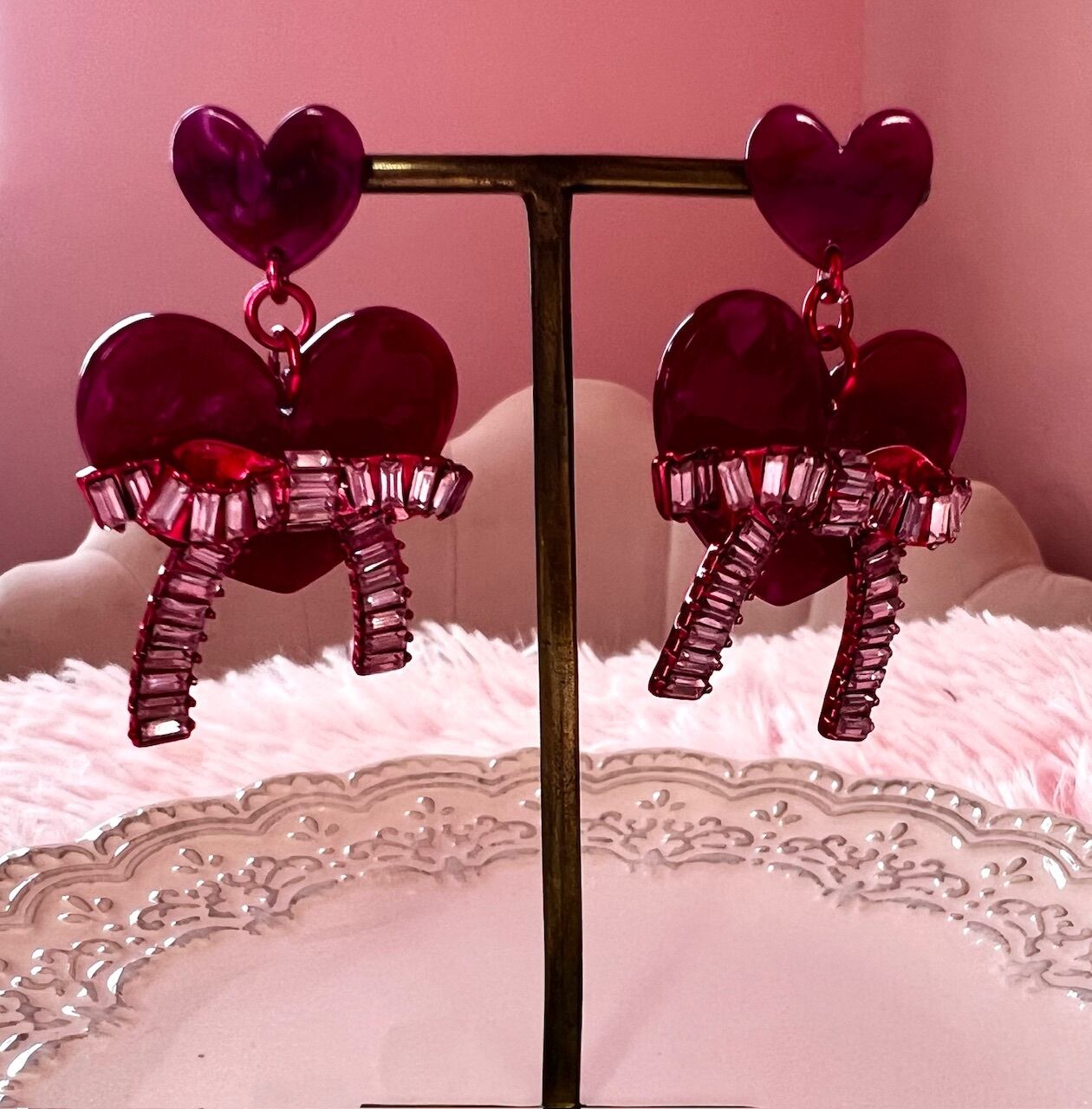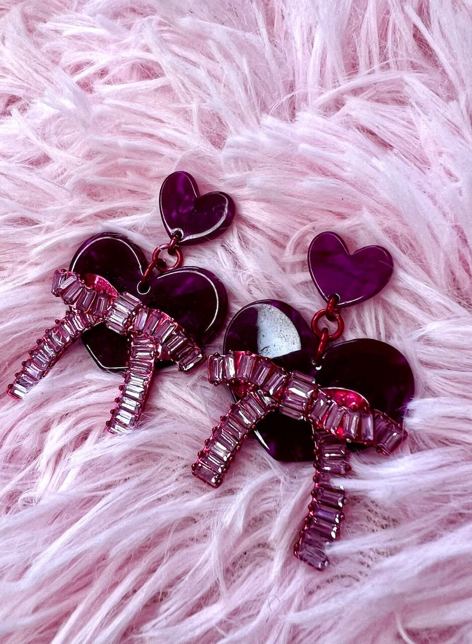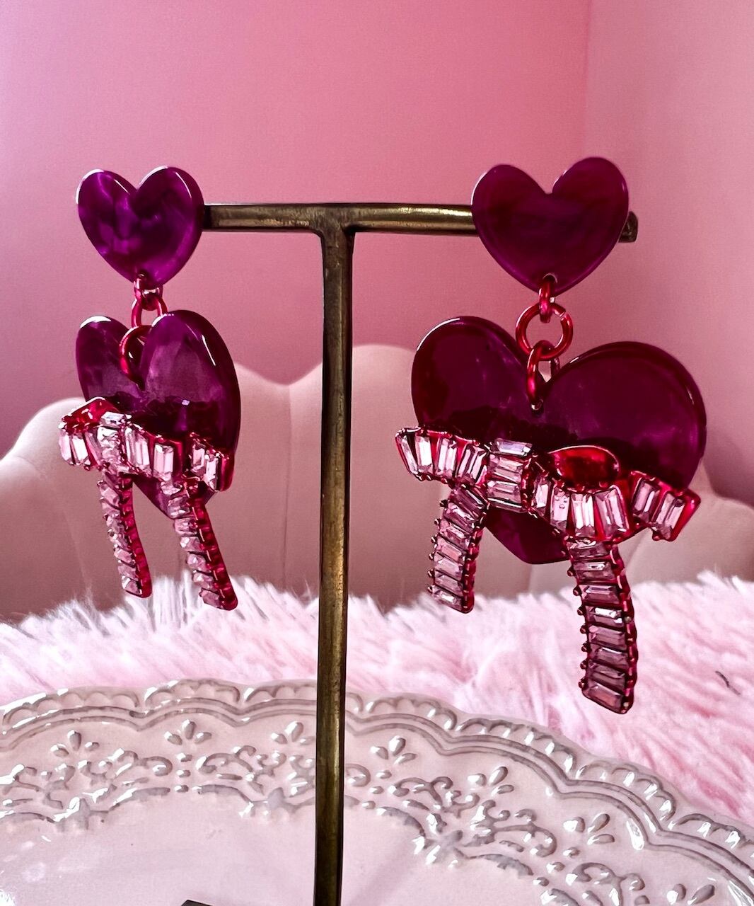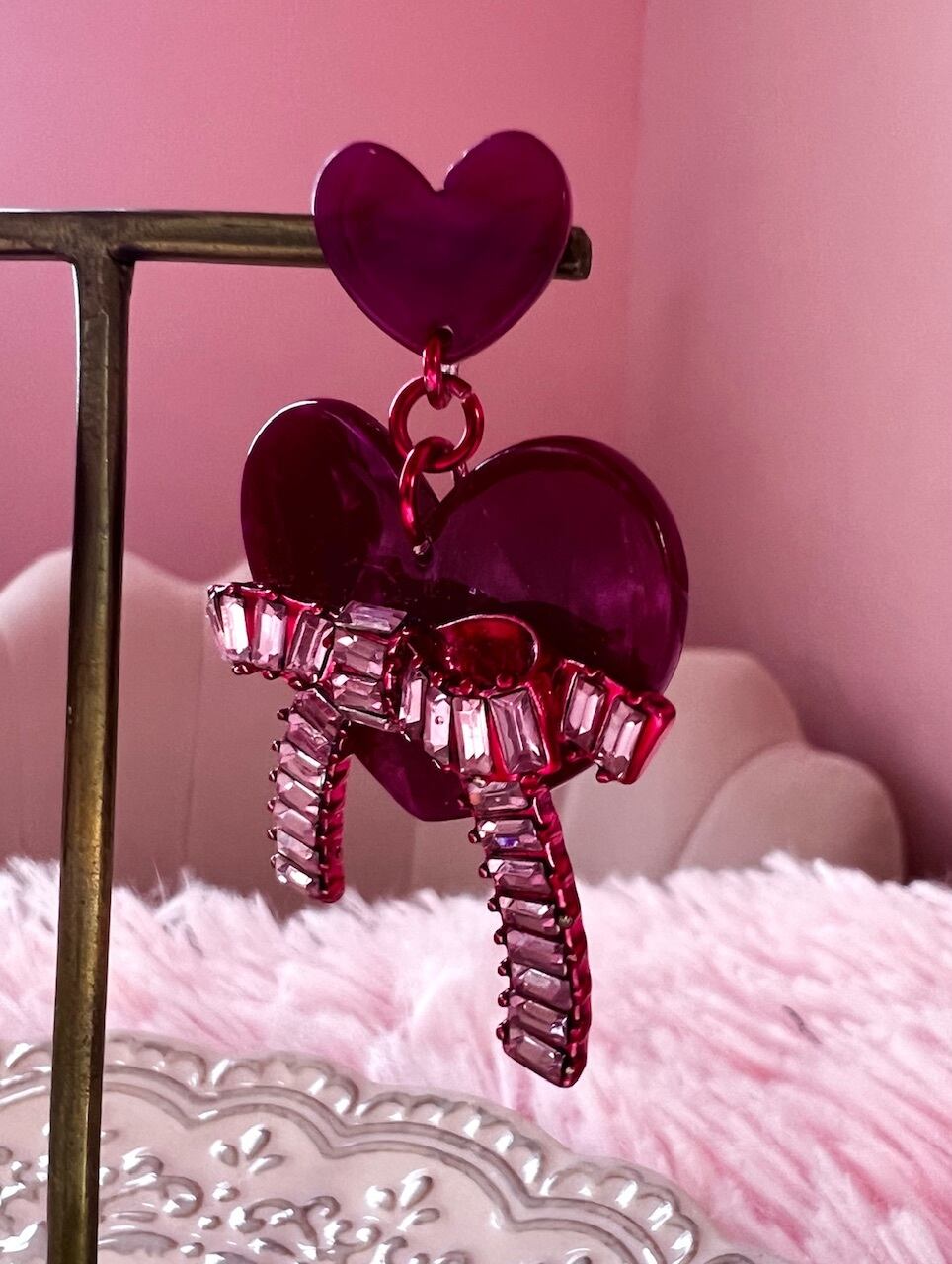 シェルが入ったようなハートのデザインにリボンのラインストーンがたっぷりと入ったピアス♡