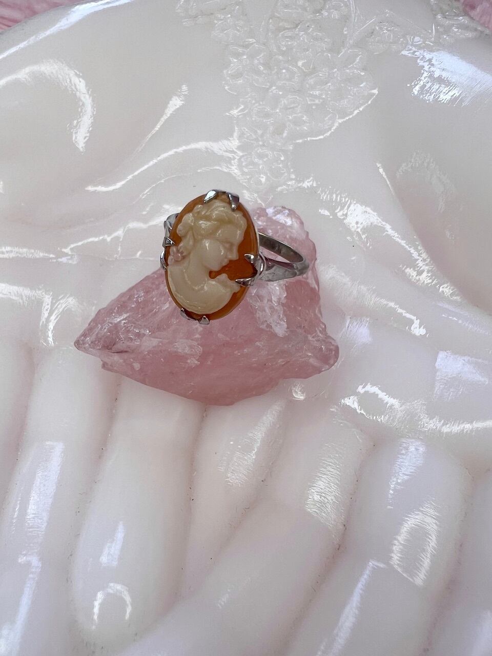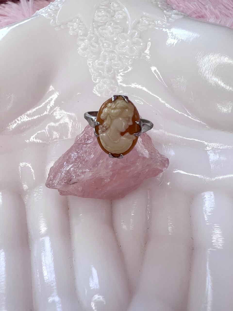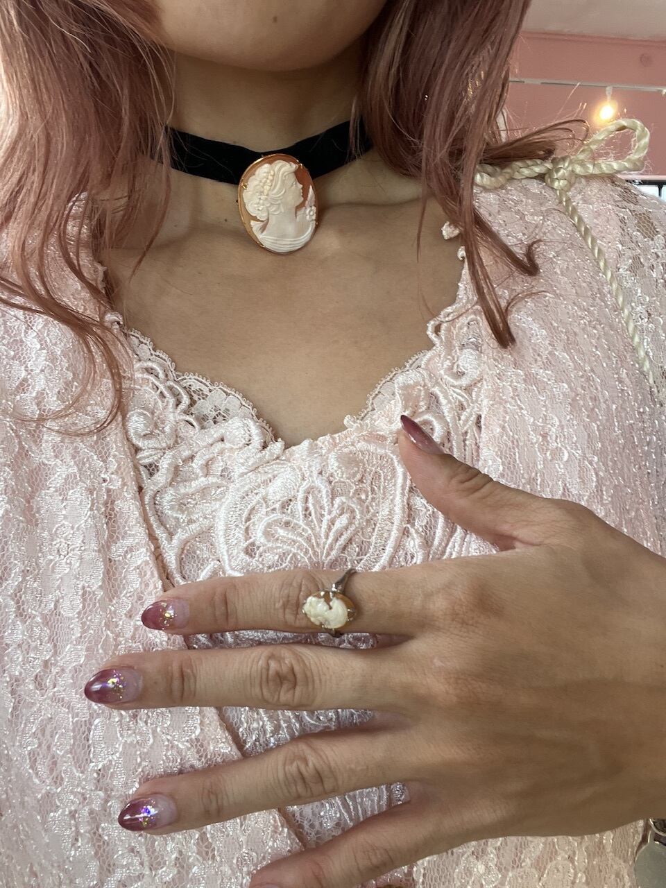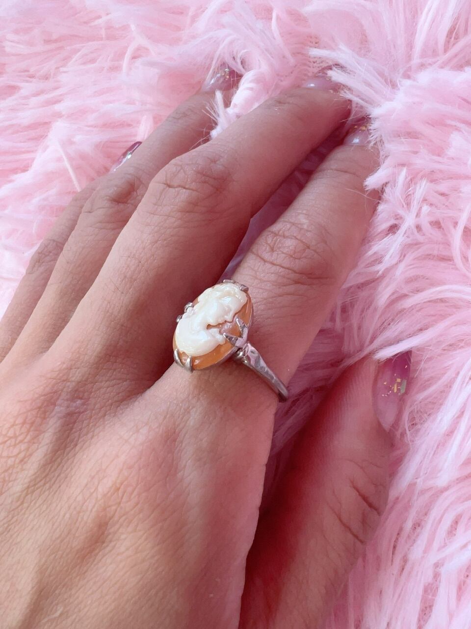指にちょうど収まるぐらいのカメオが可愛いリング。