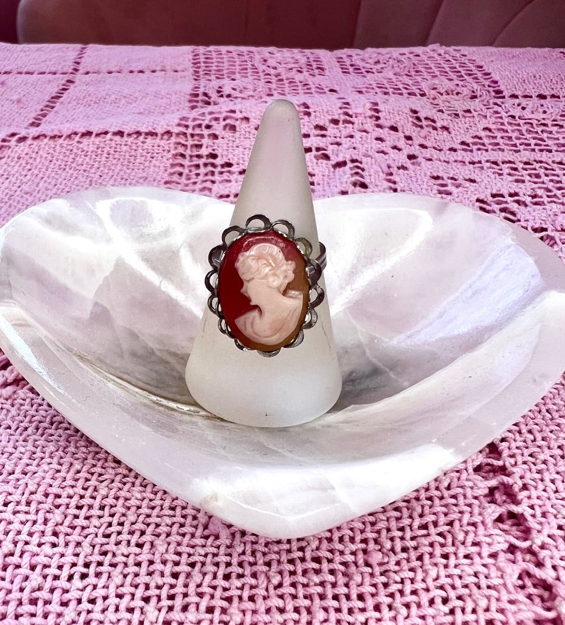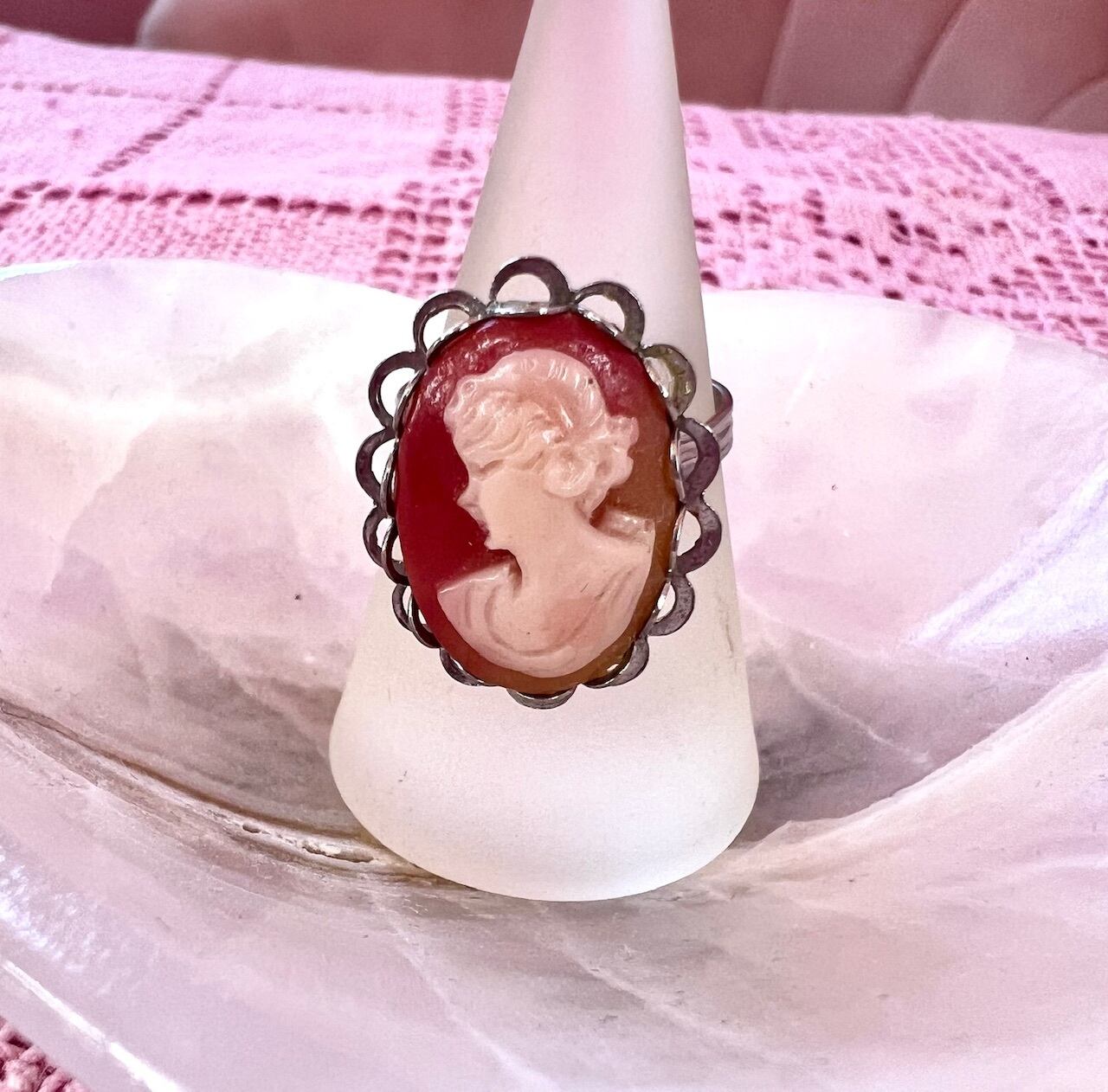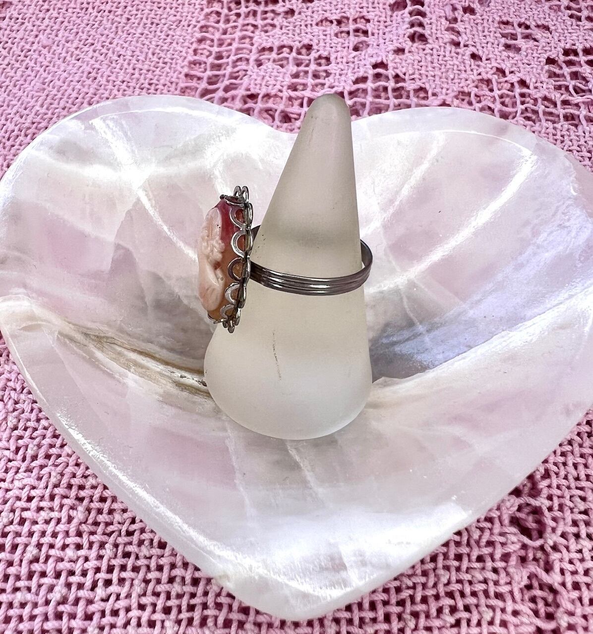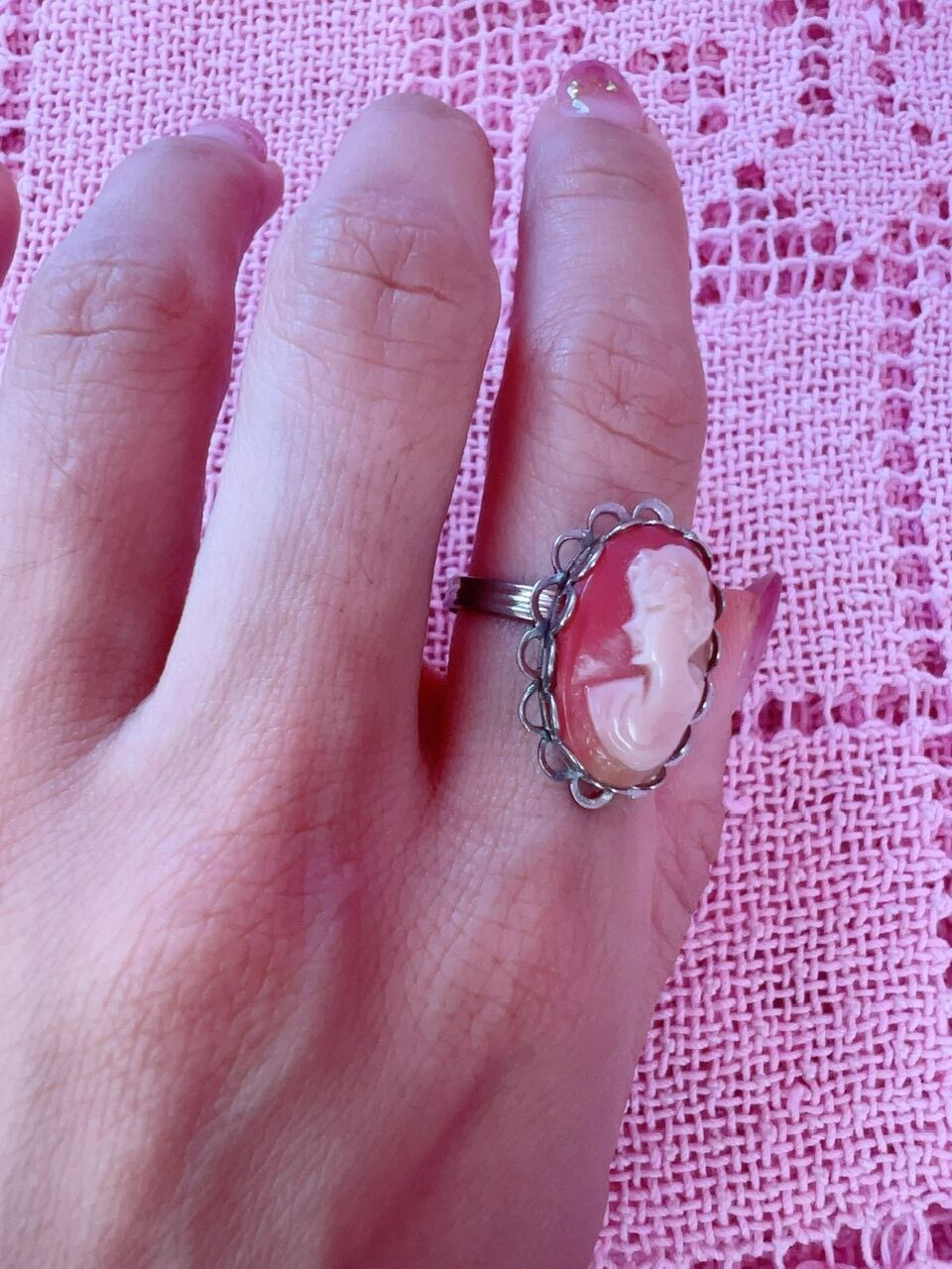 カメオの周りにお花のようなモチーフが施されているリング♡