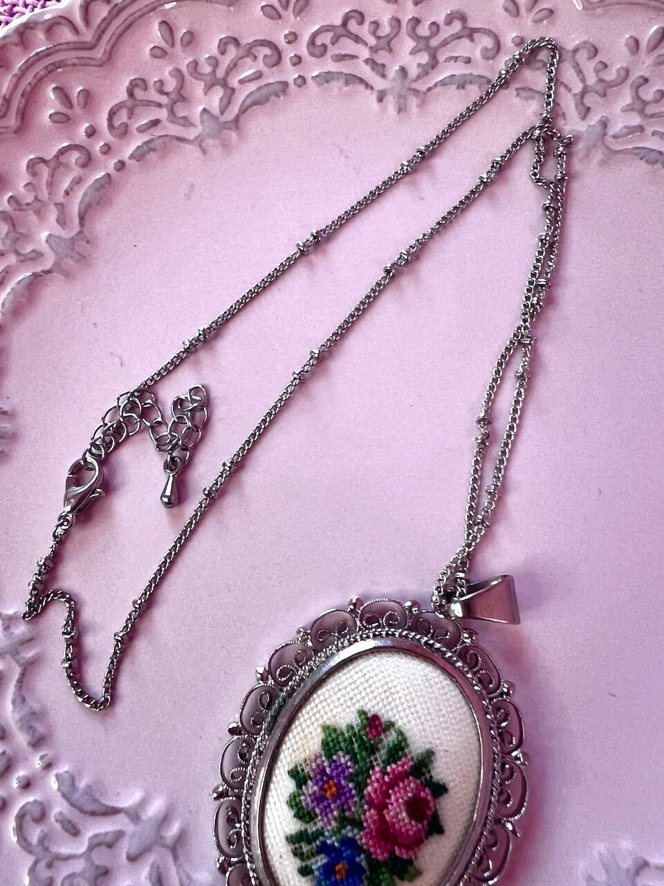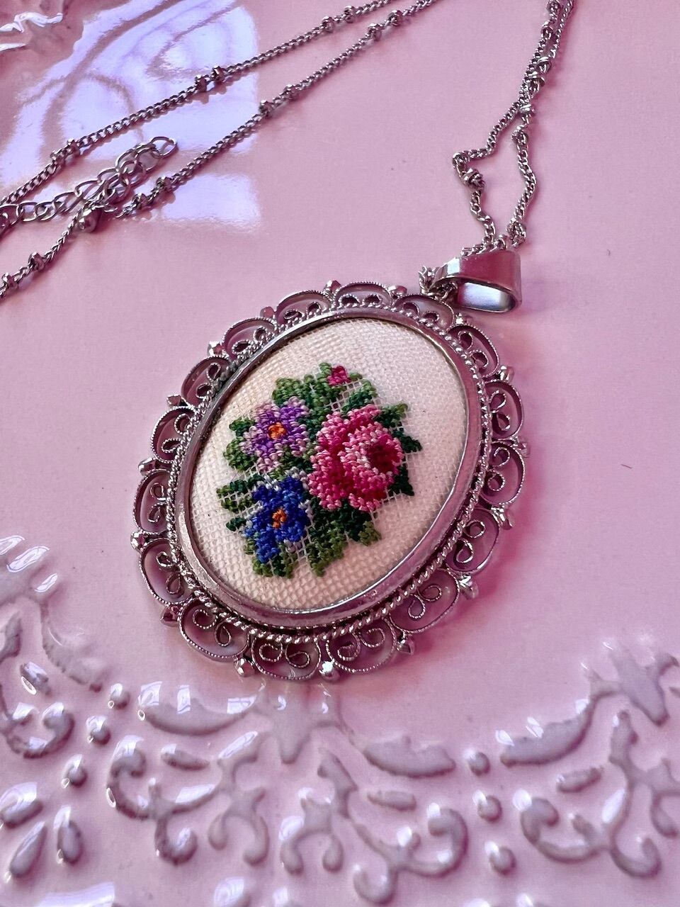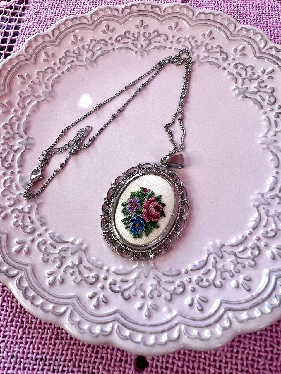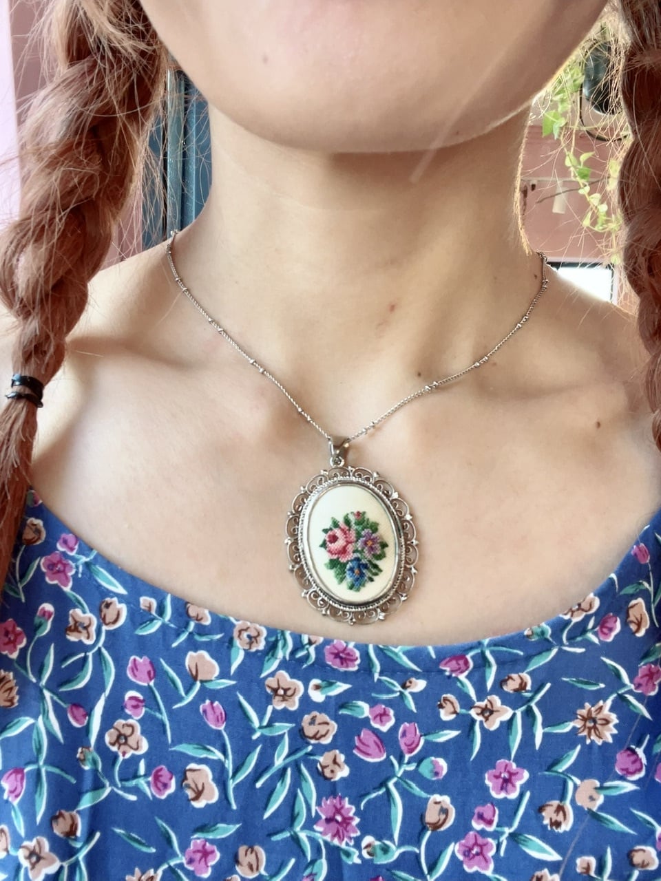 ヴィンテージプチポワン刺繍のネックレスです♡