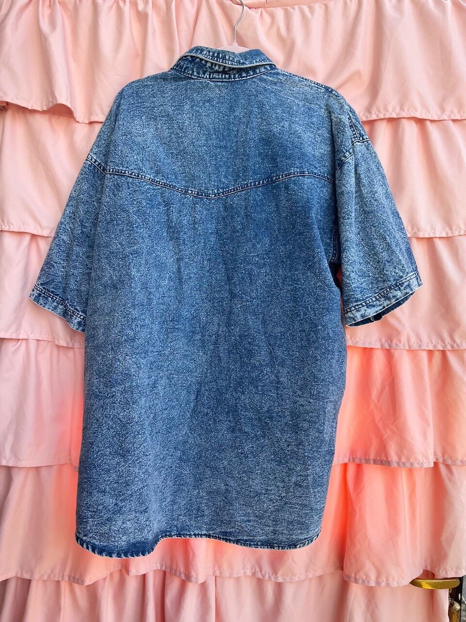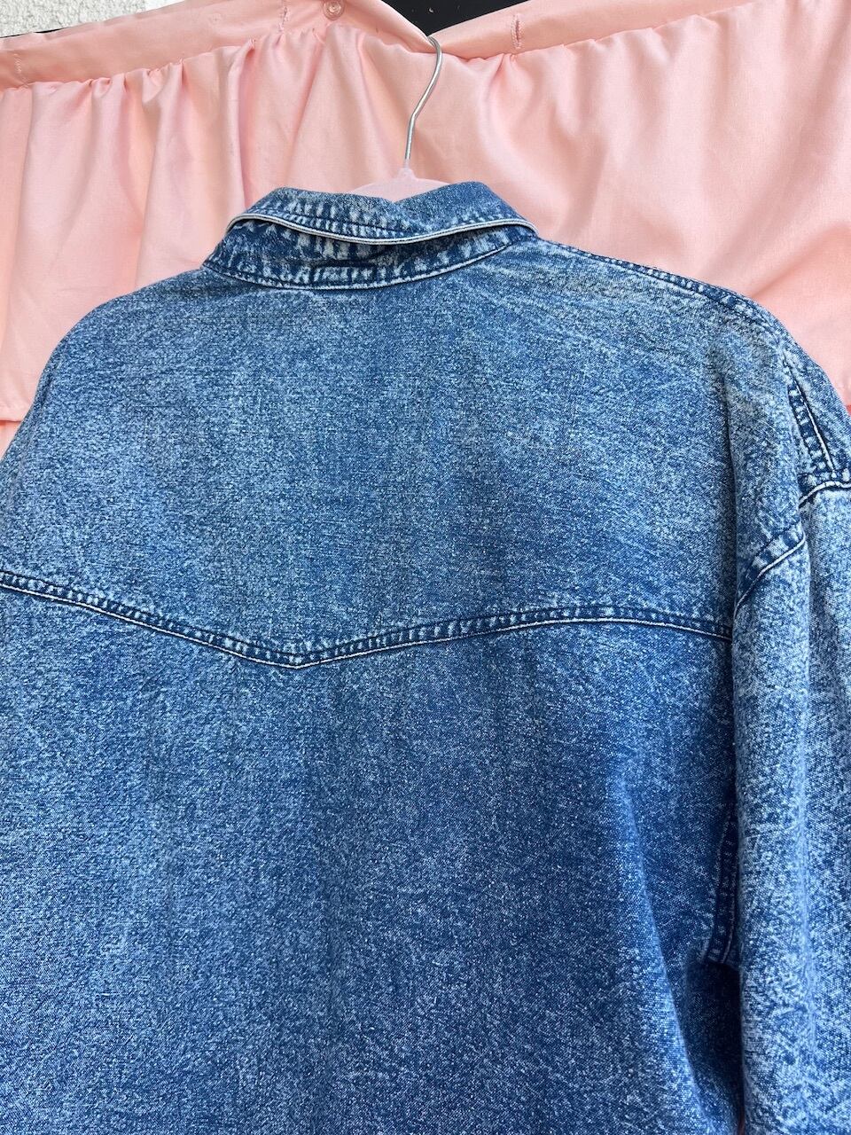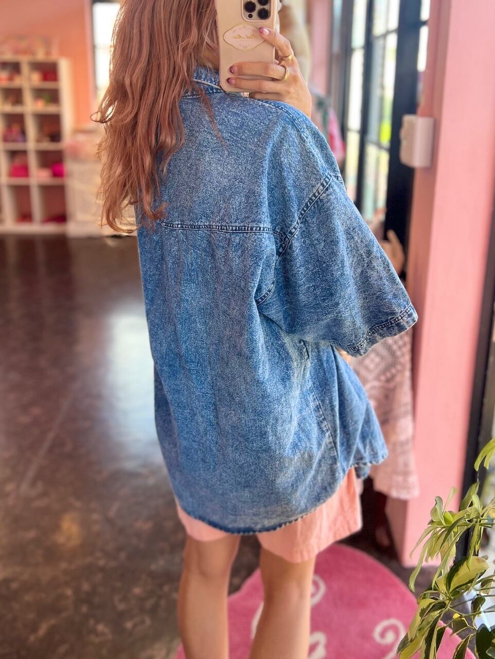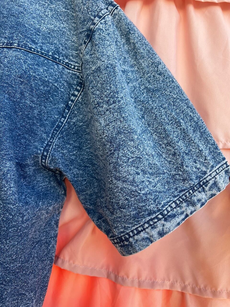 パールでできたお花の模様と、植物柄の刺繍が素敵なケミカルデニムシャツ♡