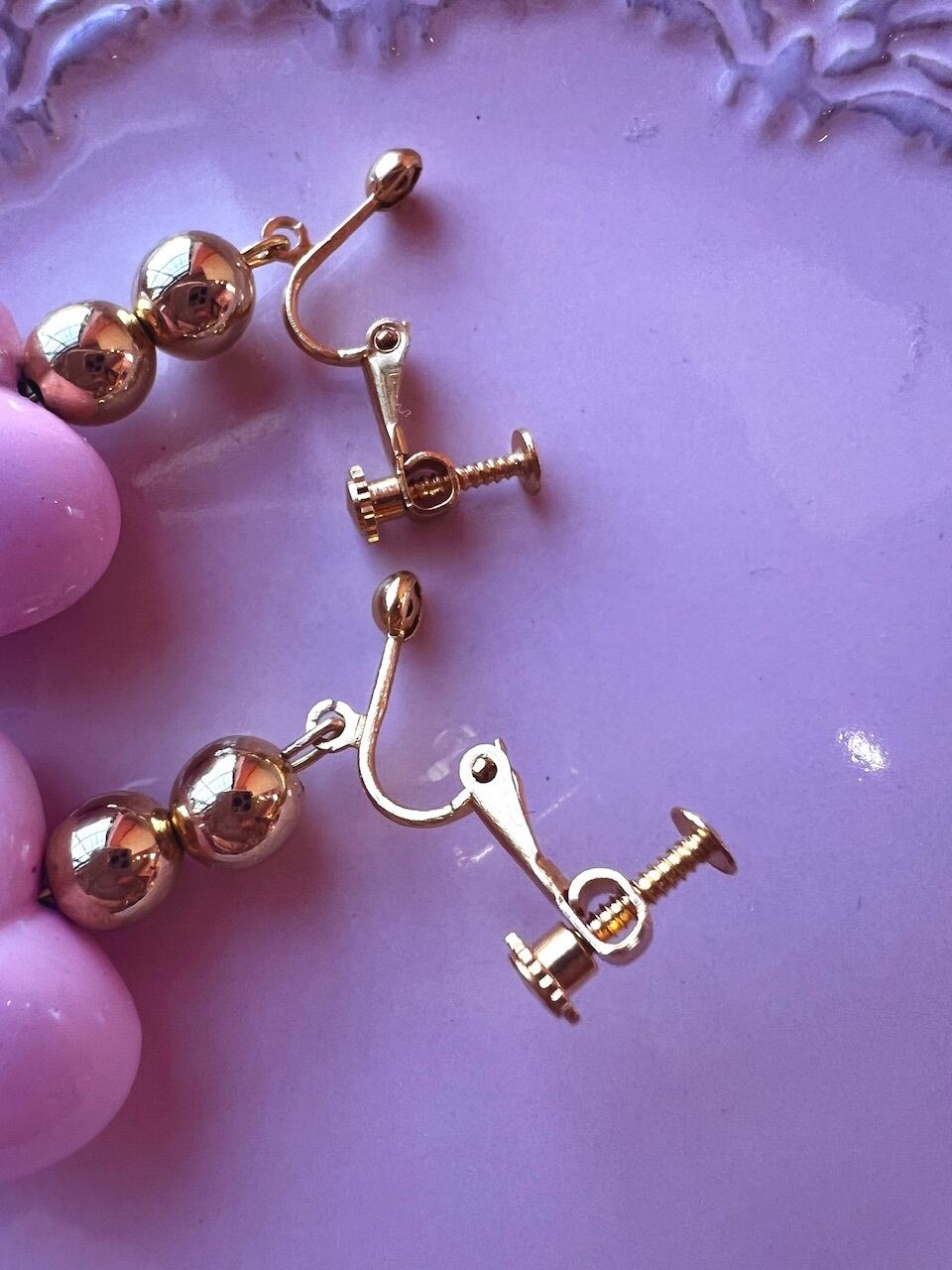 ゴールドのビーズがアクセントになっていて可愛いらしいデザインです♡