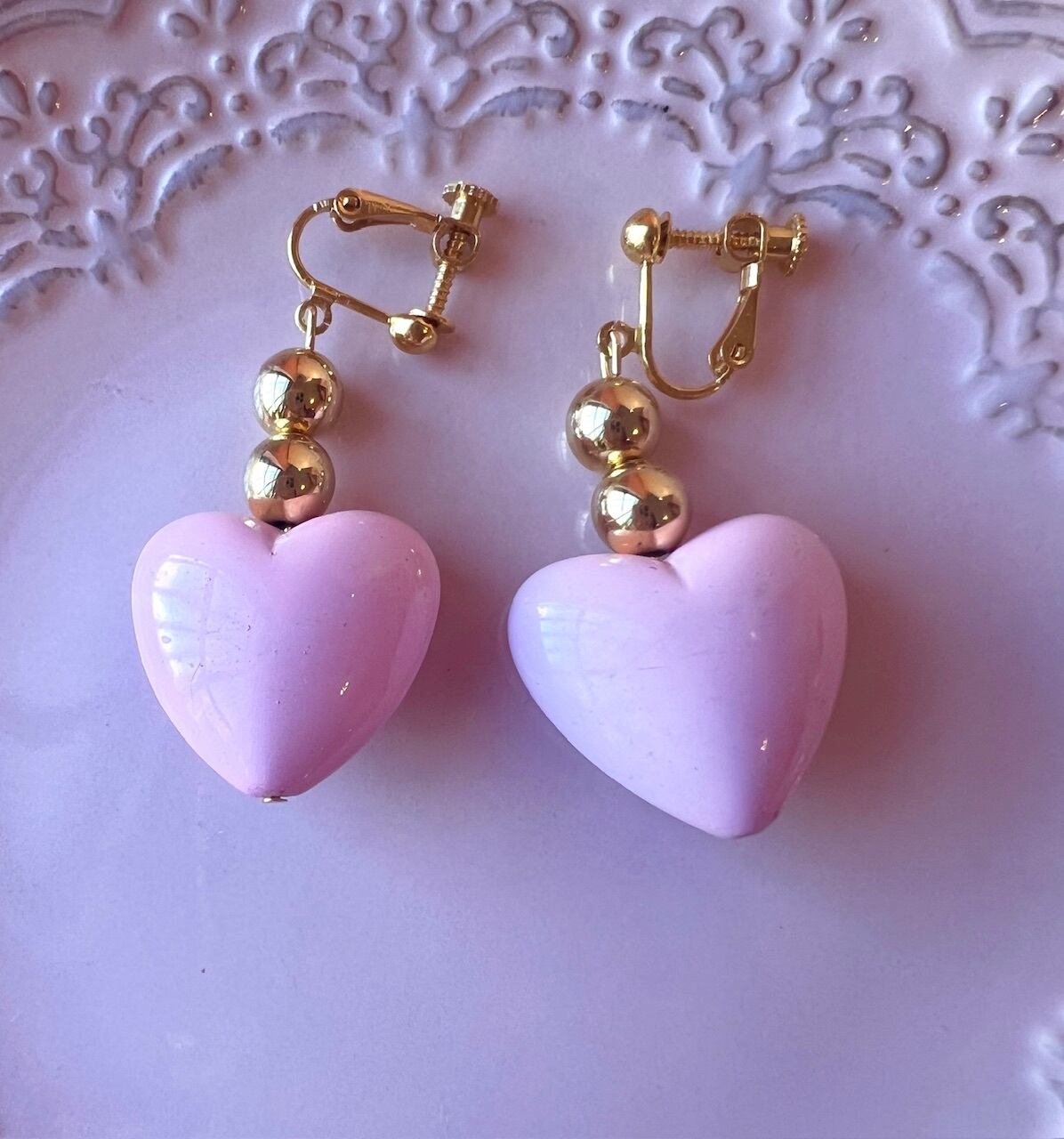 ぷらぷらと揺れるハートが可愛いらしいイヤリング♡
