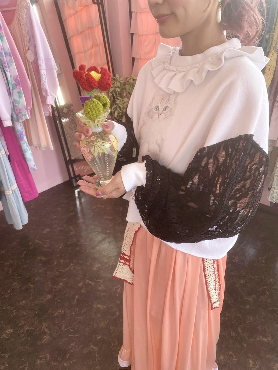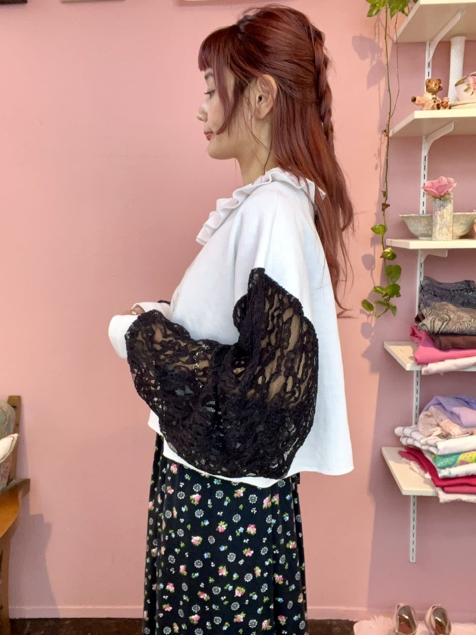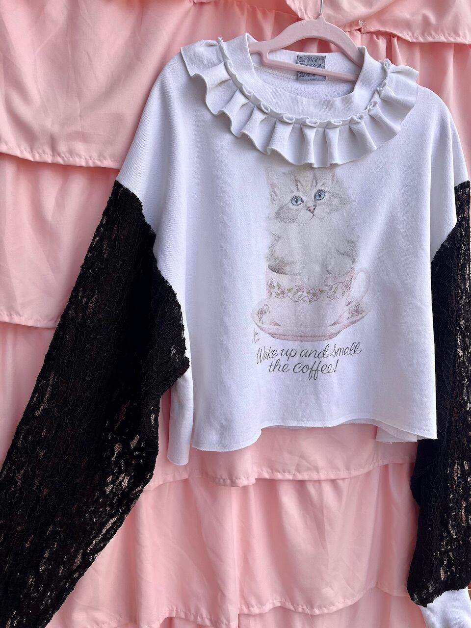 …cat frill neck sleeve lace sweat…