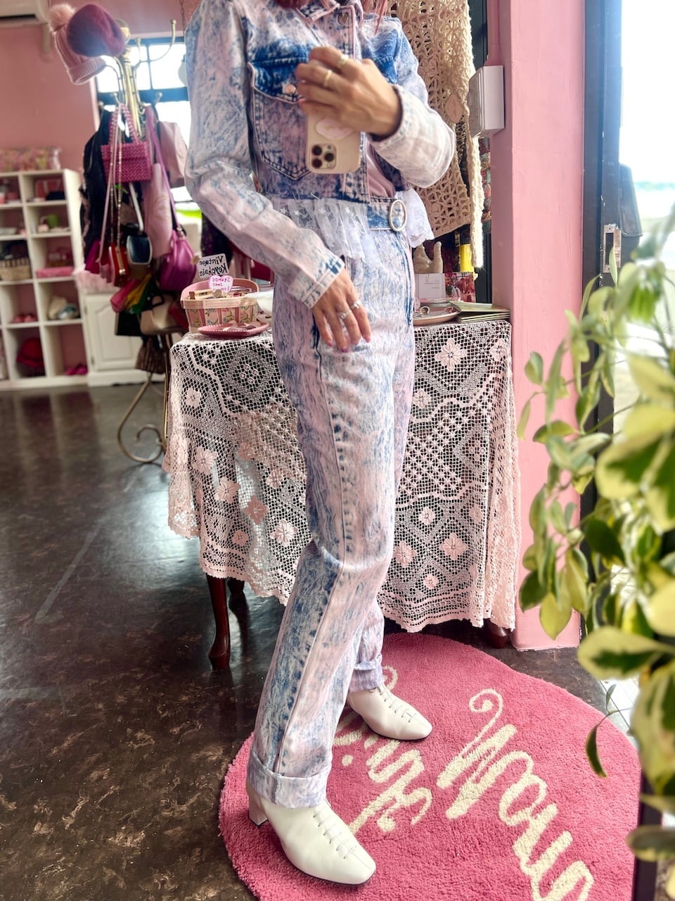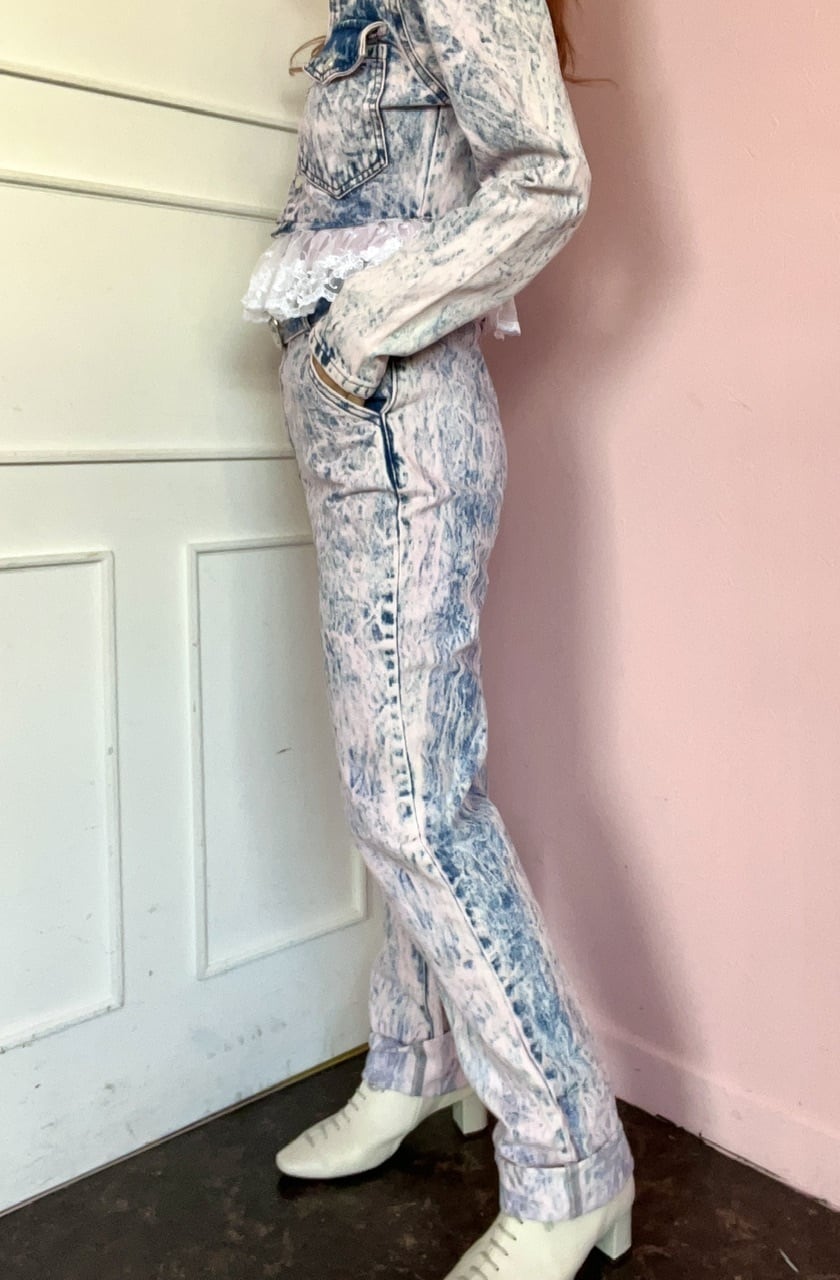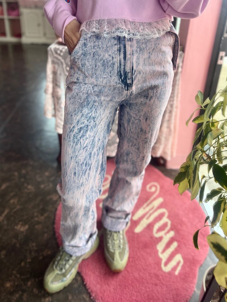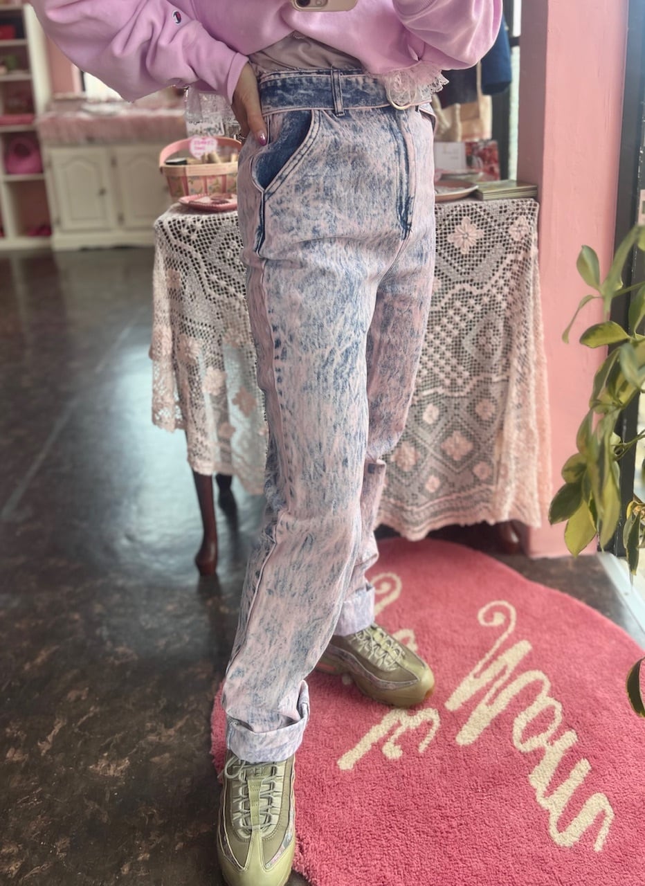 ピンクのケミカル柄が可愛いデニムパンツ♡