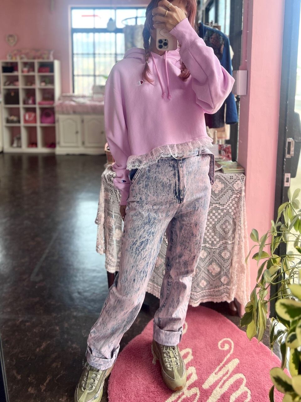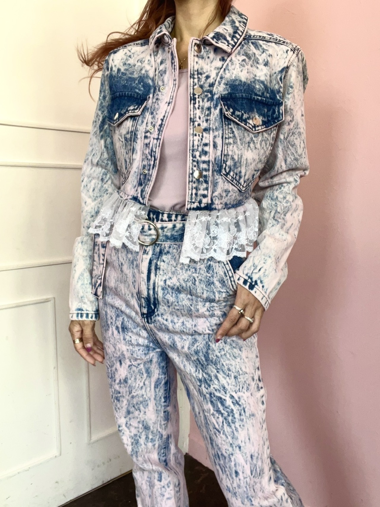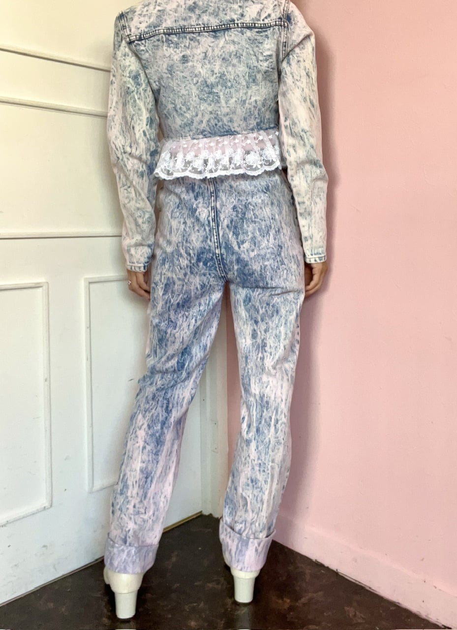 ピンクのケミカル柄が可愛いデニムパンツ♡
