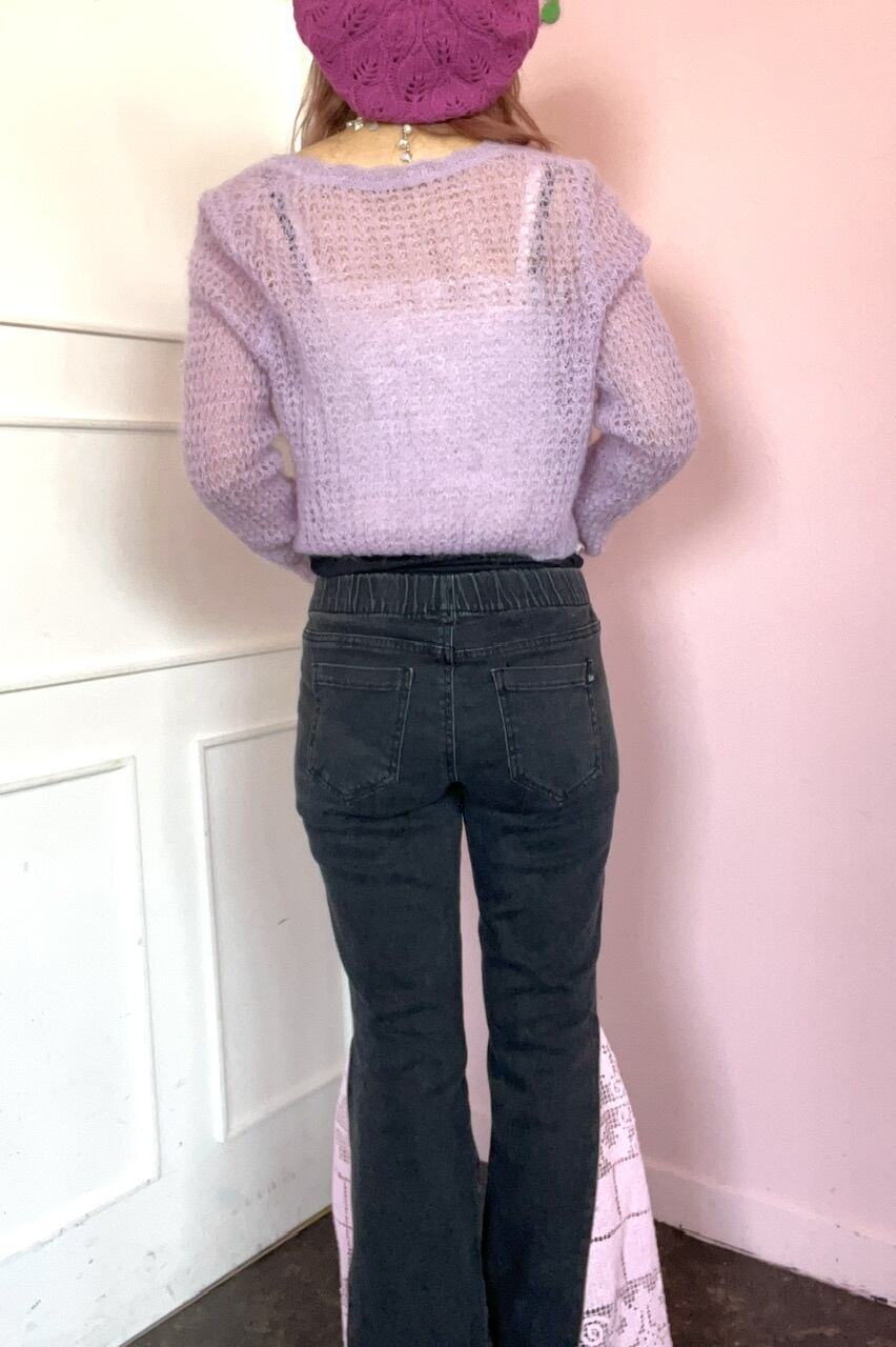 ローウエストのブラックデニムパンツにヴィンテージレースを施しました♡