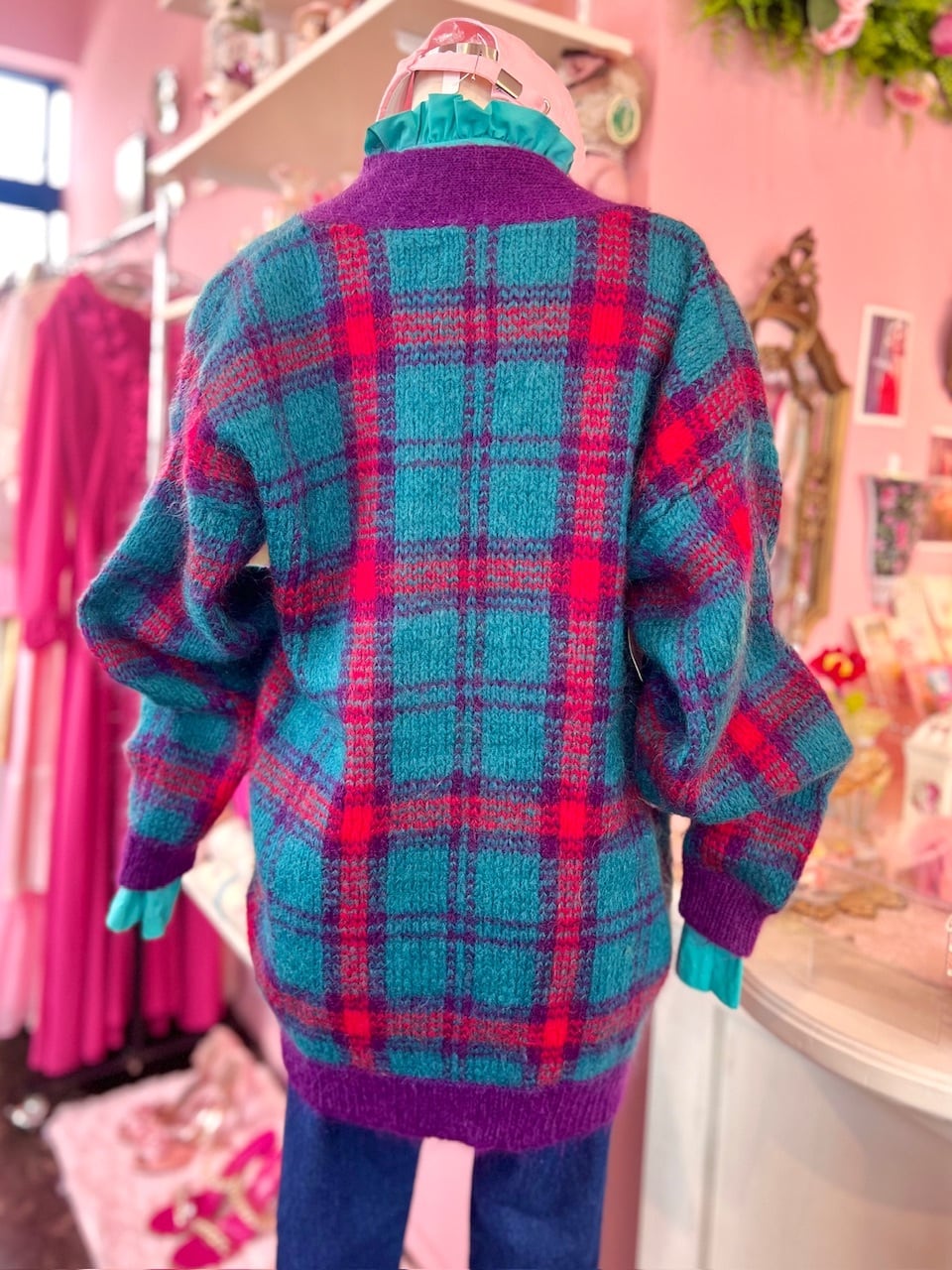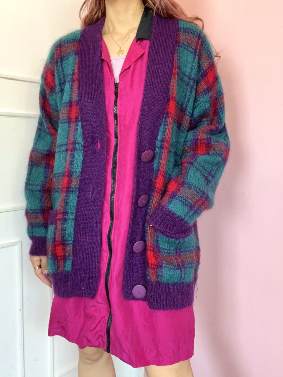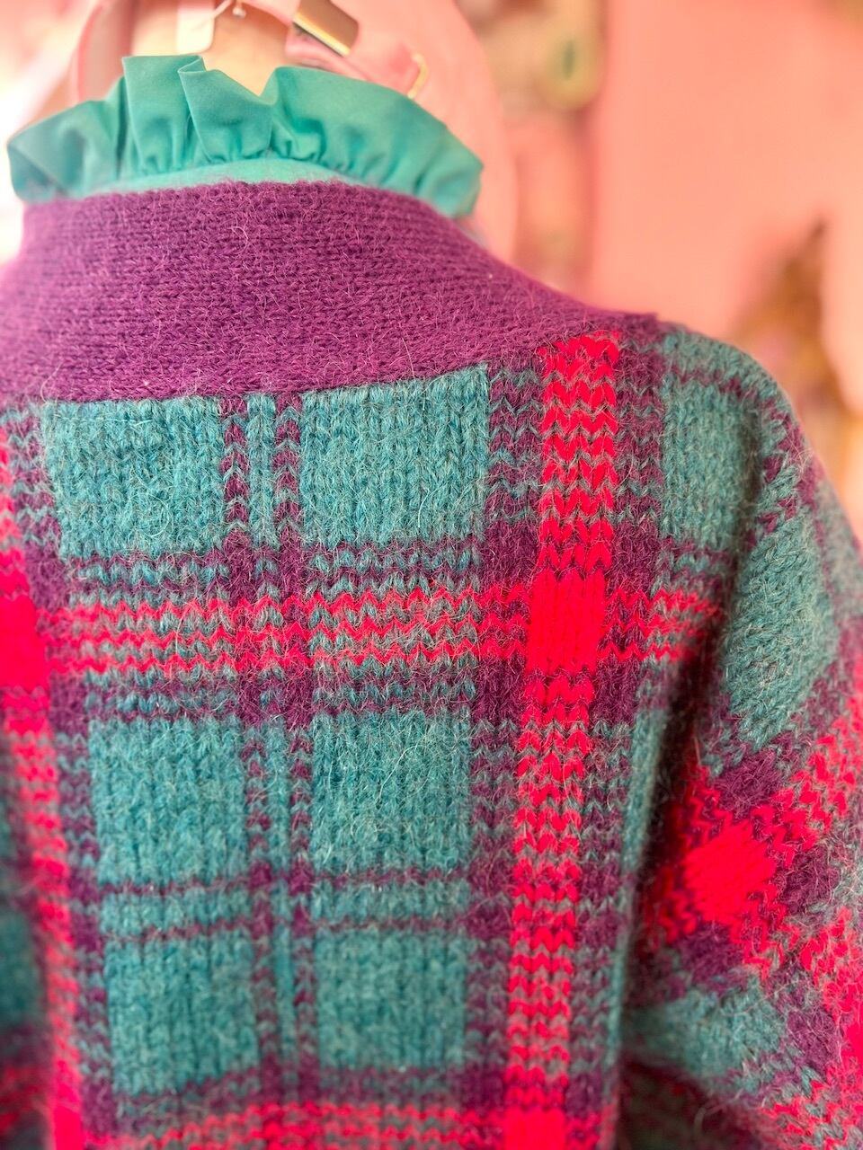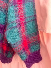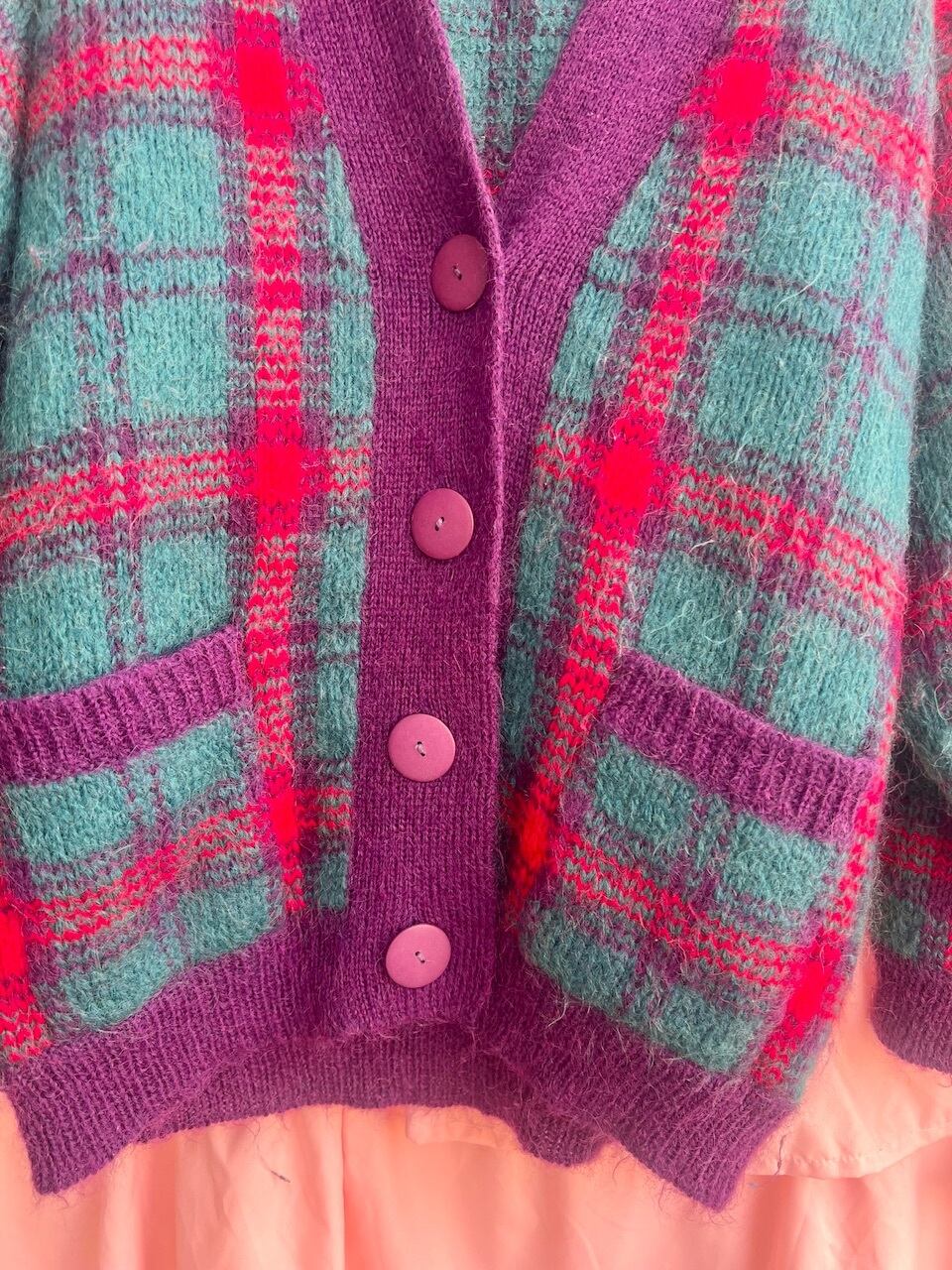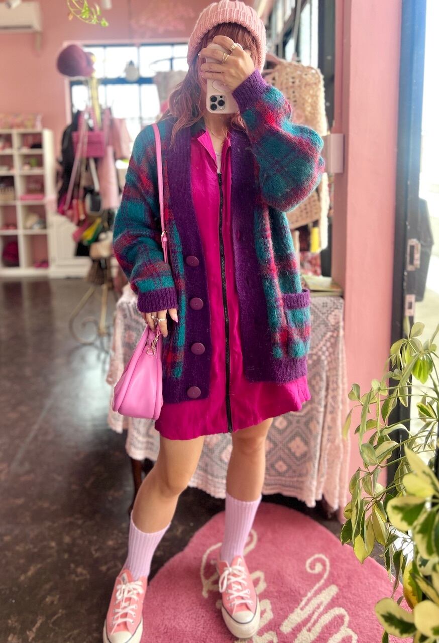 80sらしいチェック柄にモヘアの素材が可愛いニットガウン♡