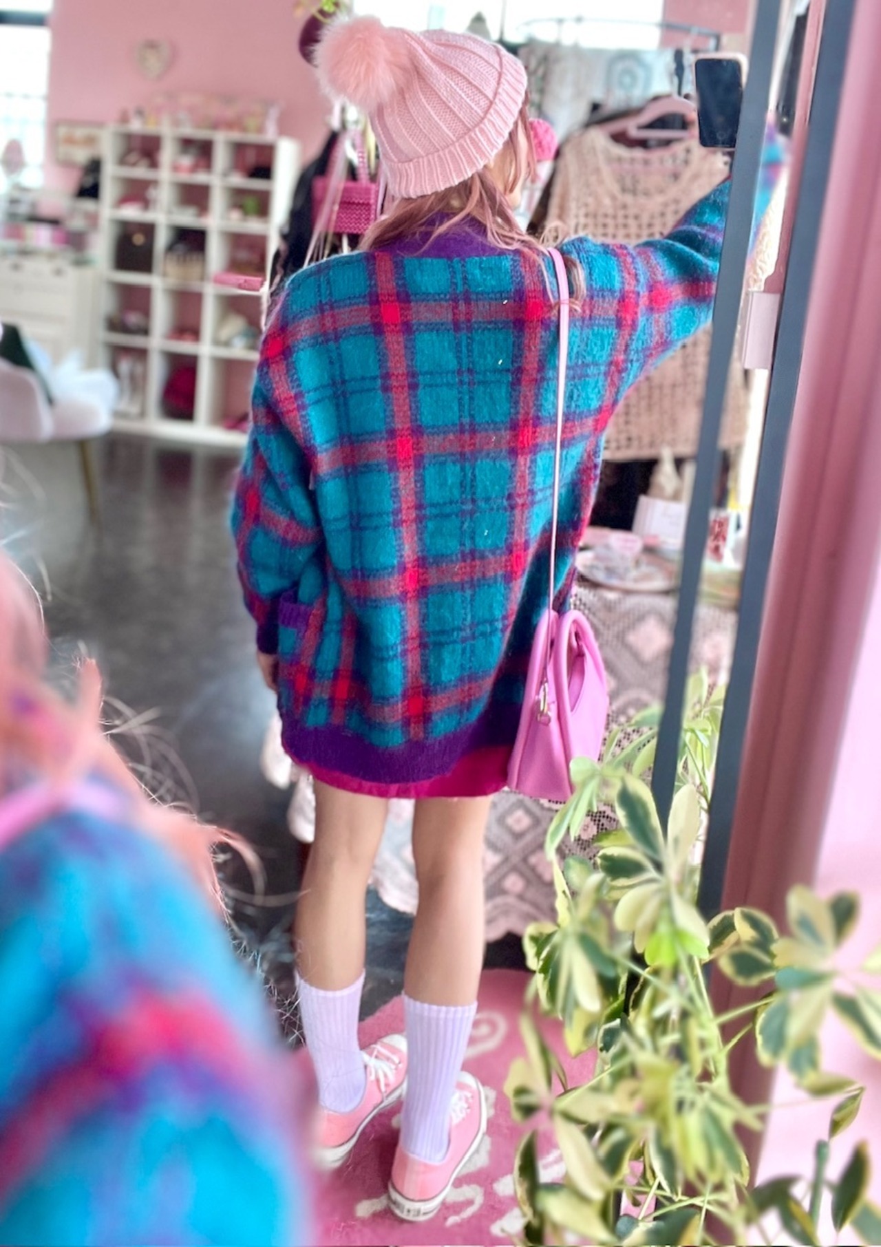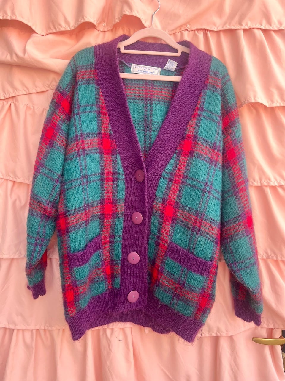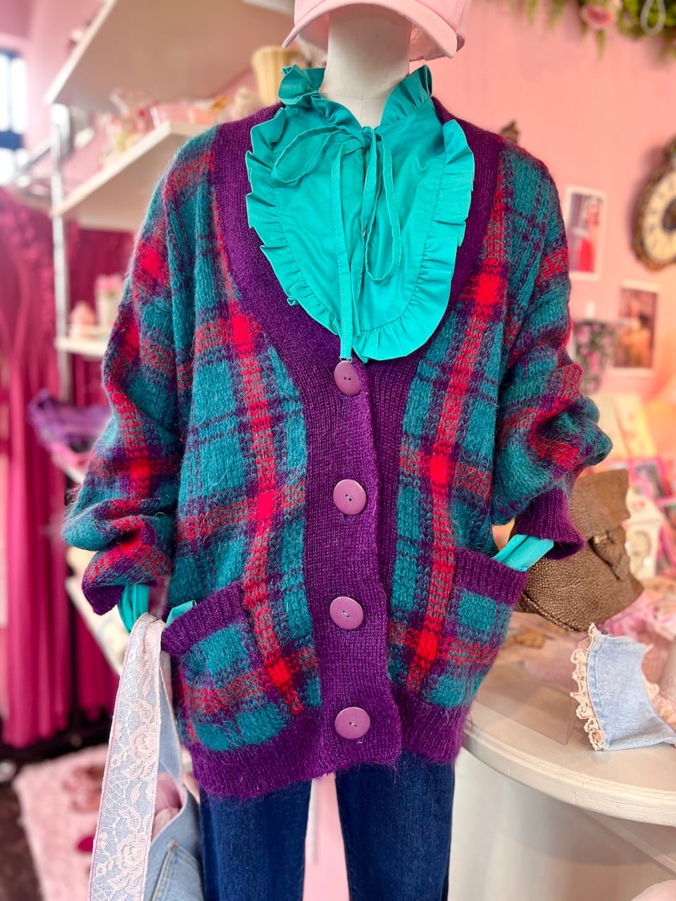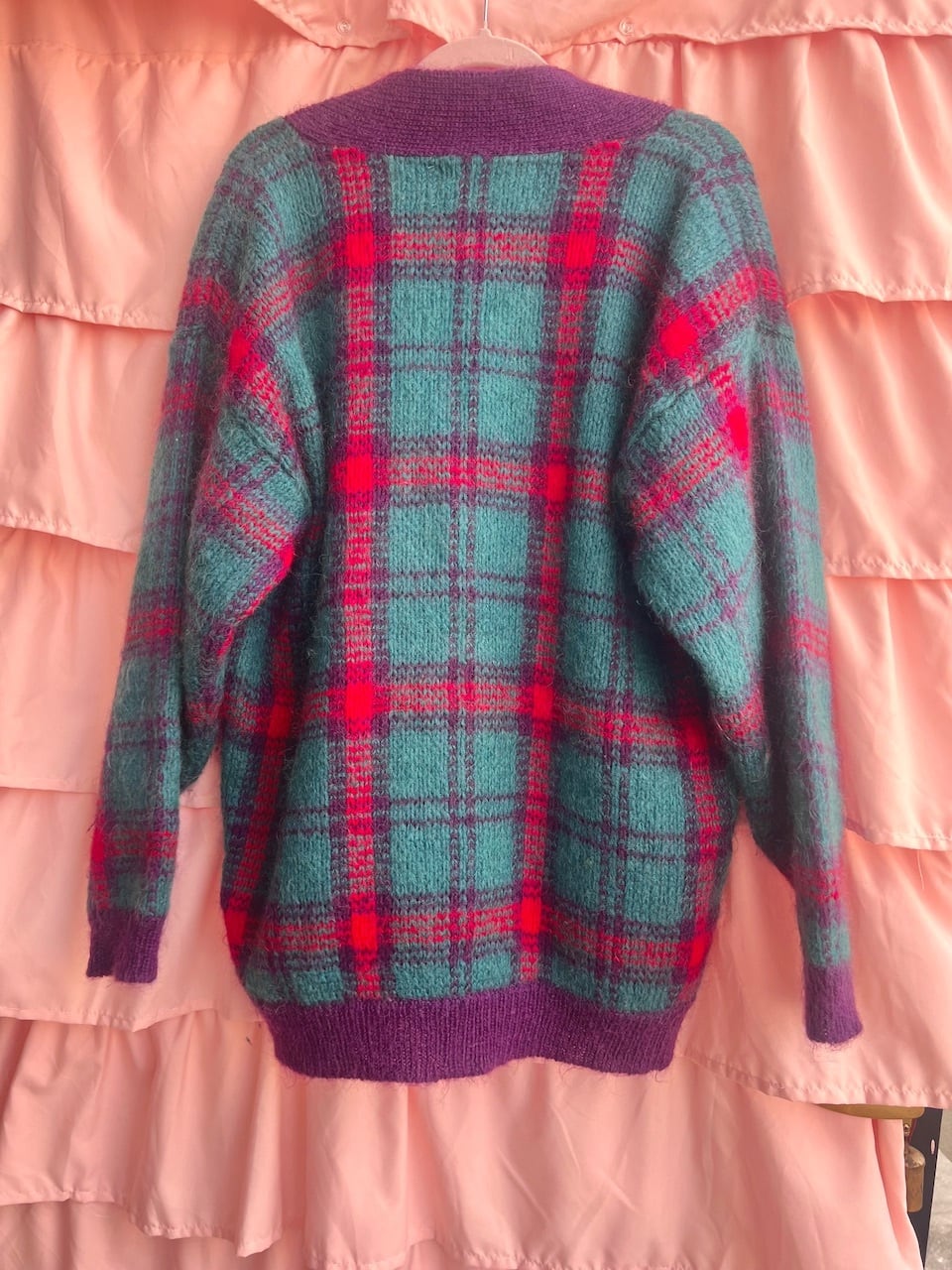 80sらしいチェック柄にモヘアの素材が可愛いニットガウン♡