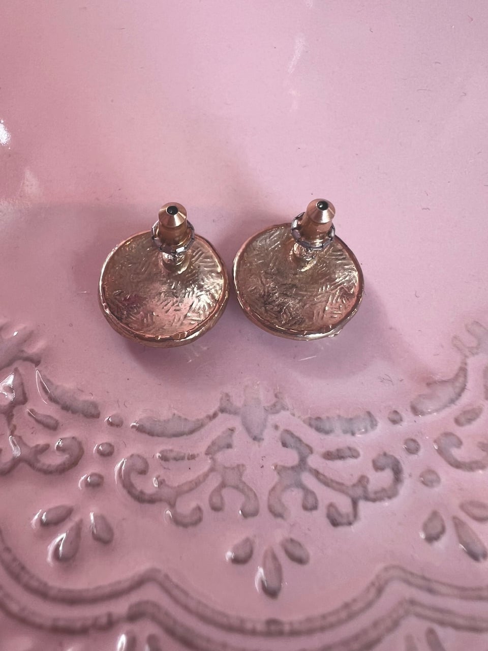 メッキとエナメルがヴィンテージらしいピアス。存在感があって、ボタンのようで可愛いらしいです。
