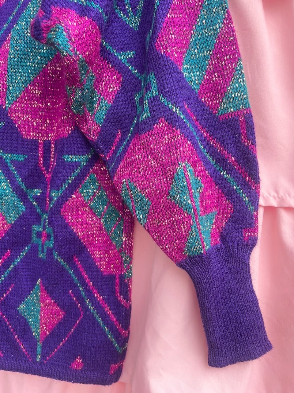 ピンクとグリーンとパープル生地にゴールドのラメが施されています。