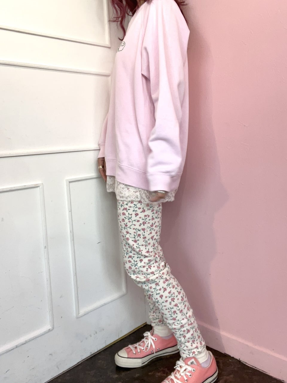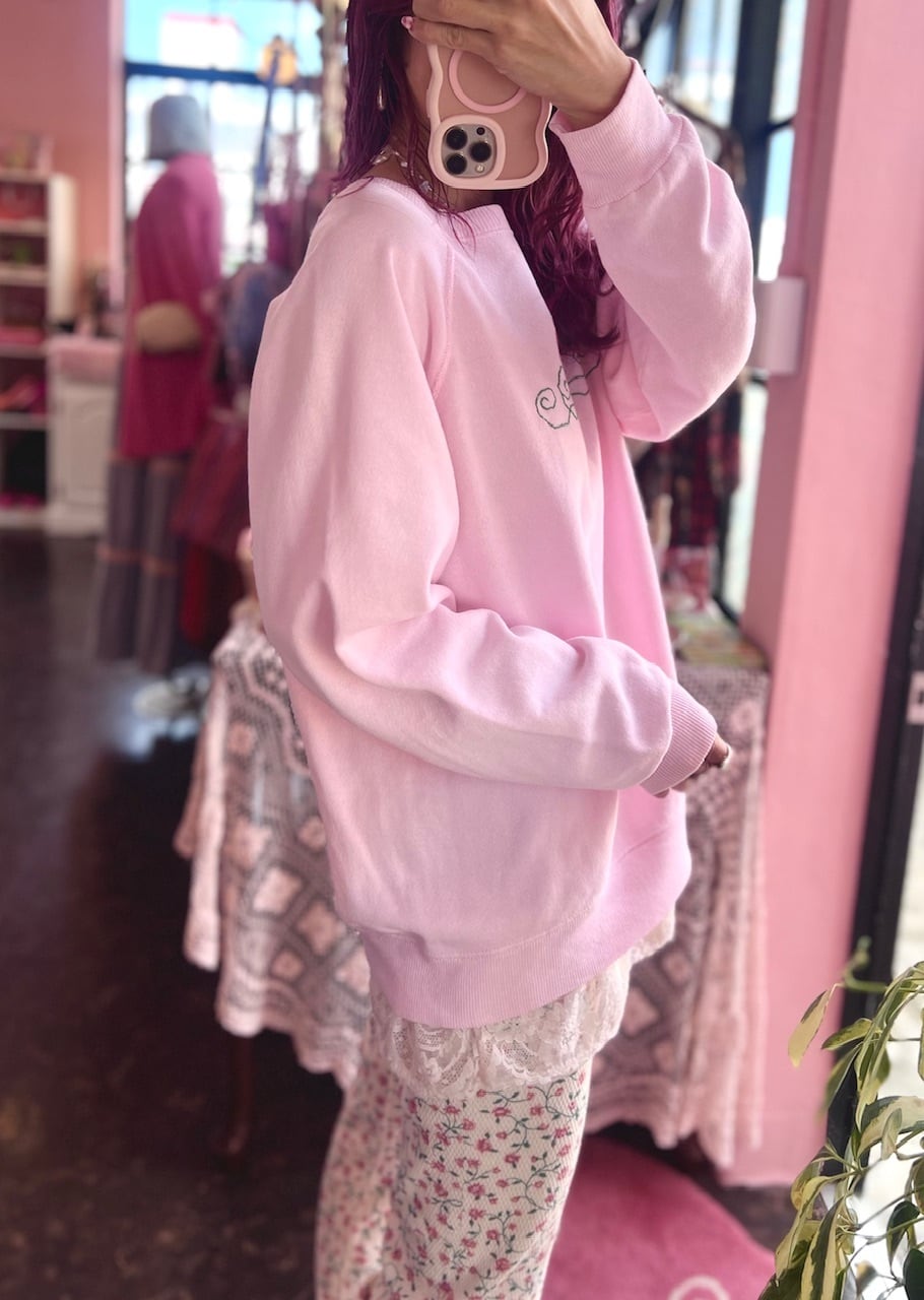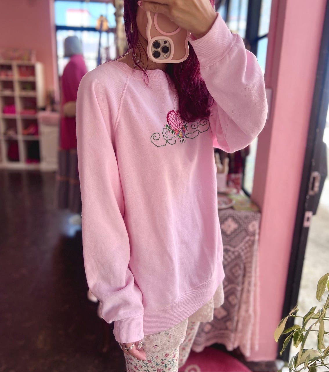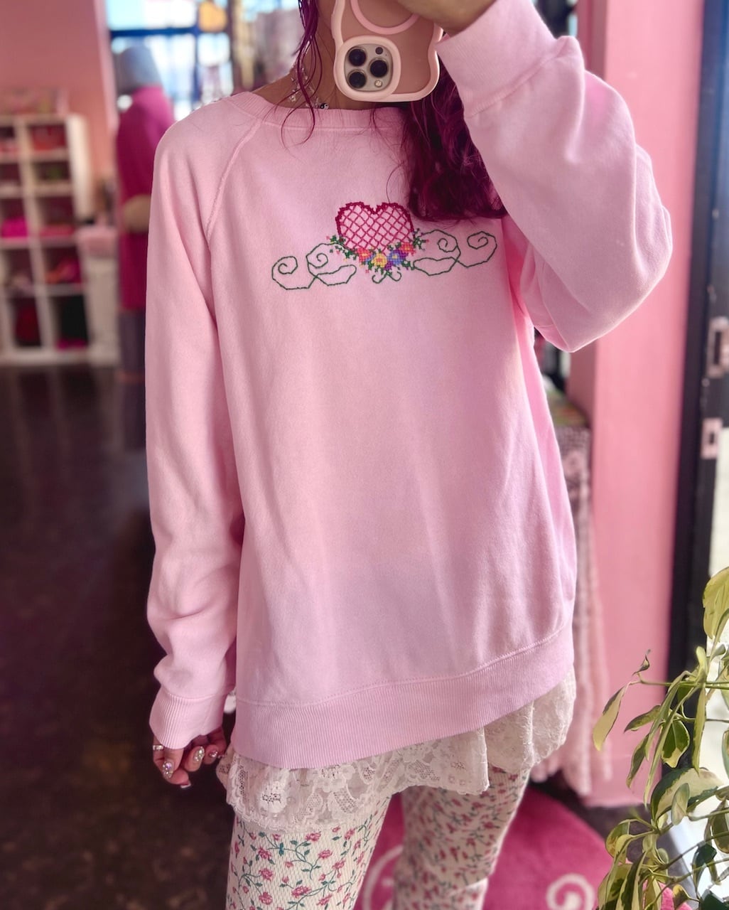 ハンドメイドで作られたハート柄のクロスステッチが可愛いらしいスウェット♡