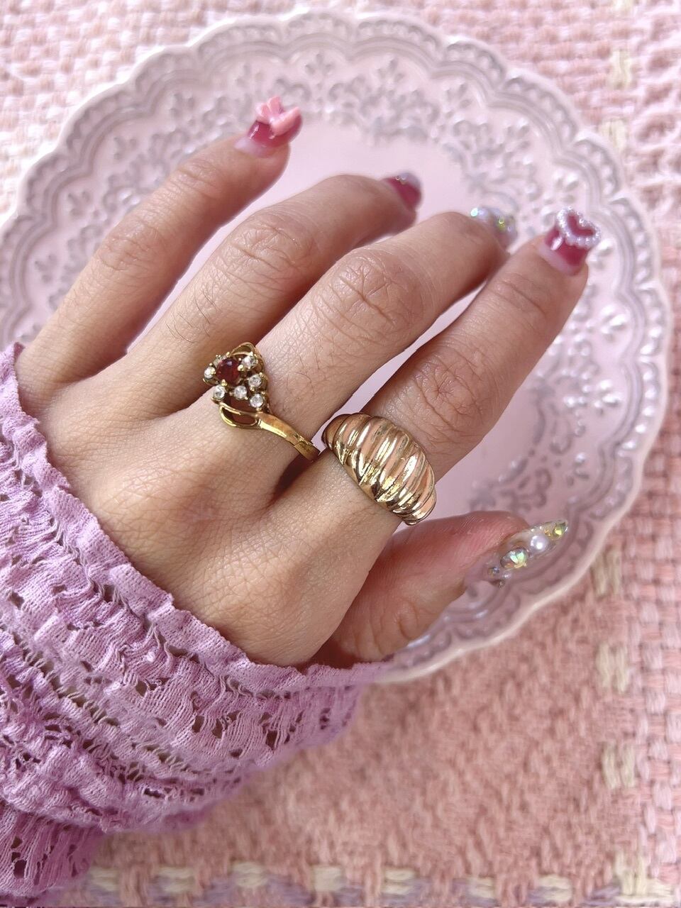 ぷっくりとした形が可愛いヴィンテージゴールドリング♡