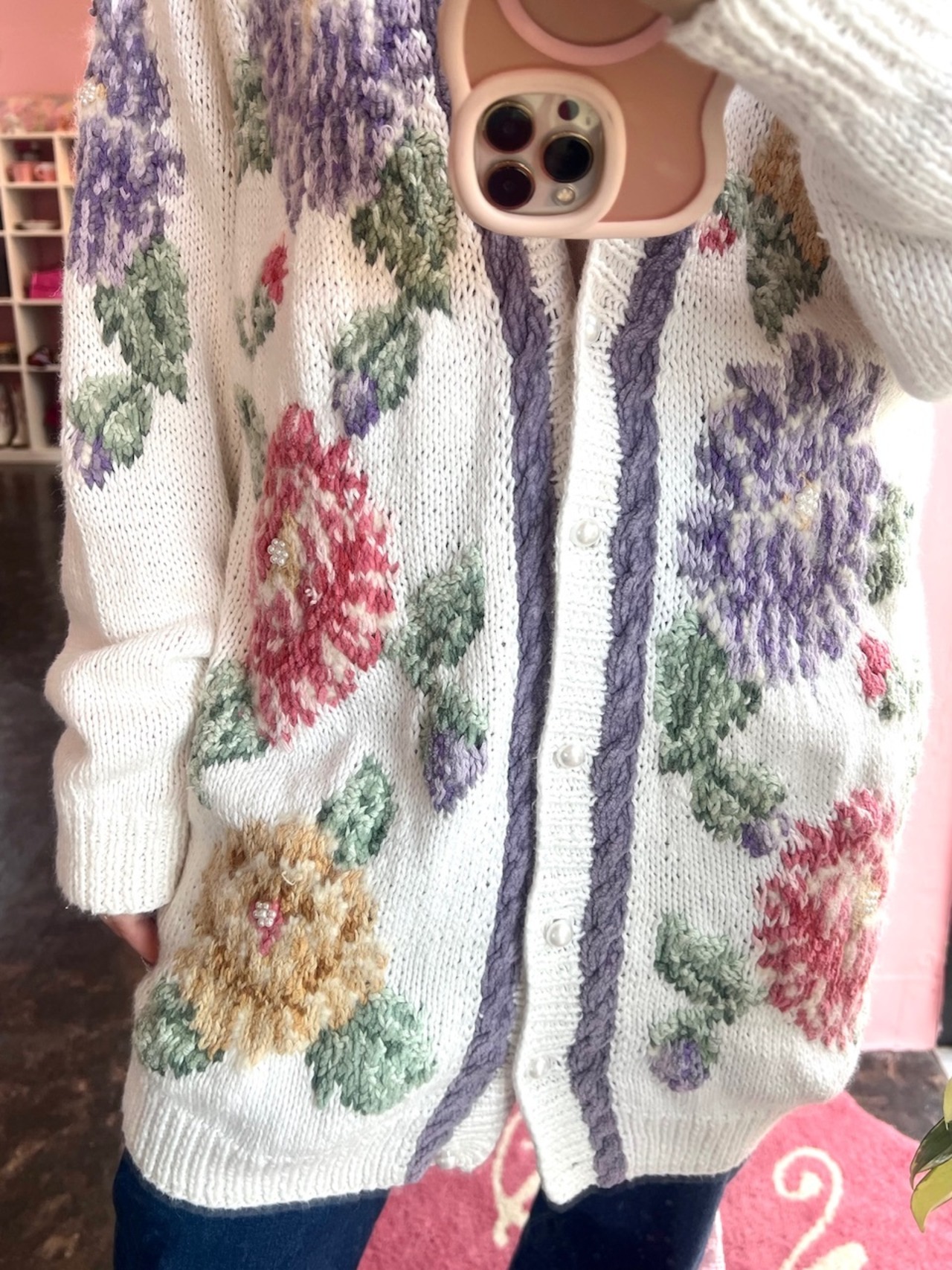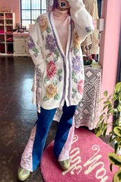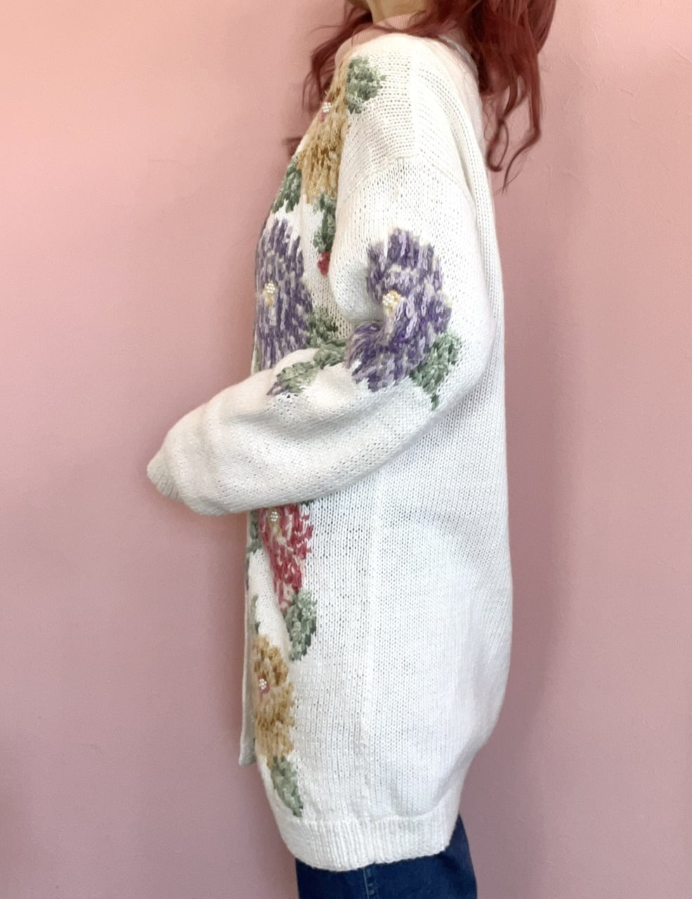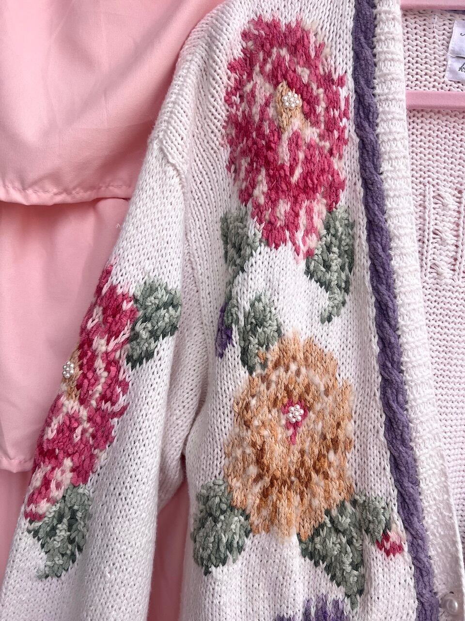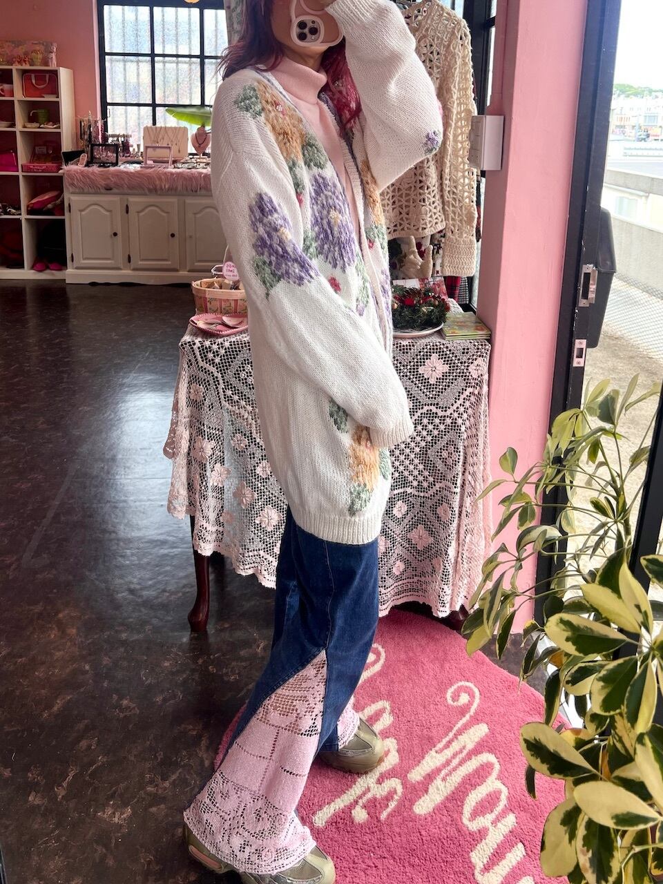 パールのボタンや花柄が腕にも描かれていて可愛いらしい一着です♡
