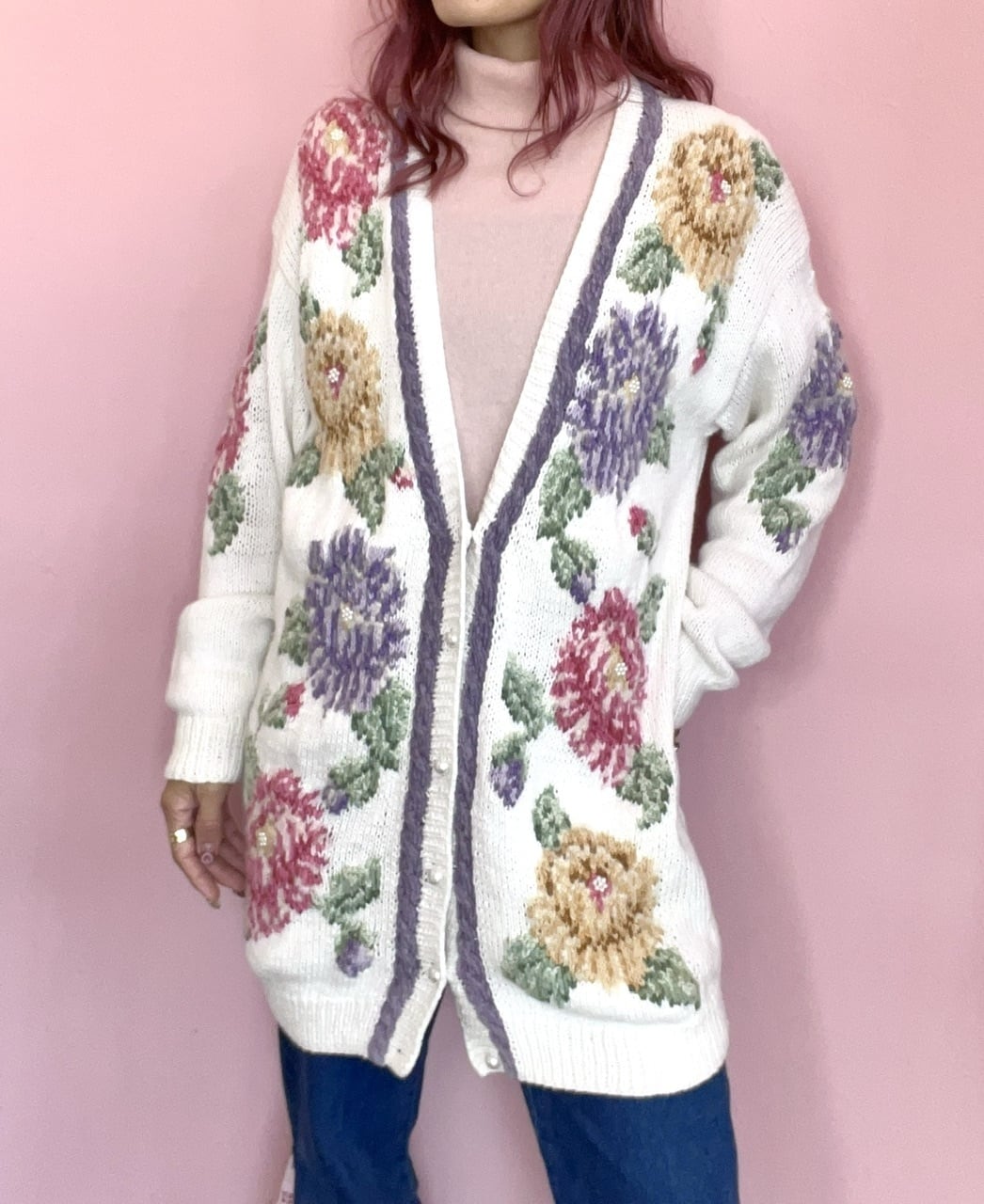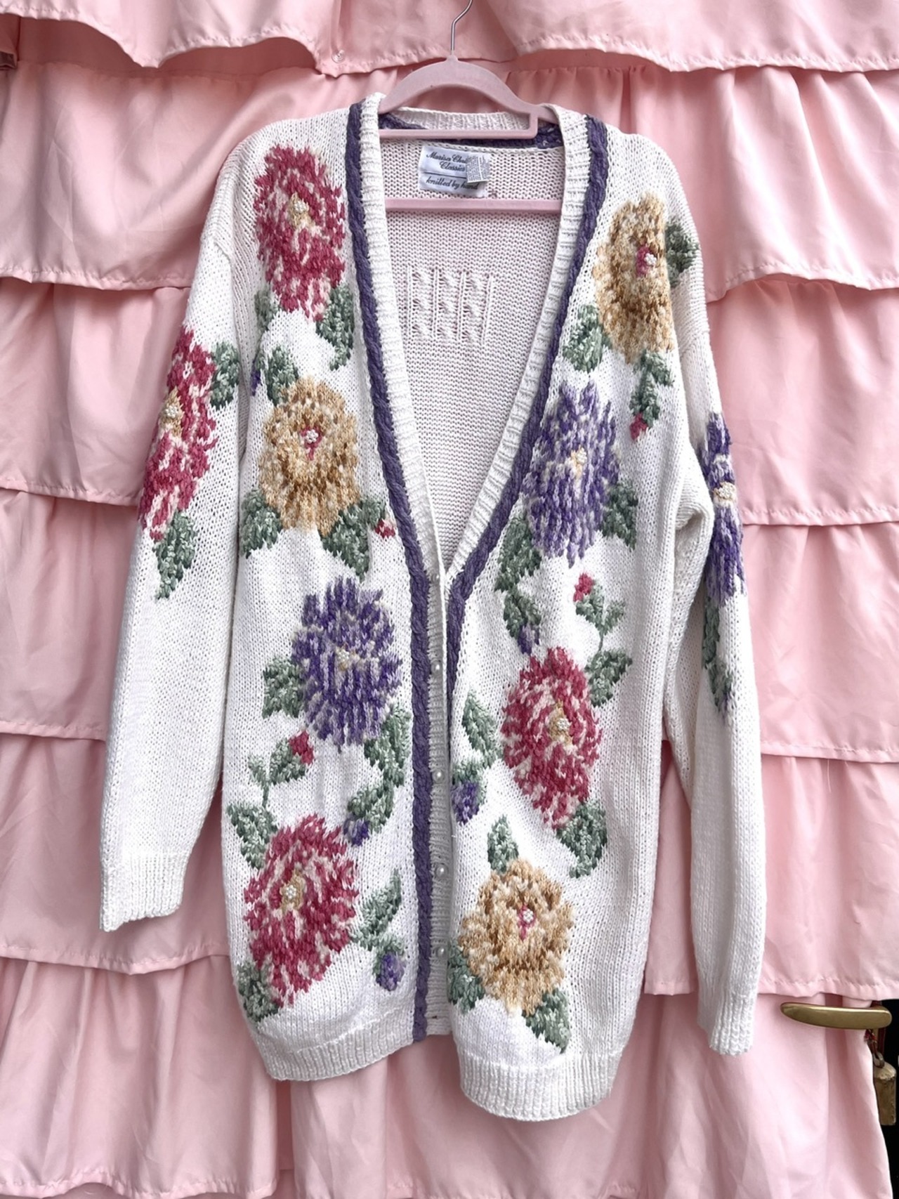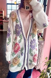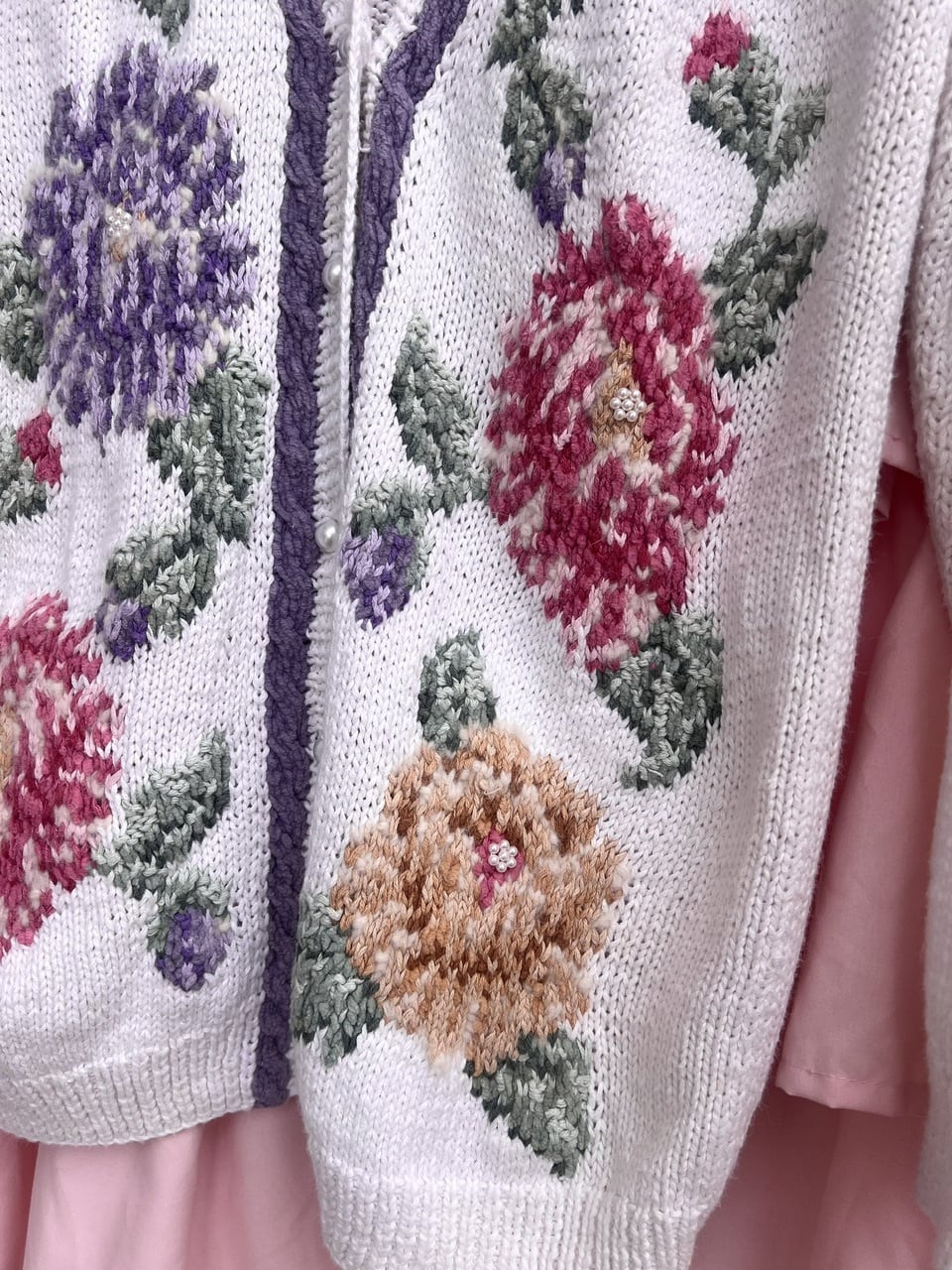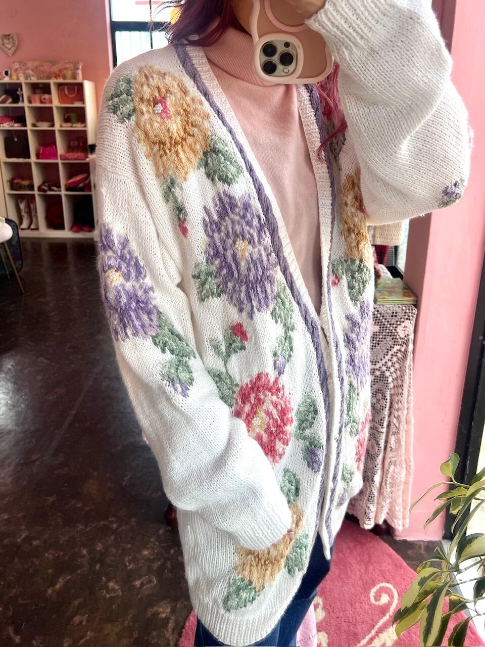 パールのボタンや花柄が腕にも描かれていて可愛いらしい一着です♡