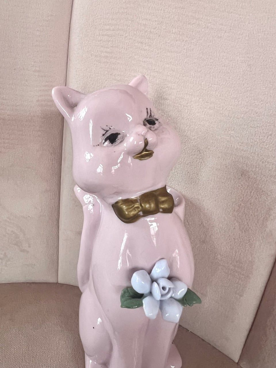 …Vtg 50s pink ceramic cat vase…