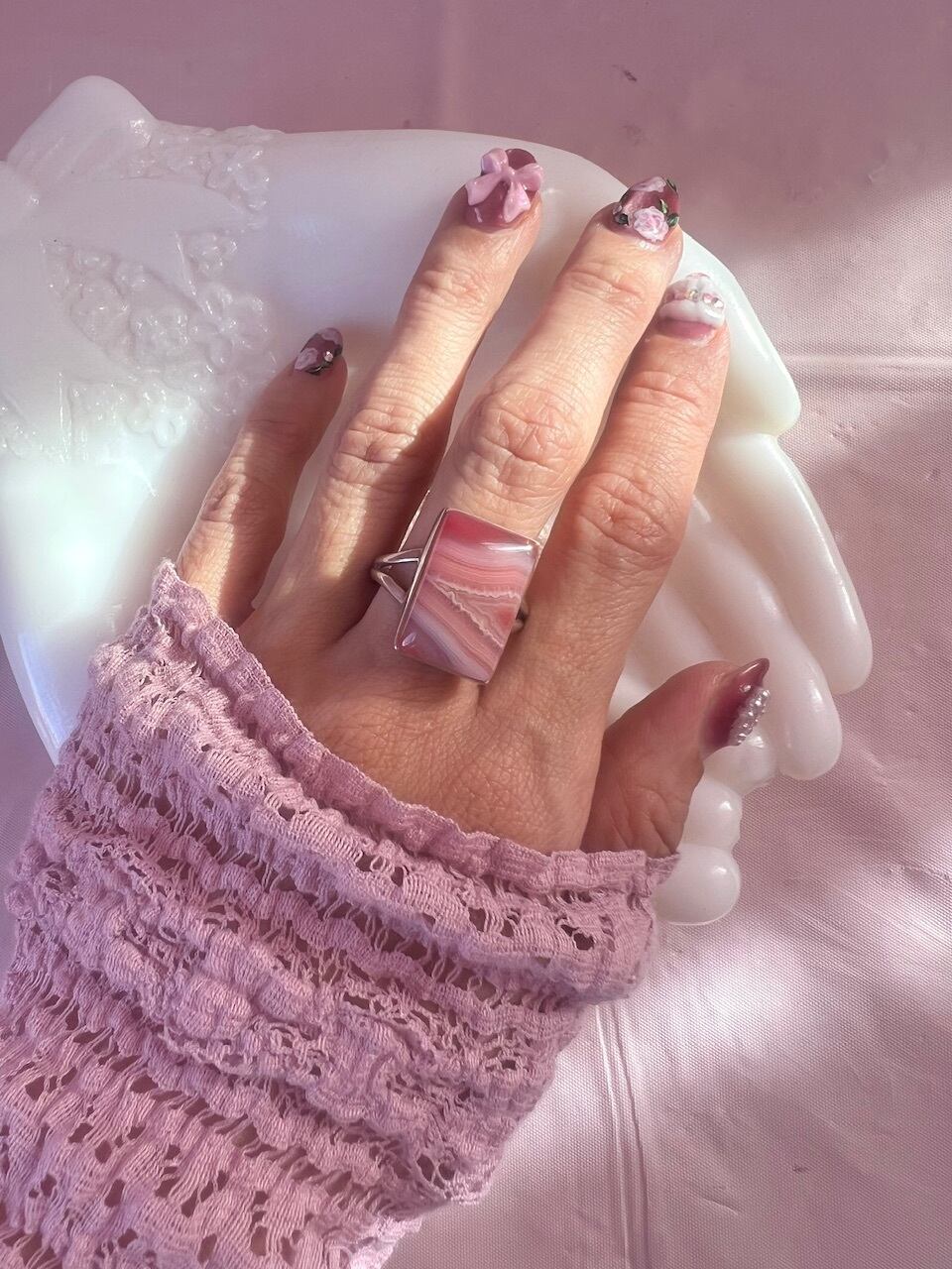 …Pink Agate 925silver Ring…