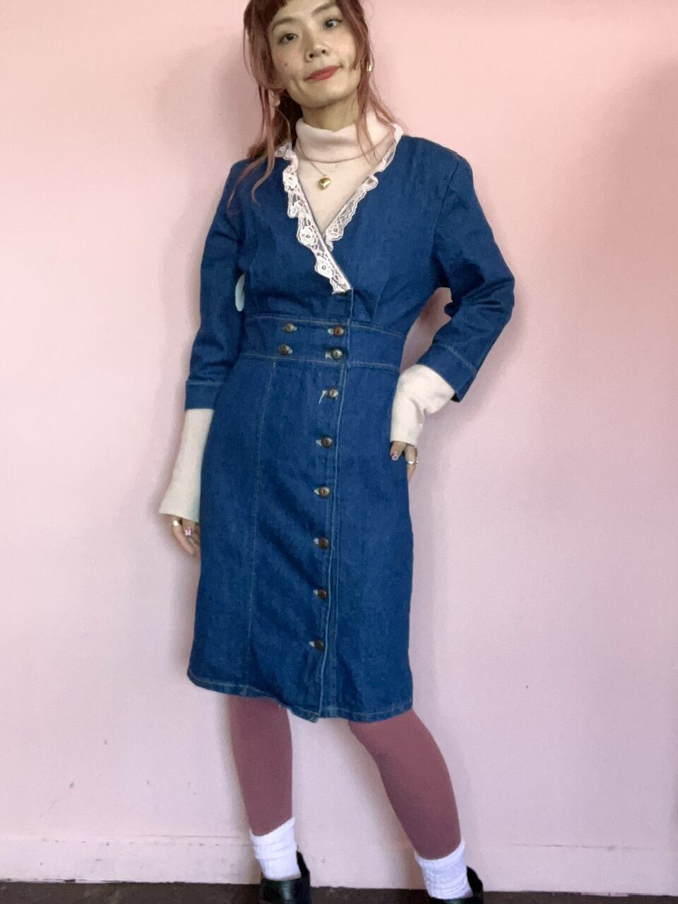 …Denim ×lace dress…