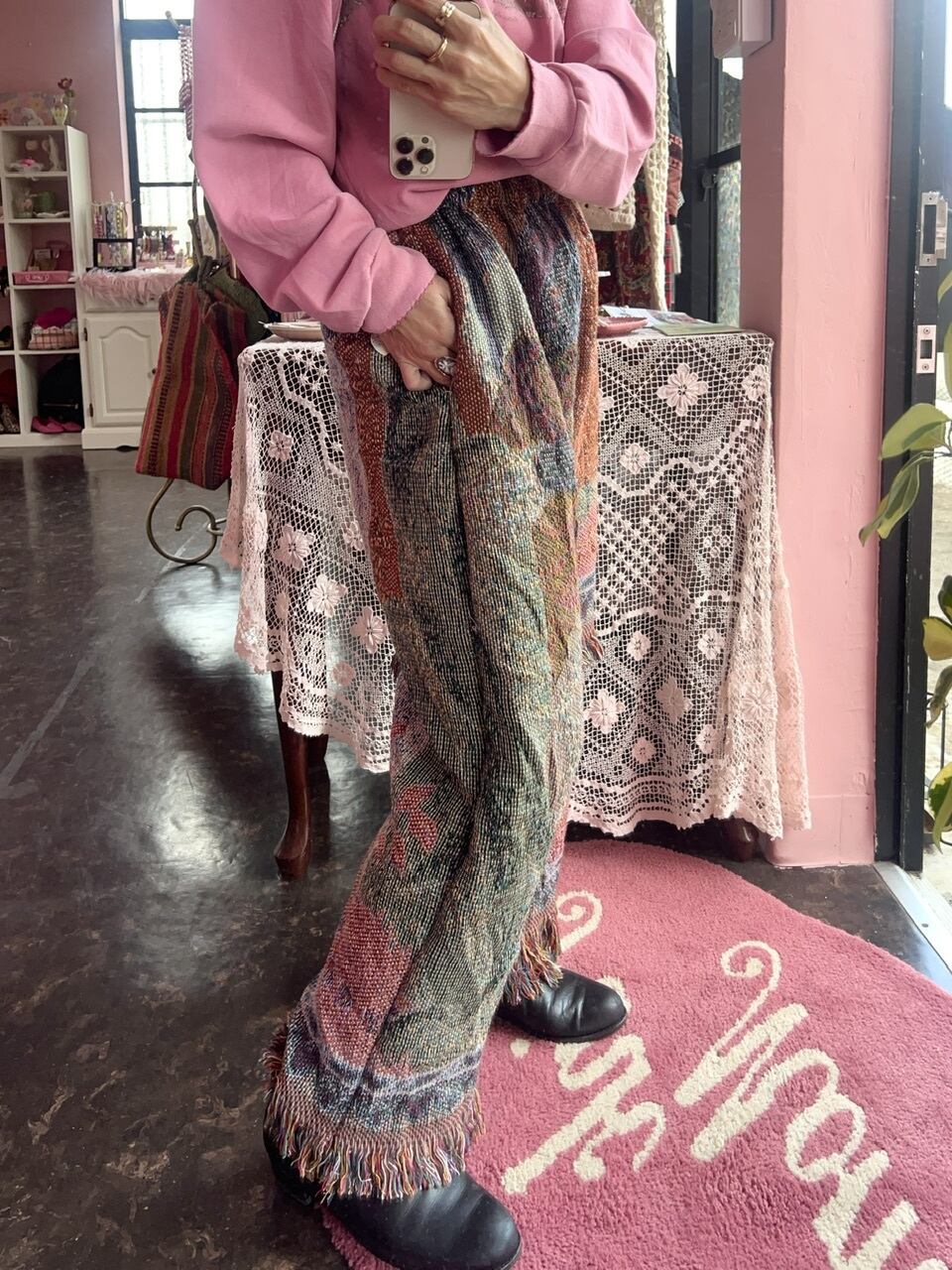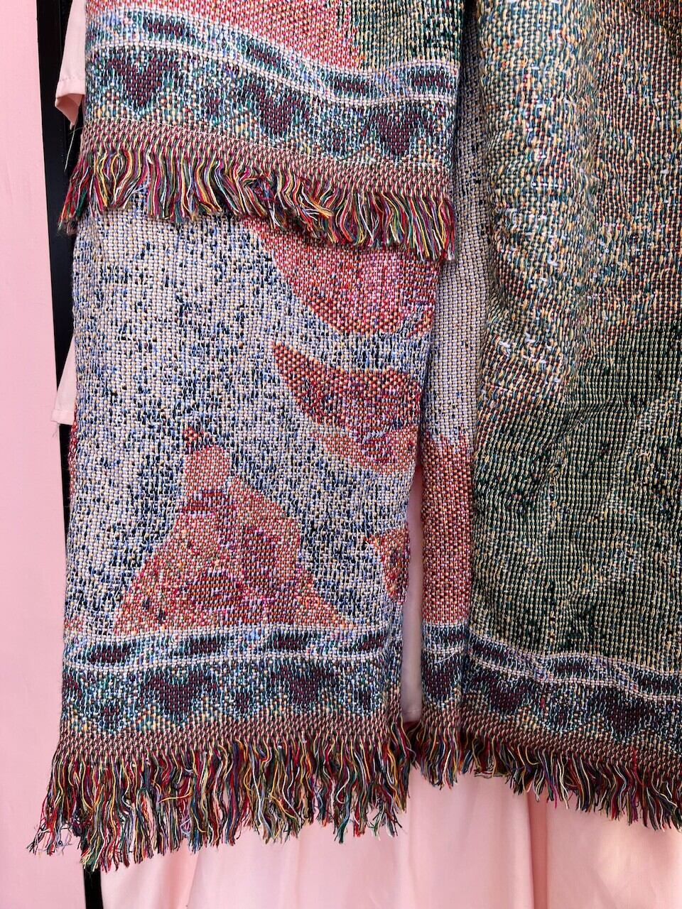 昔のアメリカの膝掛けラグから仕立てて頂きました。