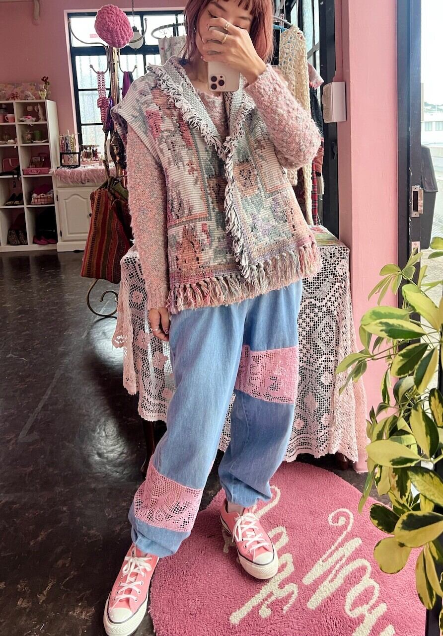 ヴィンテージラグから仕立てて頂いた特別な花柄ベスト♡