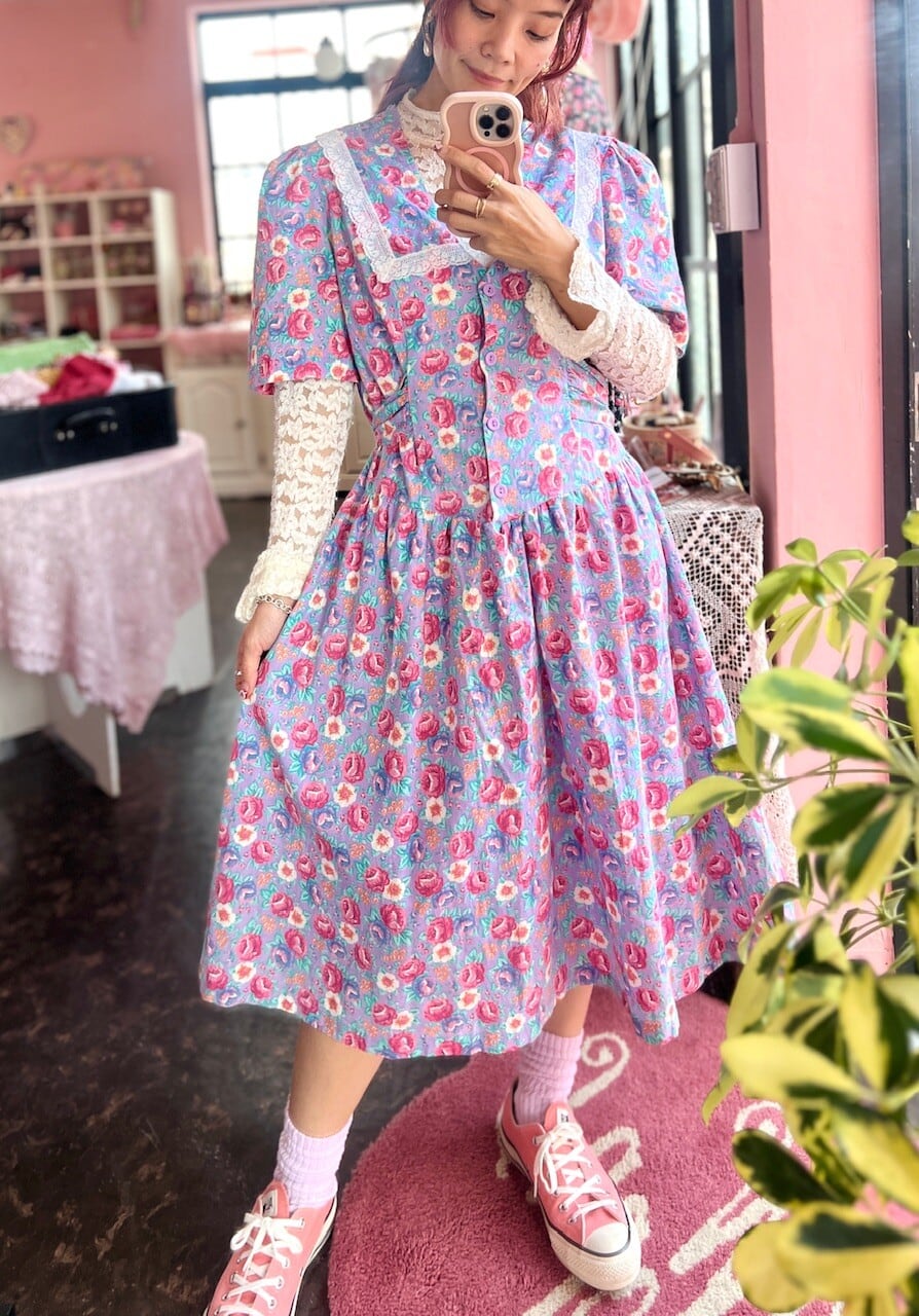 セーラー襟のようなデザインが可愛い花柄ワンピース♡