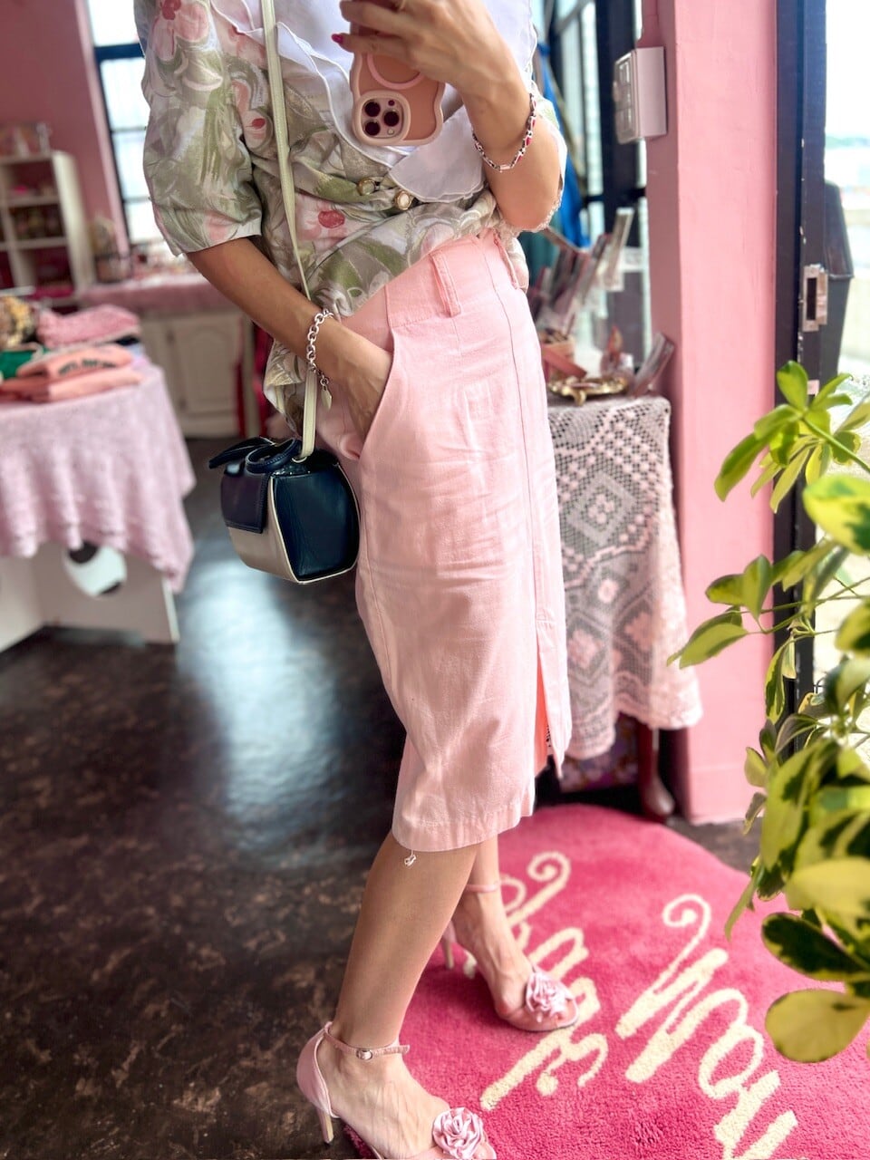 …pink Tight skirt…