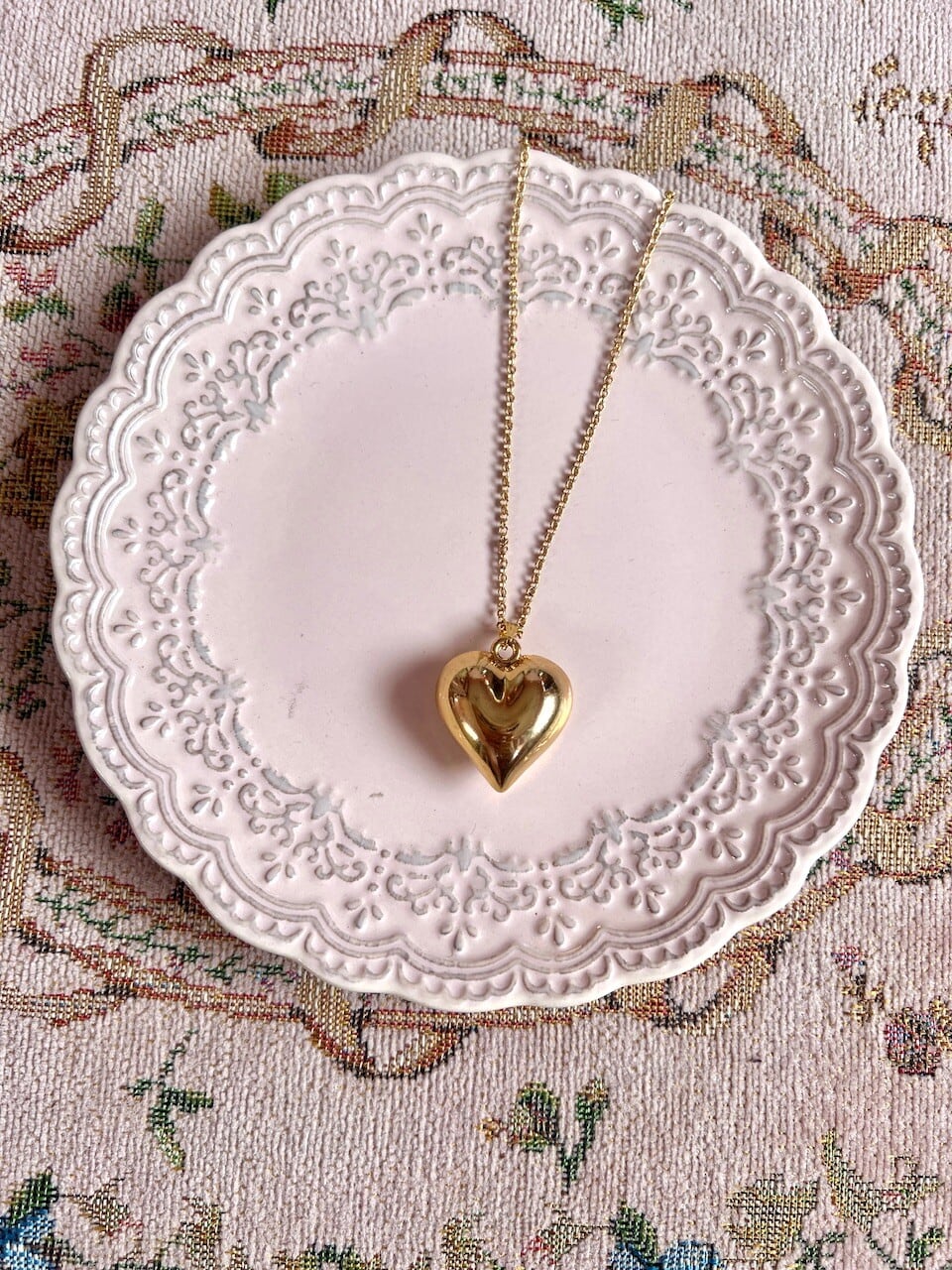 ぷっくりとしたハートが可愛いネックレス。