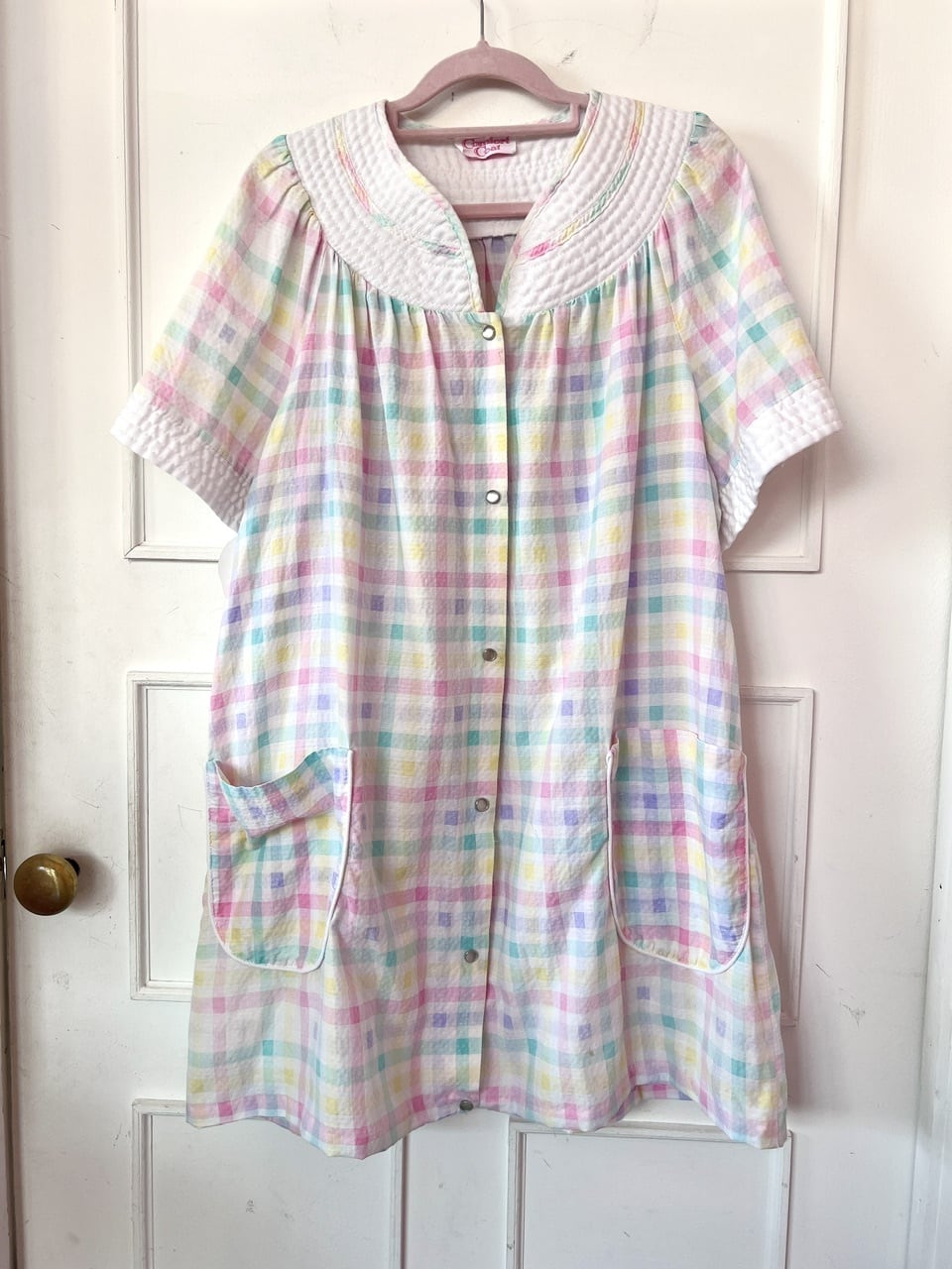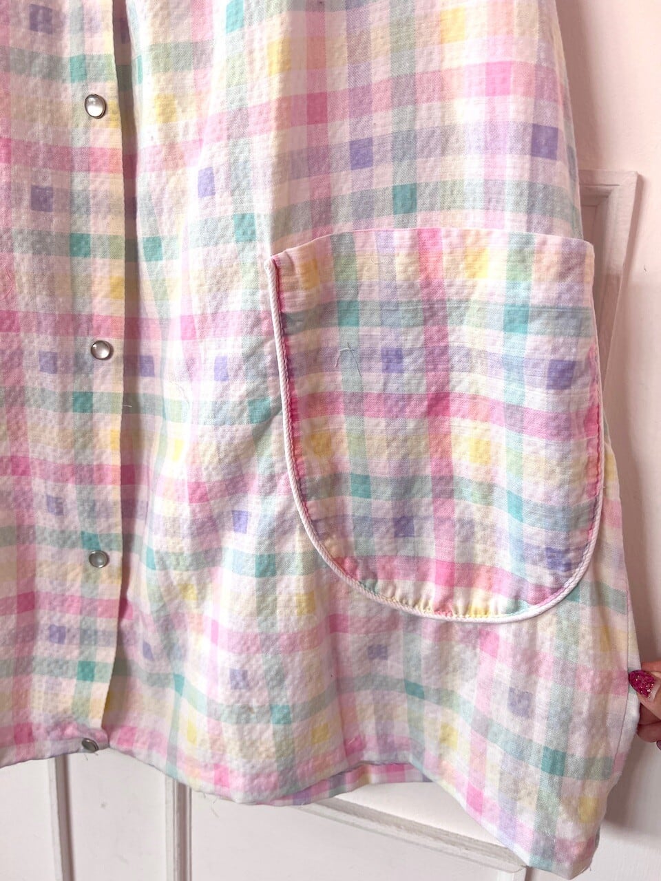 チェックガウン前と後ろの襟元に写真のようなシミがあります。(写真参照)